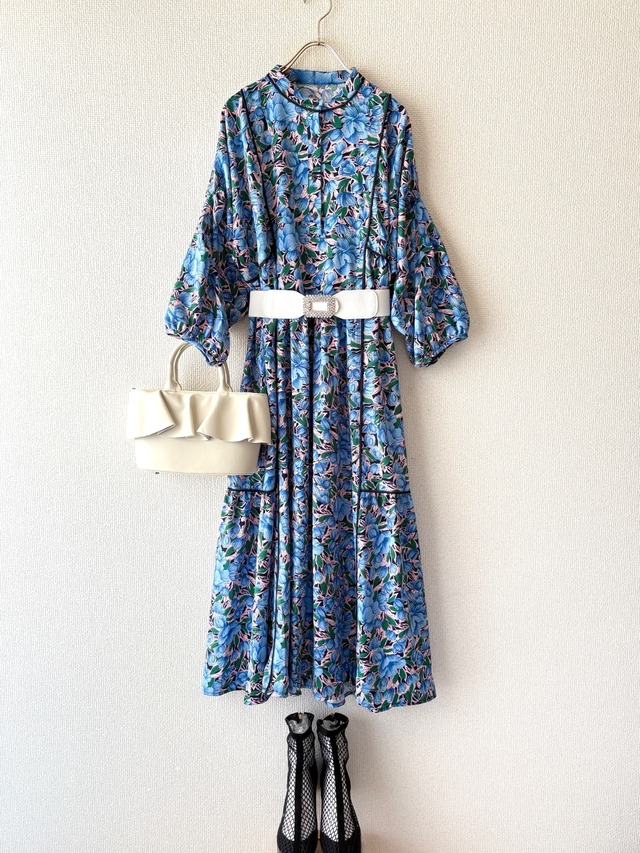 コーディネートセット(2点) <ワンピース> 大胆なクラシカルフラワー柄が印象的なワンピースです。 五分袖にゆったりとした着心地で、 広がりすぎない綺麗なシルエットです。 春一番に着たくなる、大人可愛いワンピースです。 バスト 120cm 袖丈 50cm 裄丈 55cm 総丈 117.5cm 本体 ポリエステル 100% 別布 ポリエステル 100% <ベルト> 華やかなビジューがアクセントのベルト。 シンプルなデザインと高級感あるデザインが特徴で、どんなコーディネートにもマッチします。 穴に差し込むだけのシンプルなバックル仕様で、簡単にウエストマークができます。 長さ 74cm×横幅 5cm *シューズとバックは単品販売しております。 *単品販売はホーム左上のカテゴリーから見れます