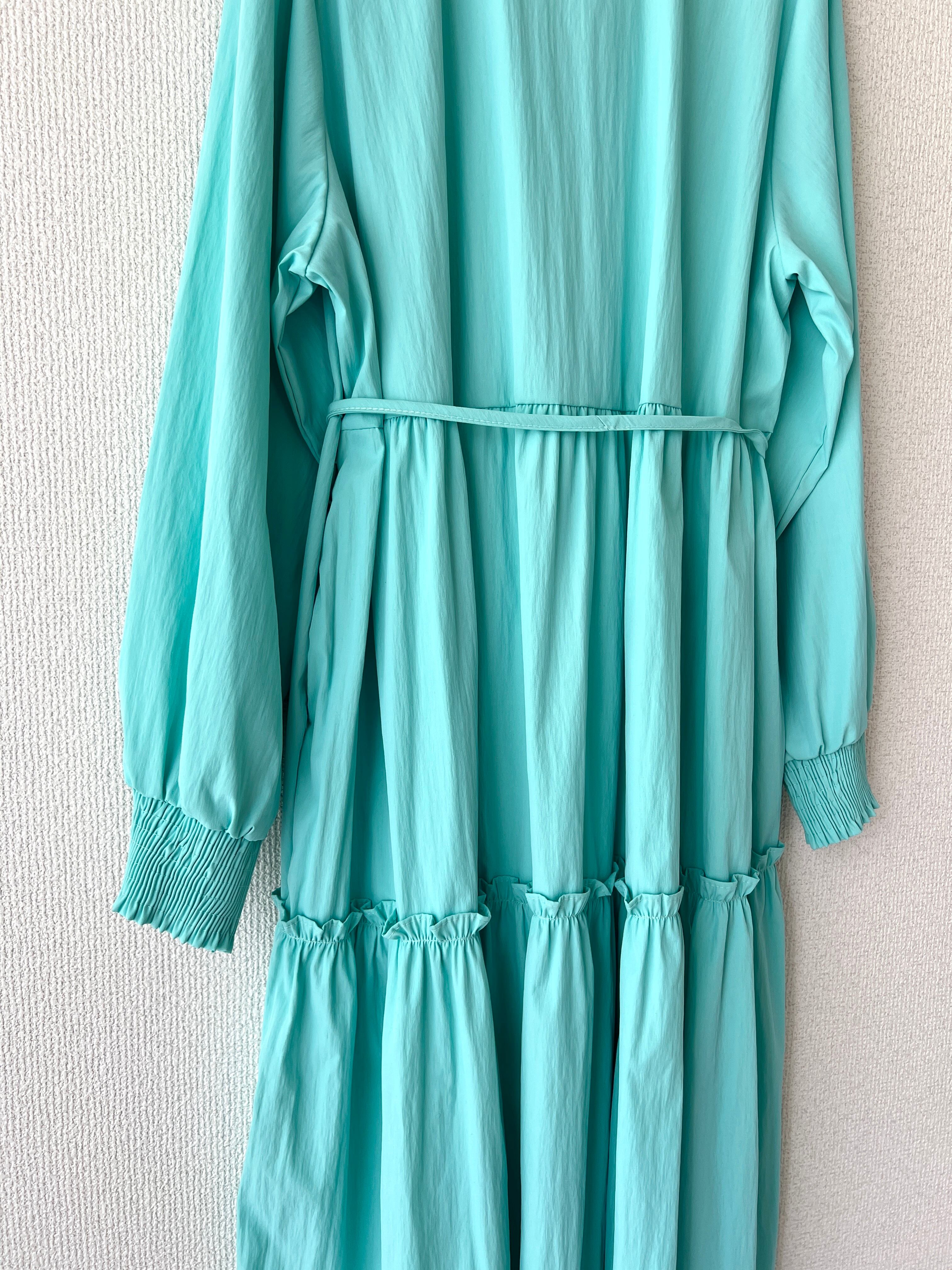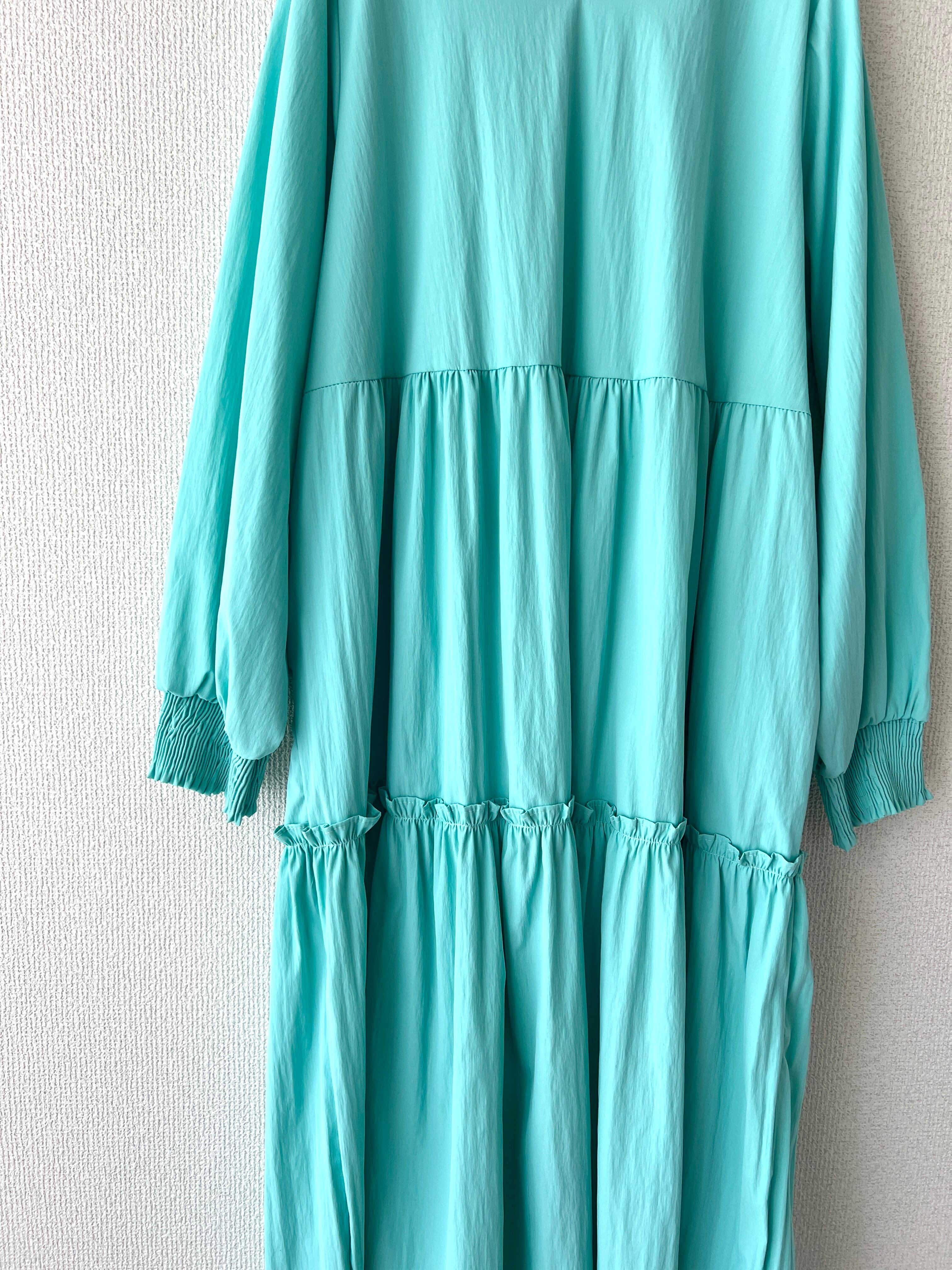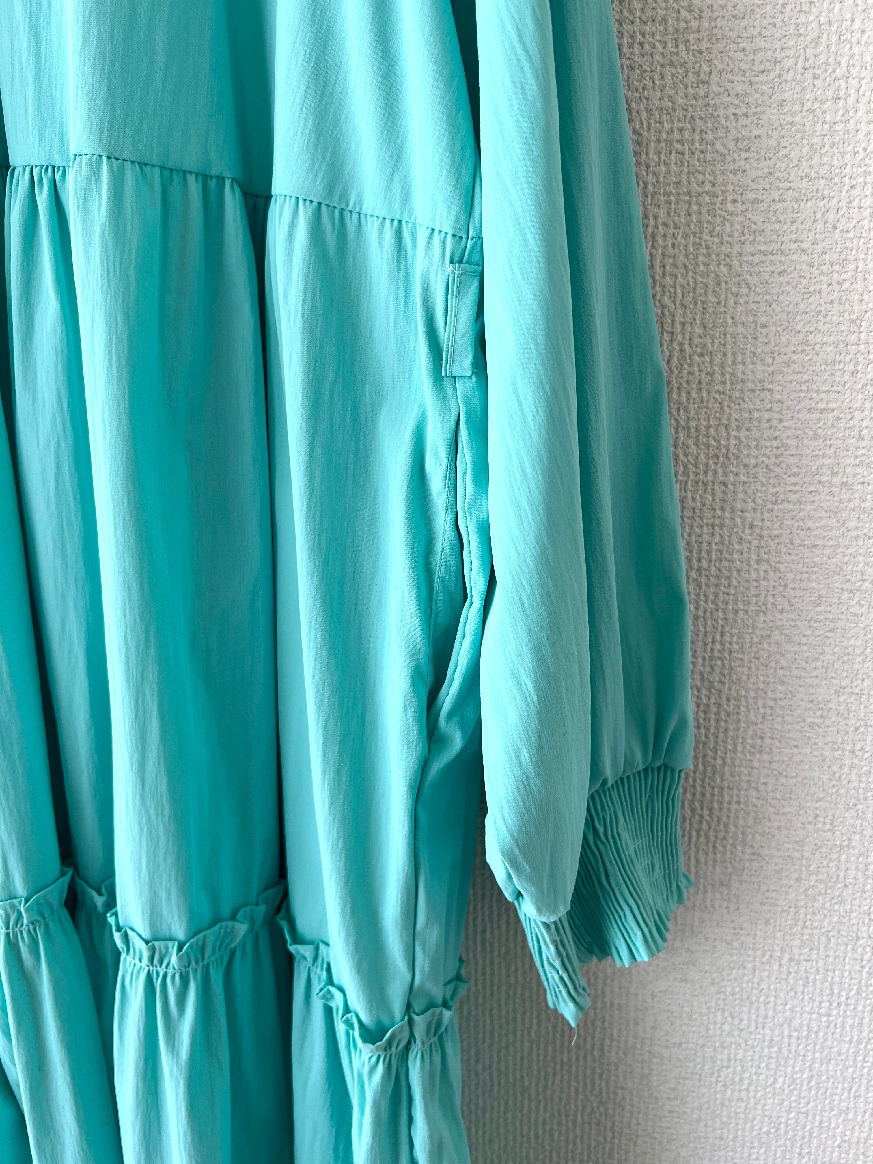 鮮やかなターコイズブルーのティアードワンピースです。爽やかな印象で明るく華やかになります。