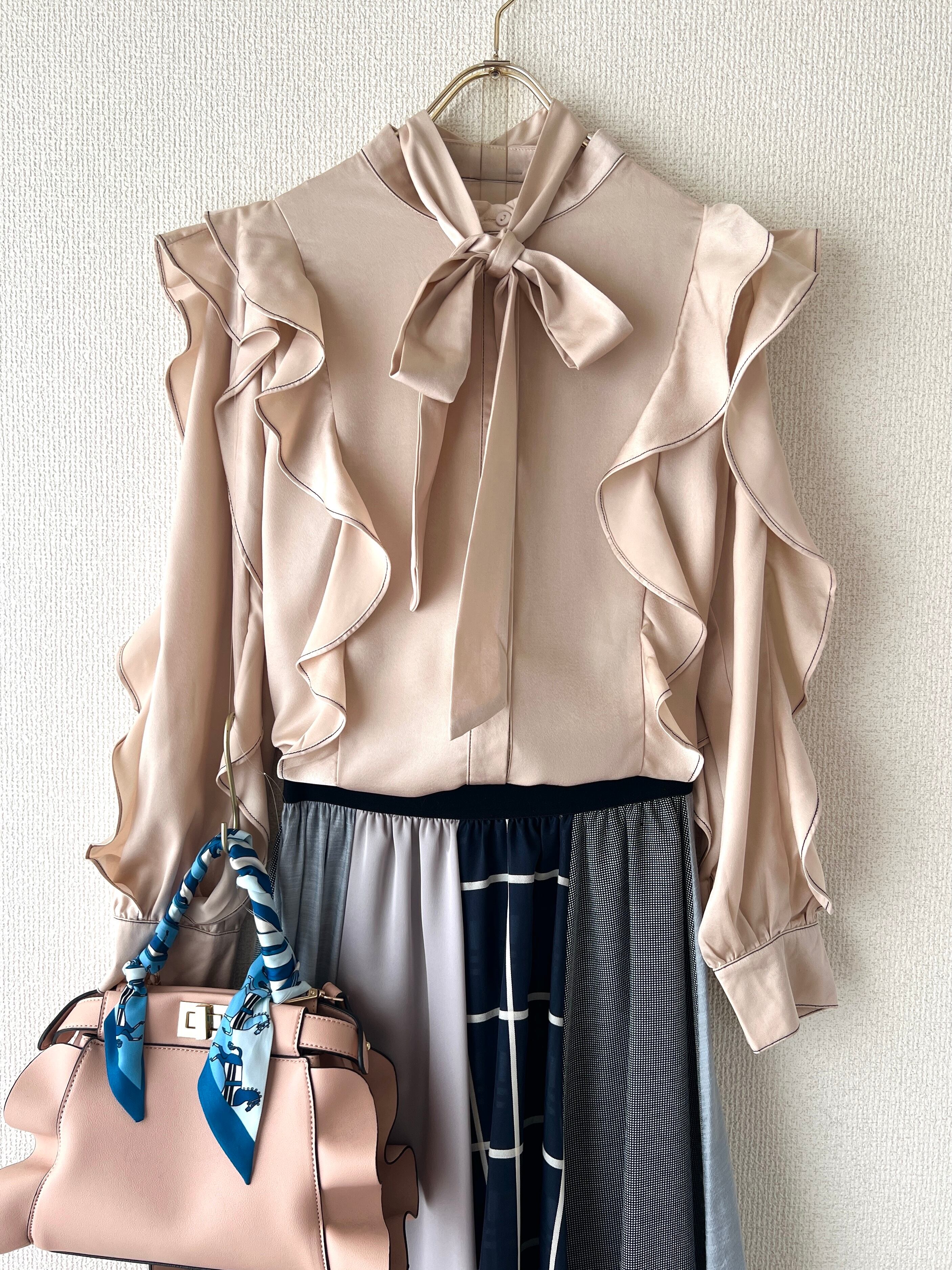 さらっとした素材感で春夏にぴったりなブラウスです。