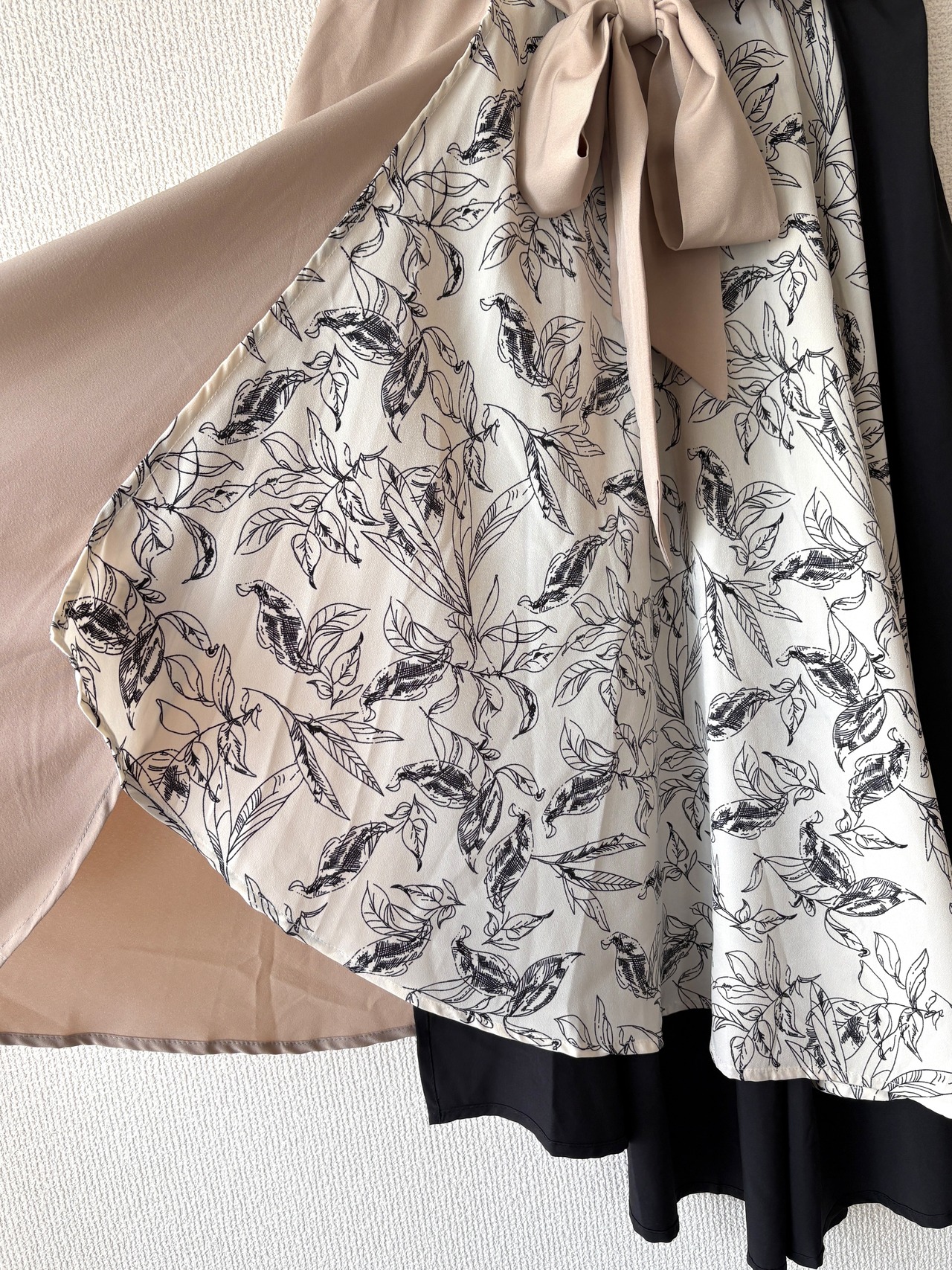 裾の丈感がばらつきのあるアシンメトリーなスカートです。ウエストのリボンは取り外しが可能です。
