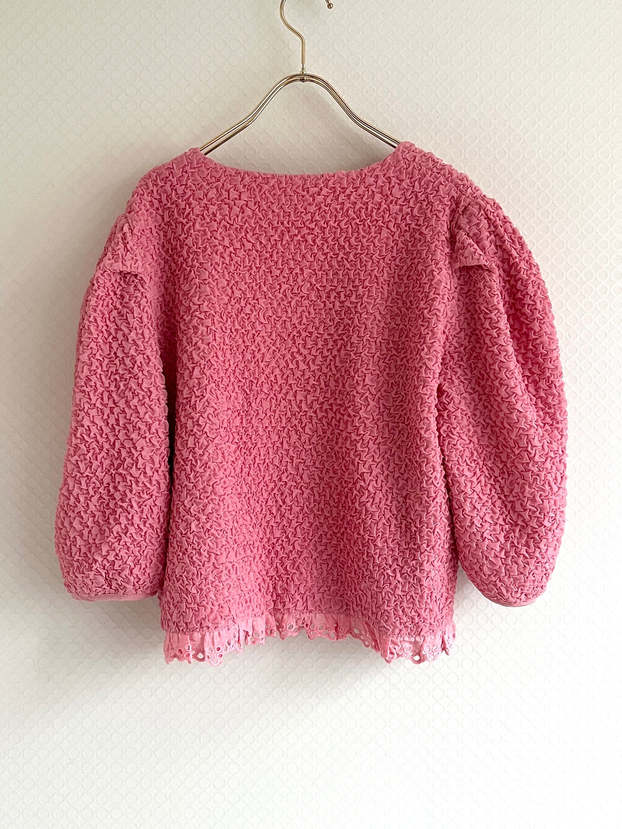 ショート丈なのでワンピースと合わせるとバランスが良く、羽織りで持っていると便利なカーディガンです。