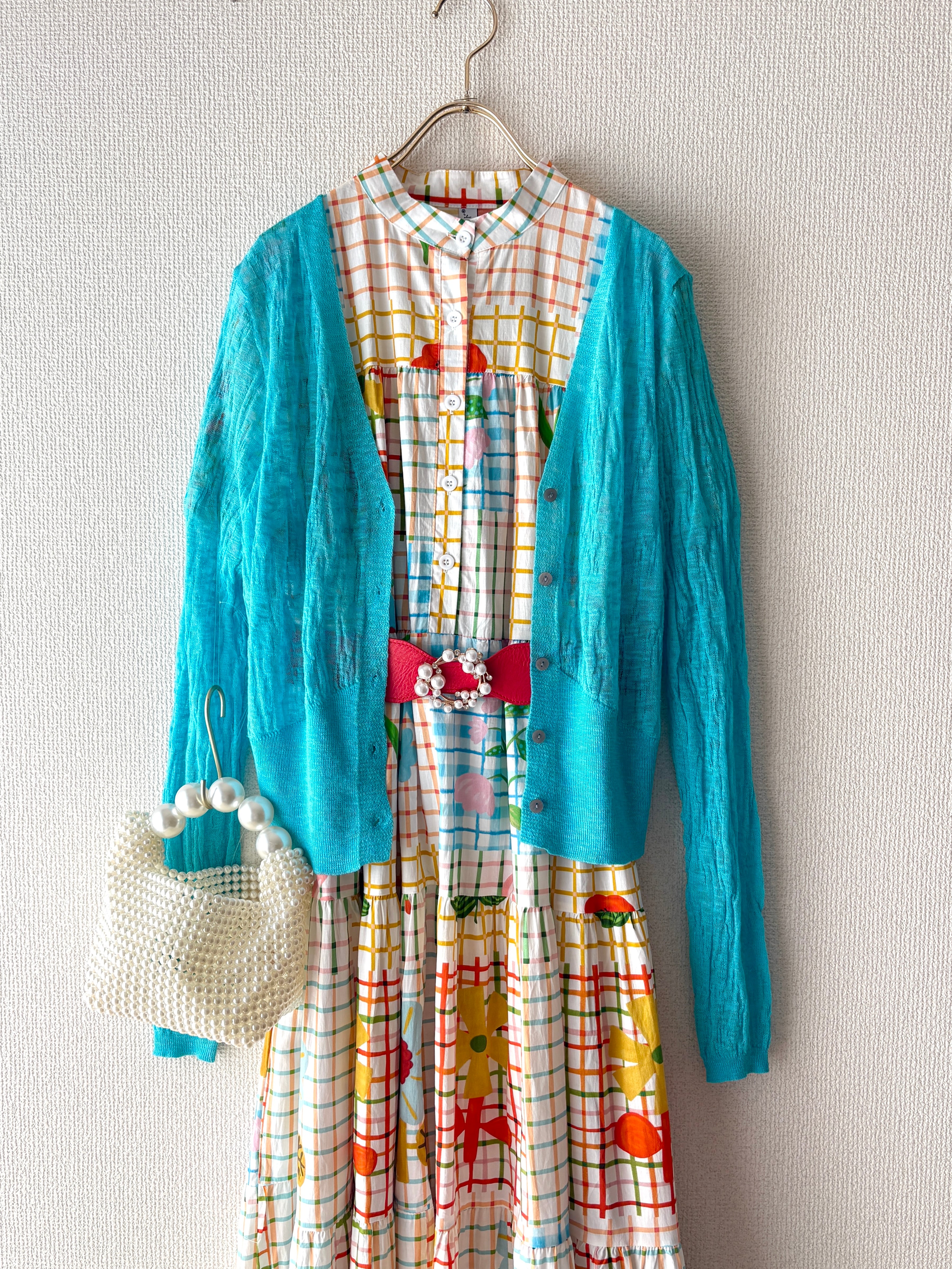 外で暑い時は肩にかけてお洒落なアイテムにもなります。軽くて柔らかい素材感です。