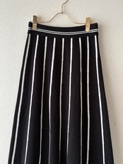 ニット素材で履いているだけで暖かいスカートです。ストライプのデザインがスタイルアップと細見えにしてくれます
