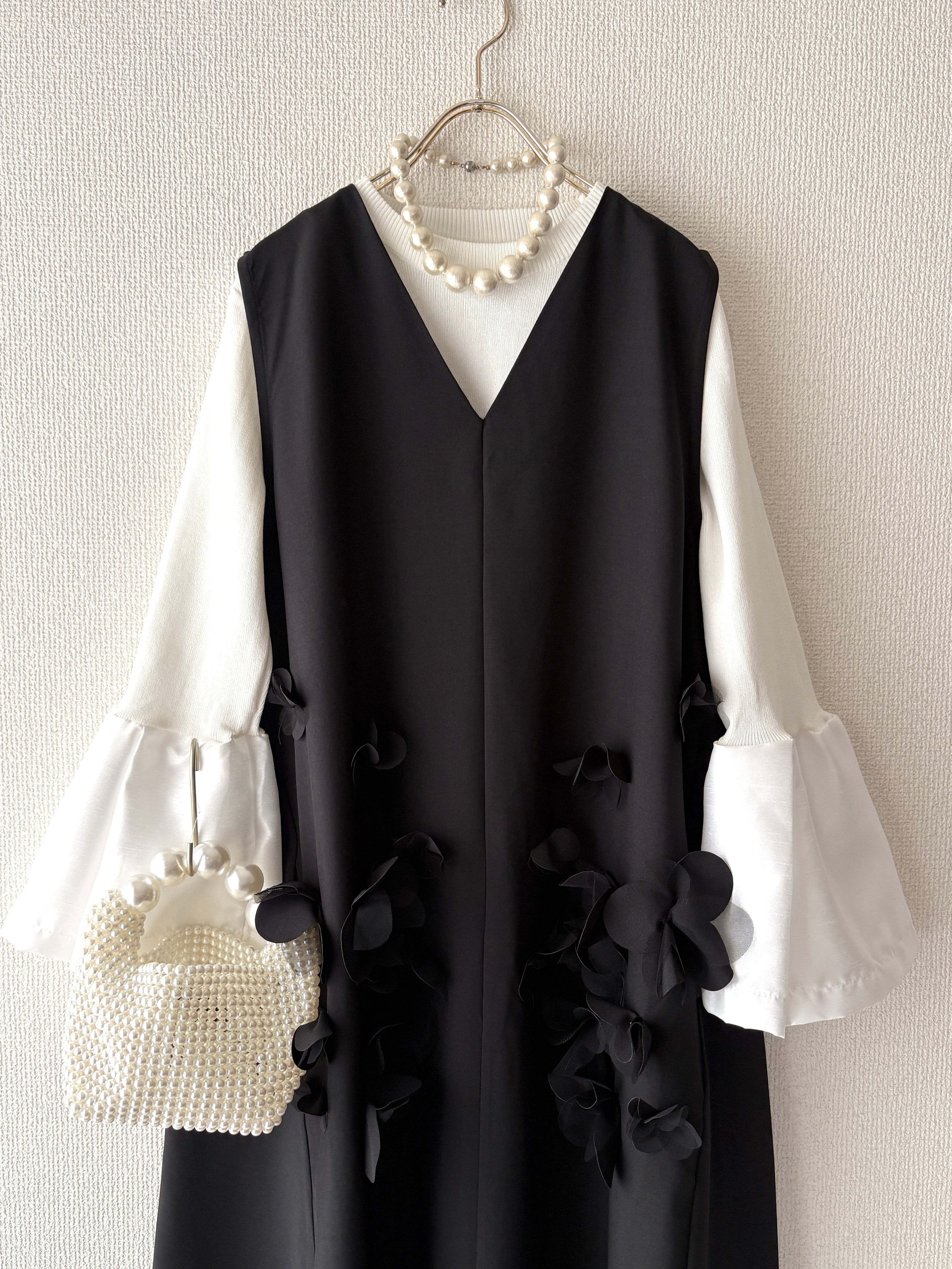 真ん中のお花のデザインが上品さを出してくれるワンピースです