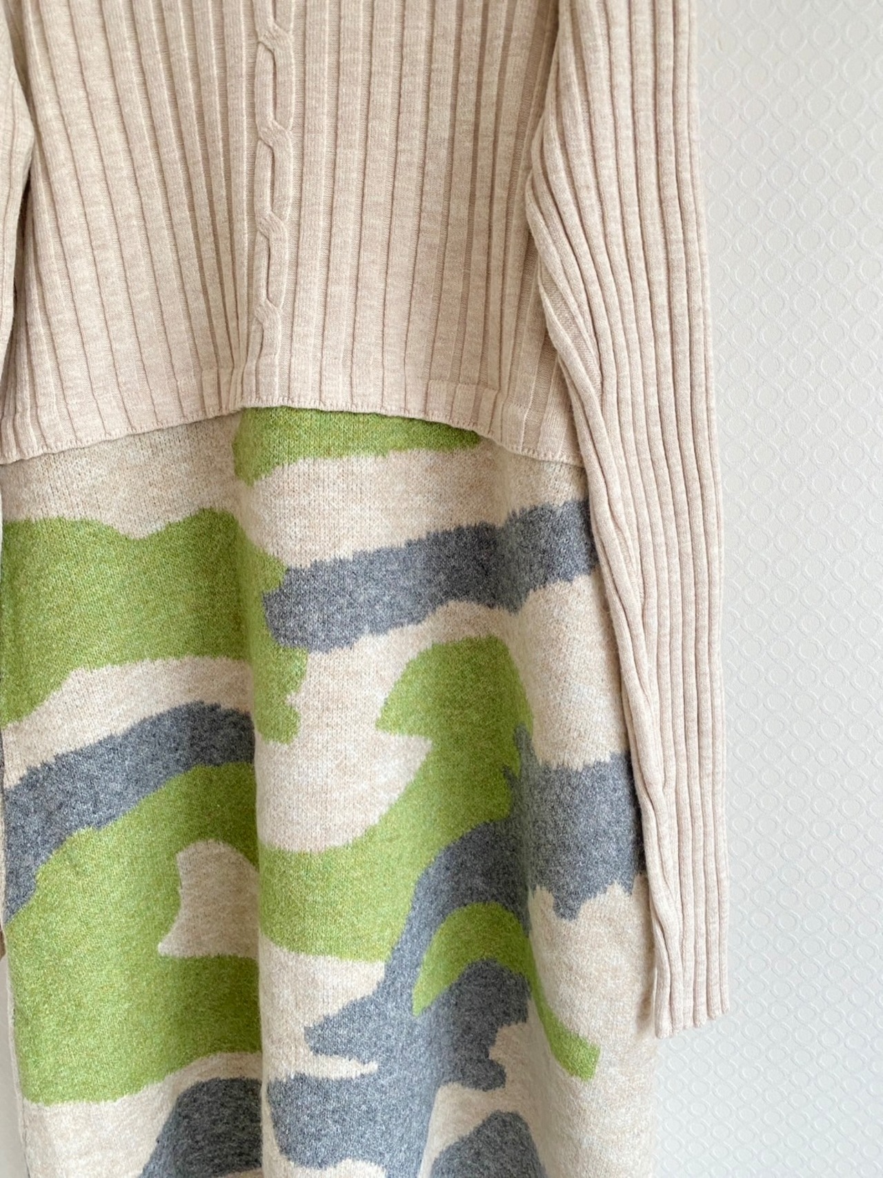 リブニットで伸縮性があり、暖かいです