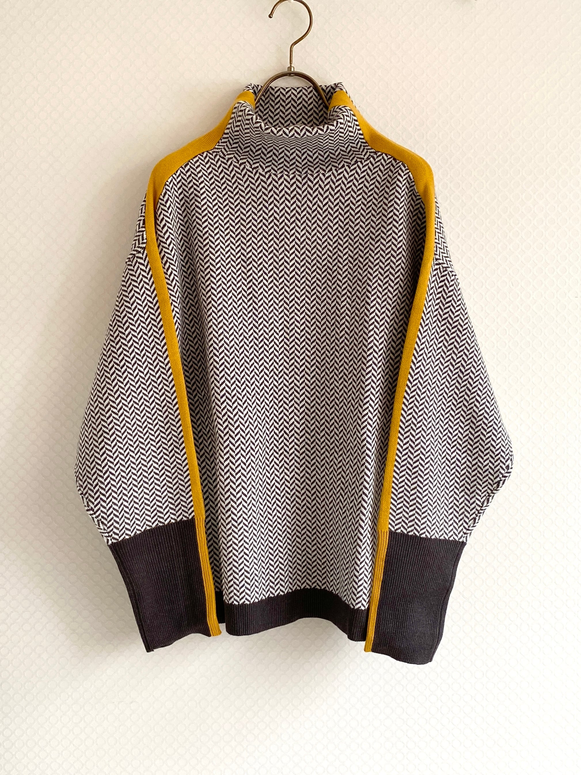 ヘリンボン柄に黄色のラインが