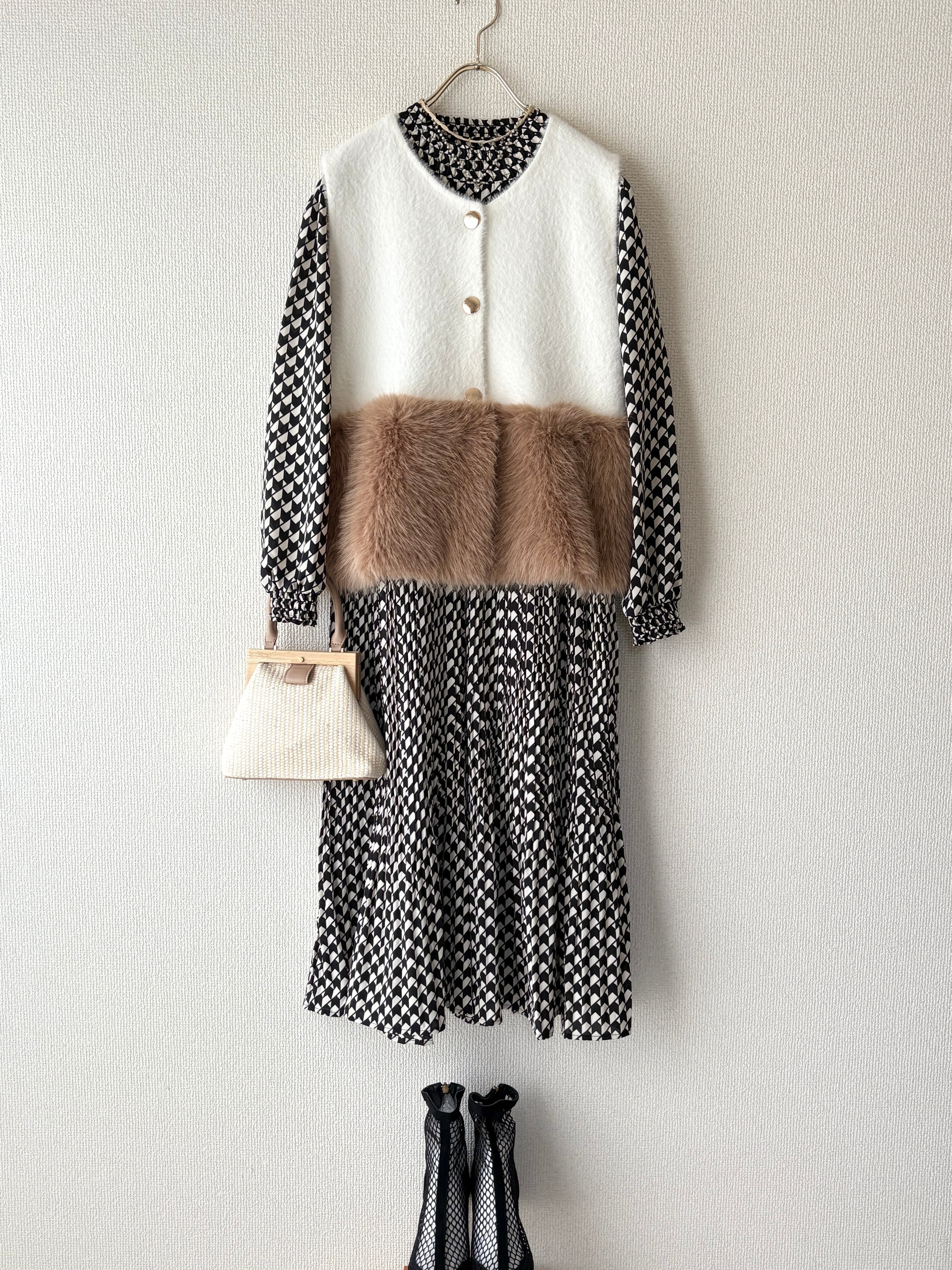 1枚でコーデが完成する幾何学柄ワンピース。