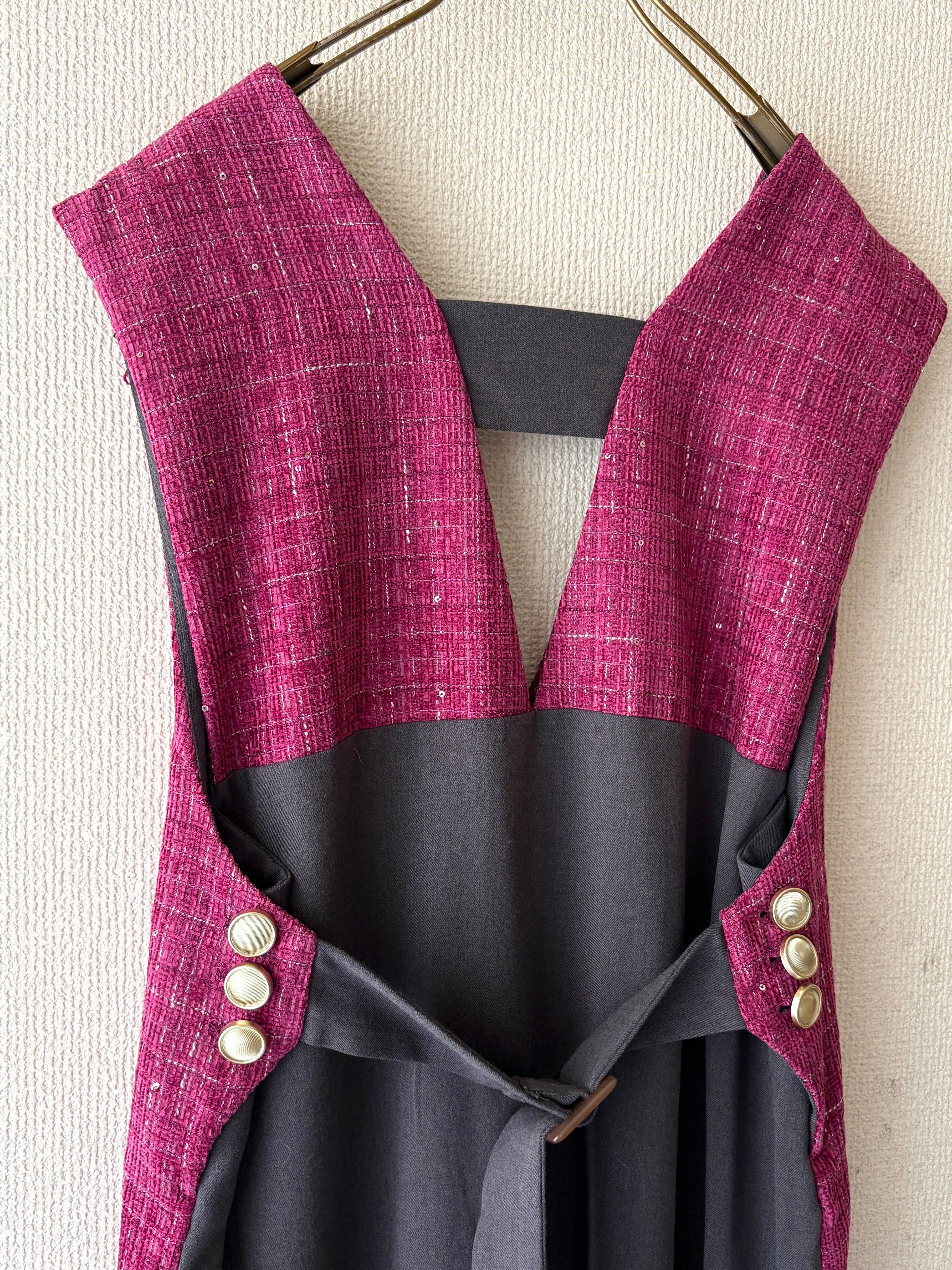 柔らかなベロアの光沢とツイードの立体感が上品なワンピース。