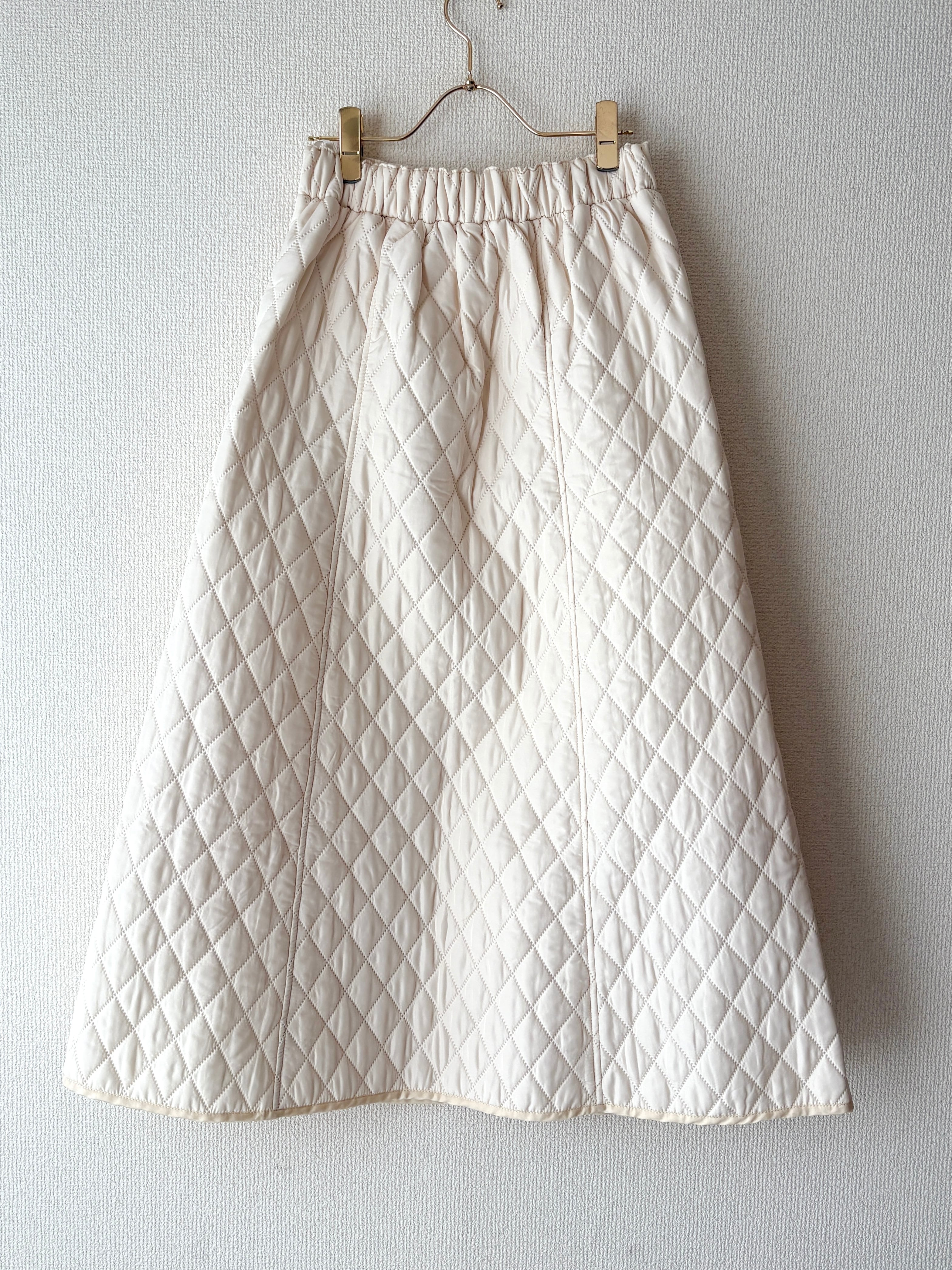 着ているだけで暖かく冬コーデに1枚持っていると便利なキルティングスカートです。