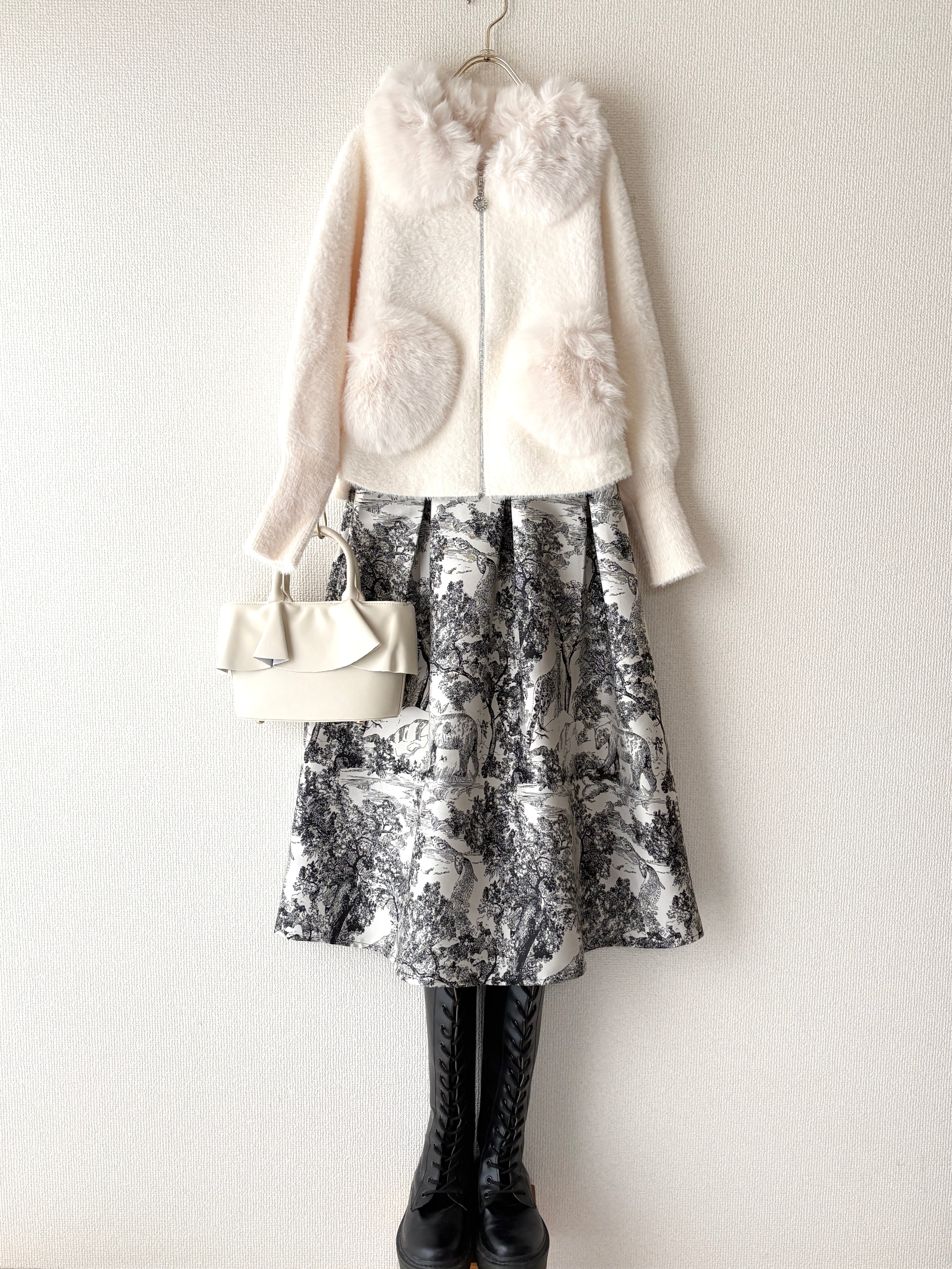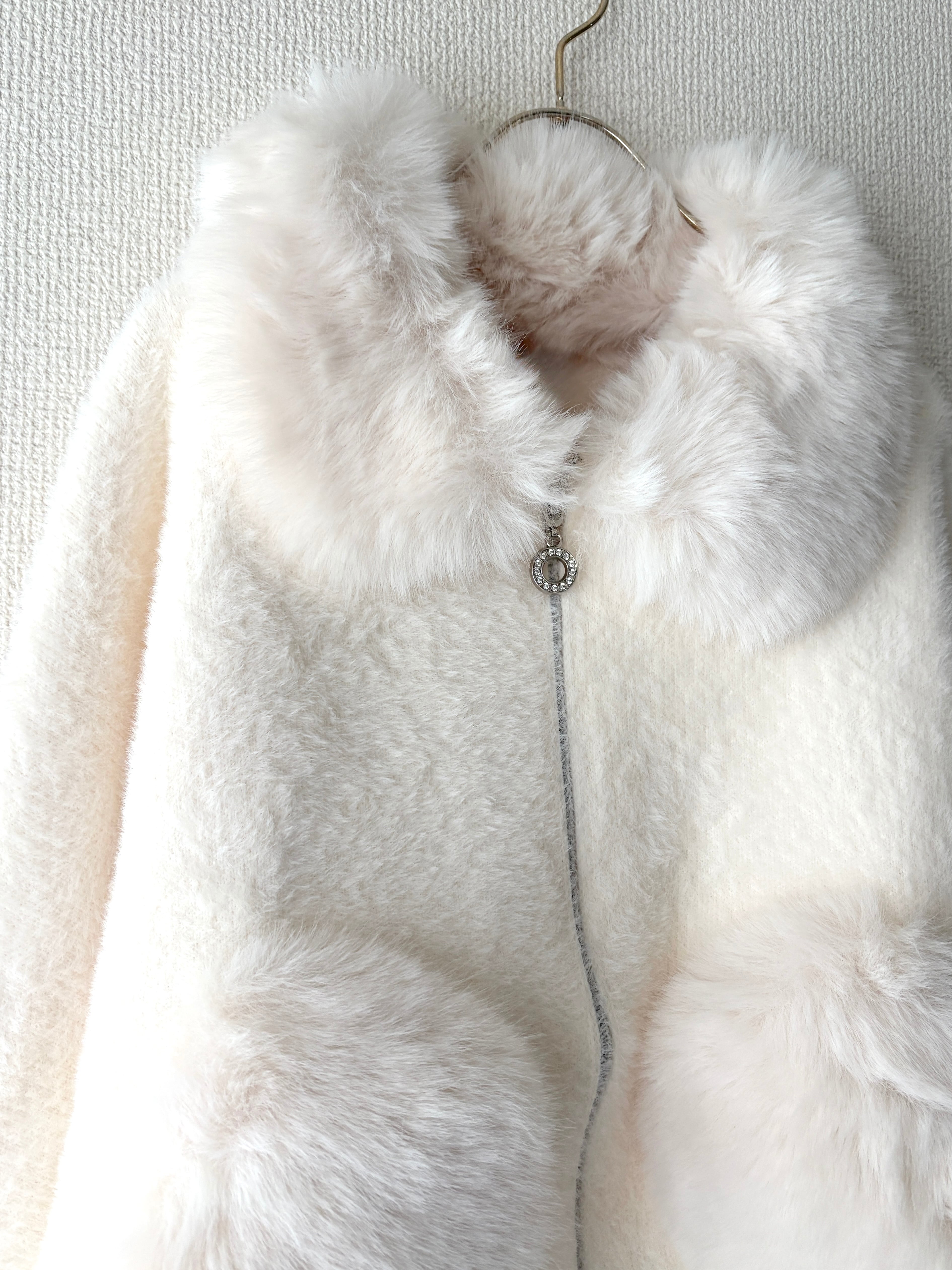 ふんわりファーの襟が顔まわりを華やかに見せてくれる、大人フェミニンジャケットです。