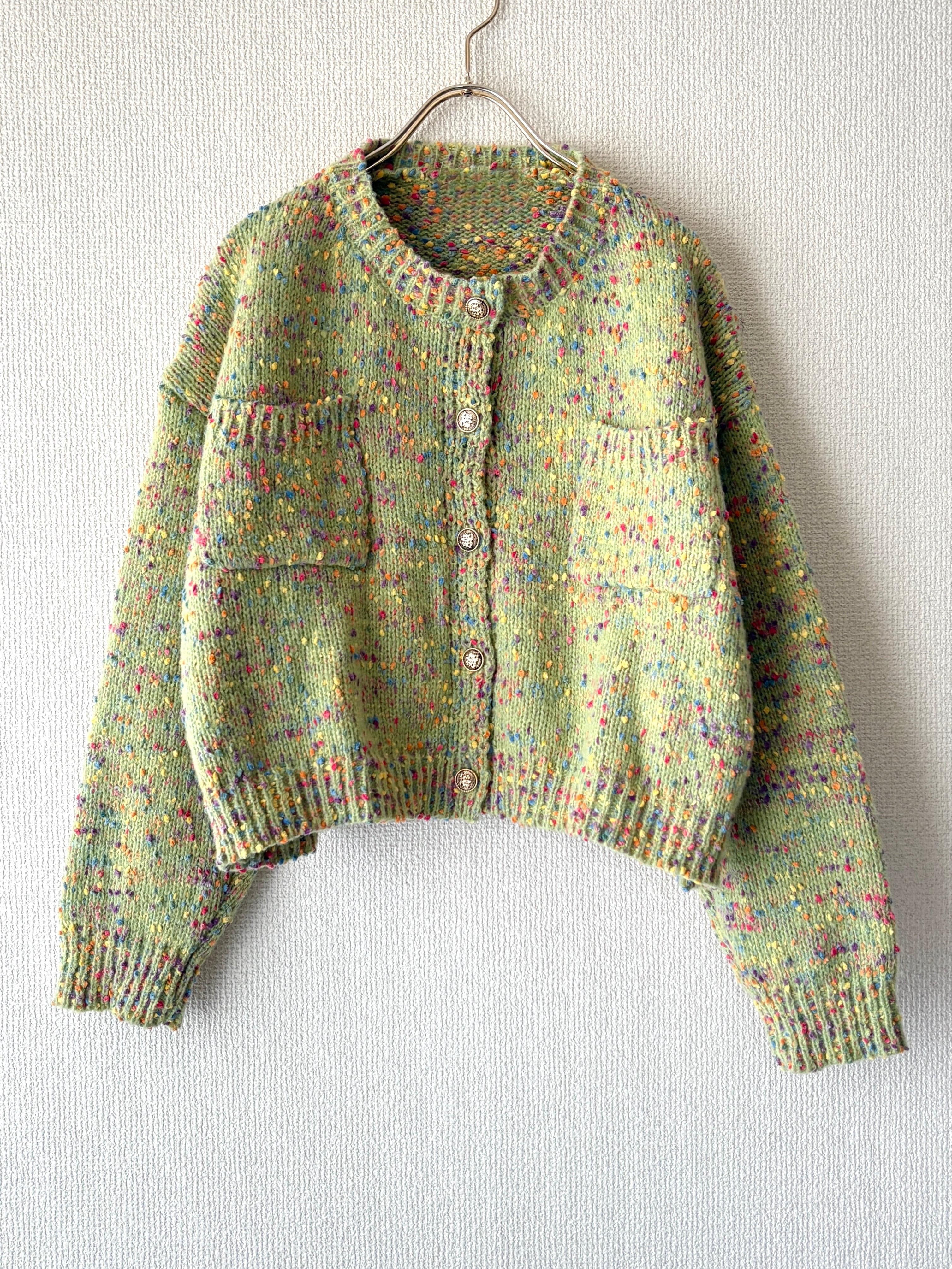 カラフルなデザインが目を惹く主役級カーディガンです。春先まで長く使えます。