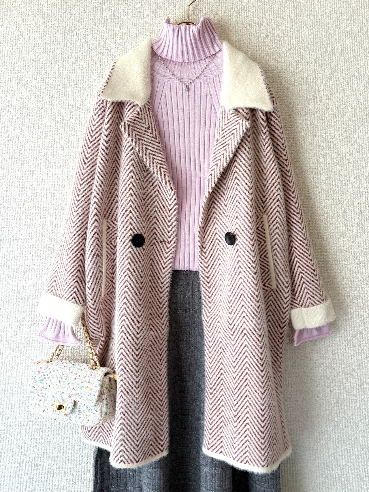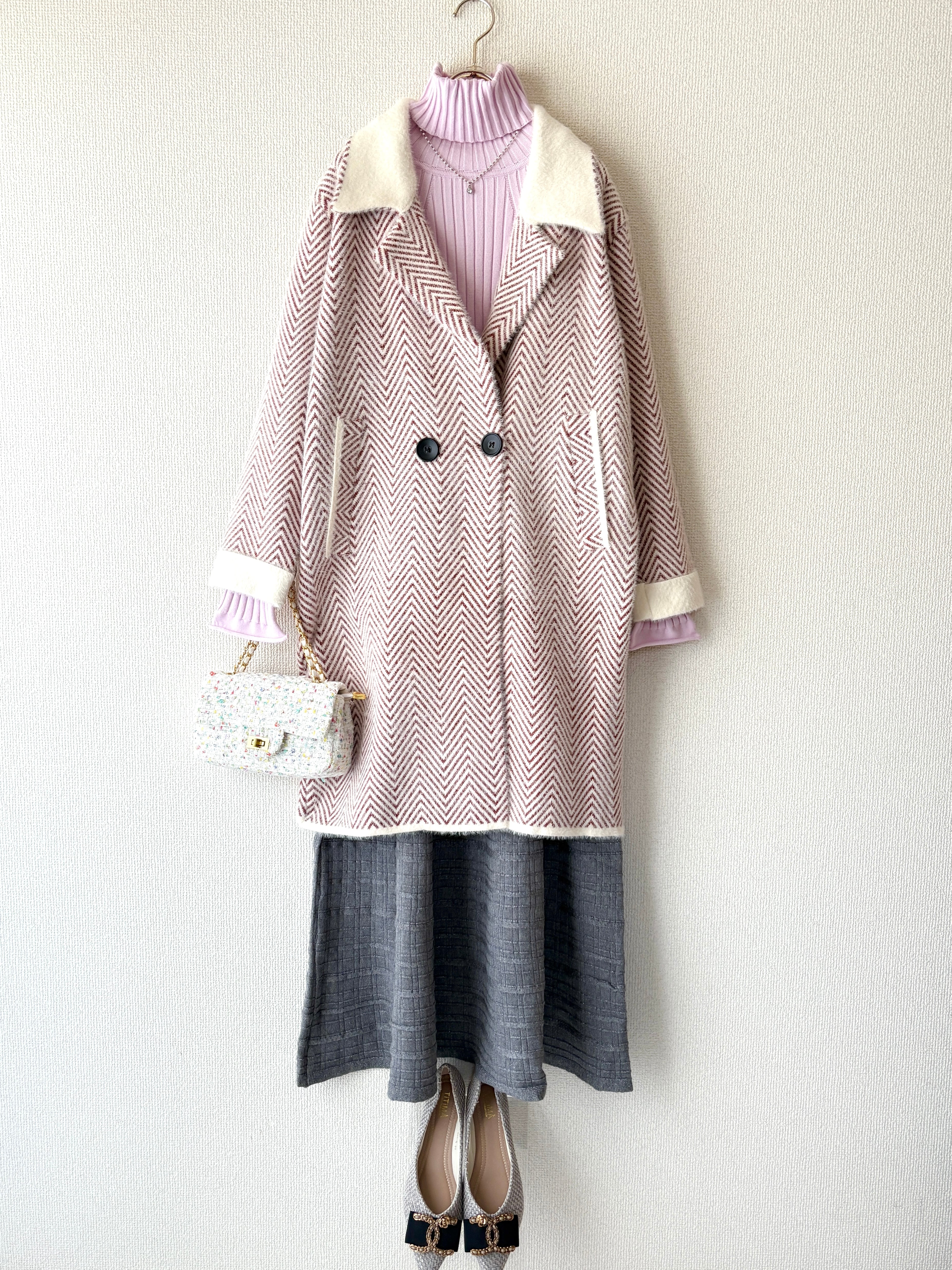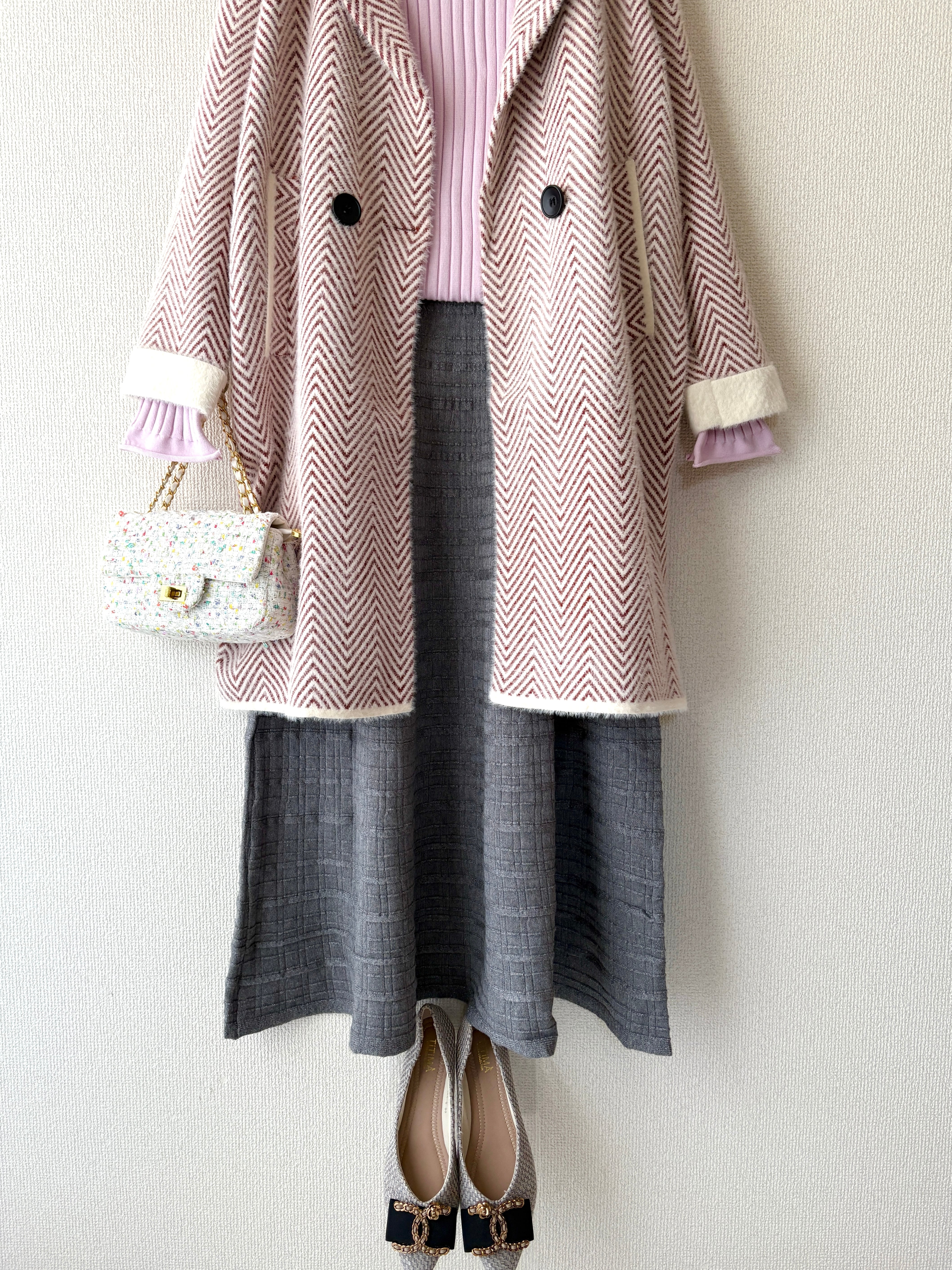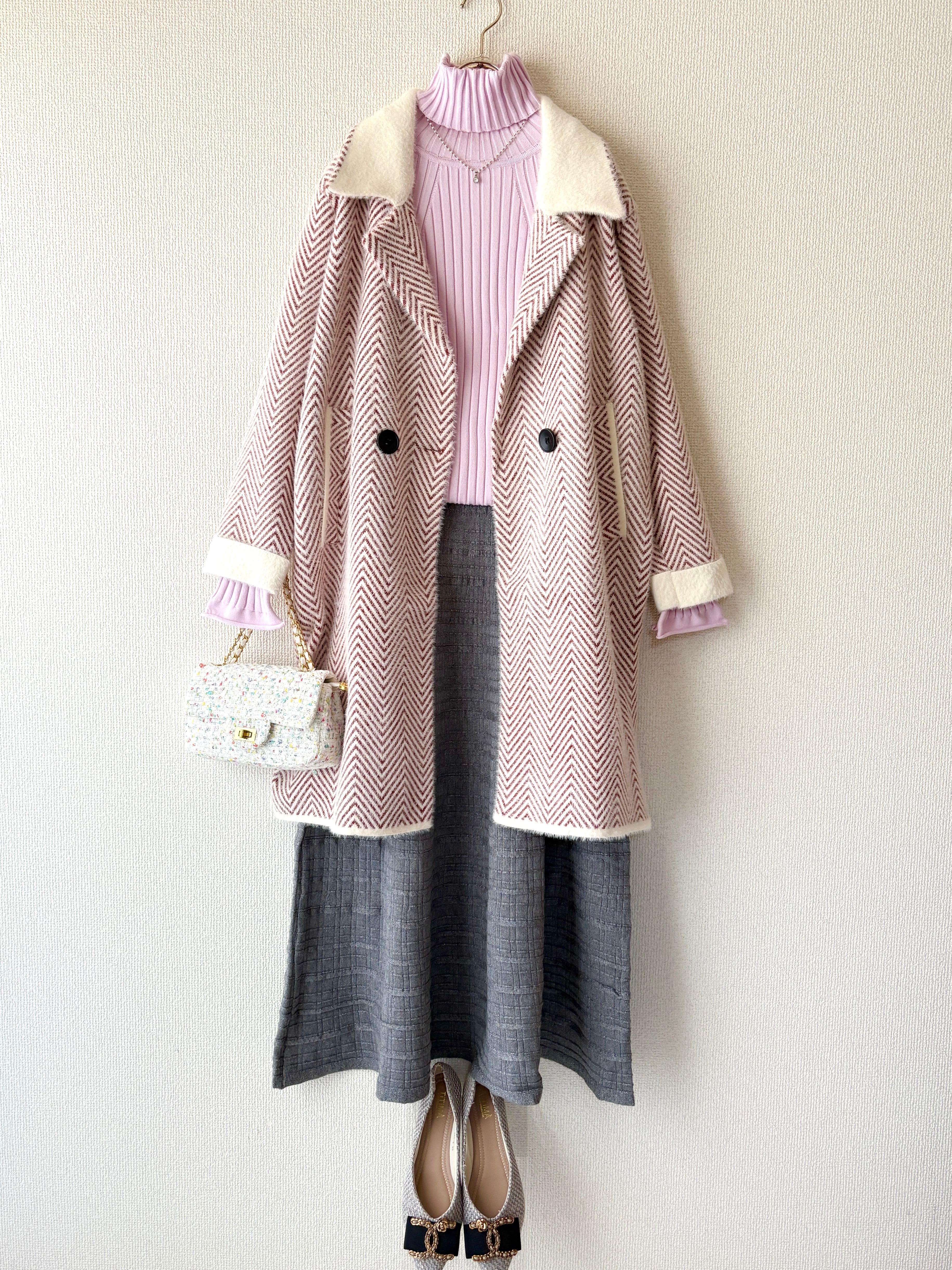 ヘリンボーン柄がさりげなく表情を出す、高級感あるジャケットコートです。