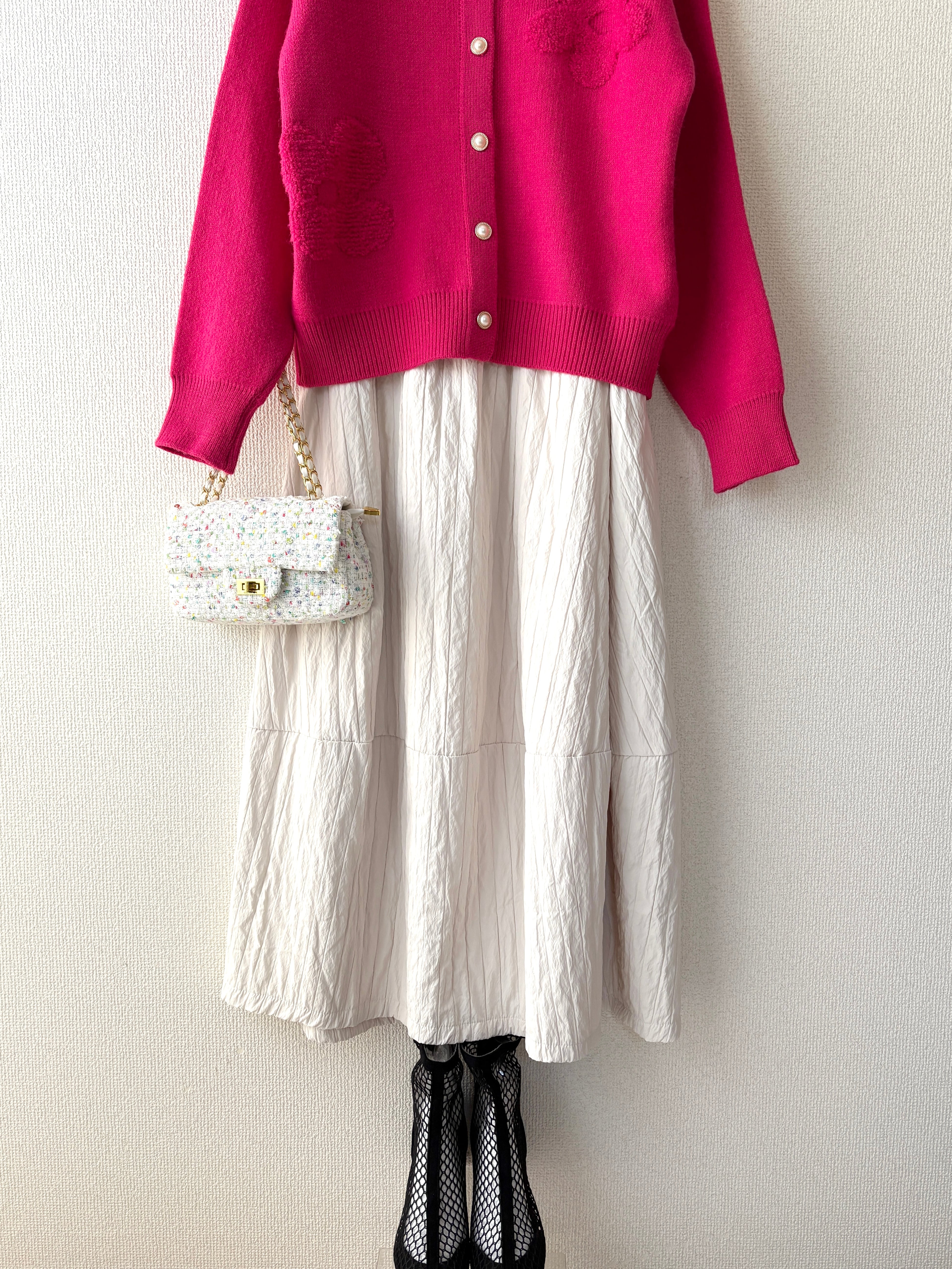 動くたびにふわっと揺れる立体感で、履くだけでこなれた印象に。