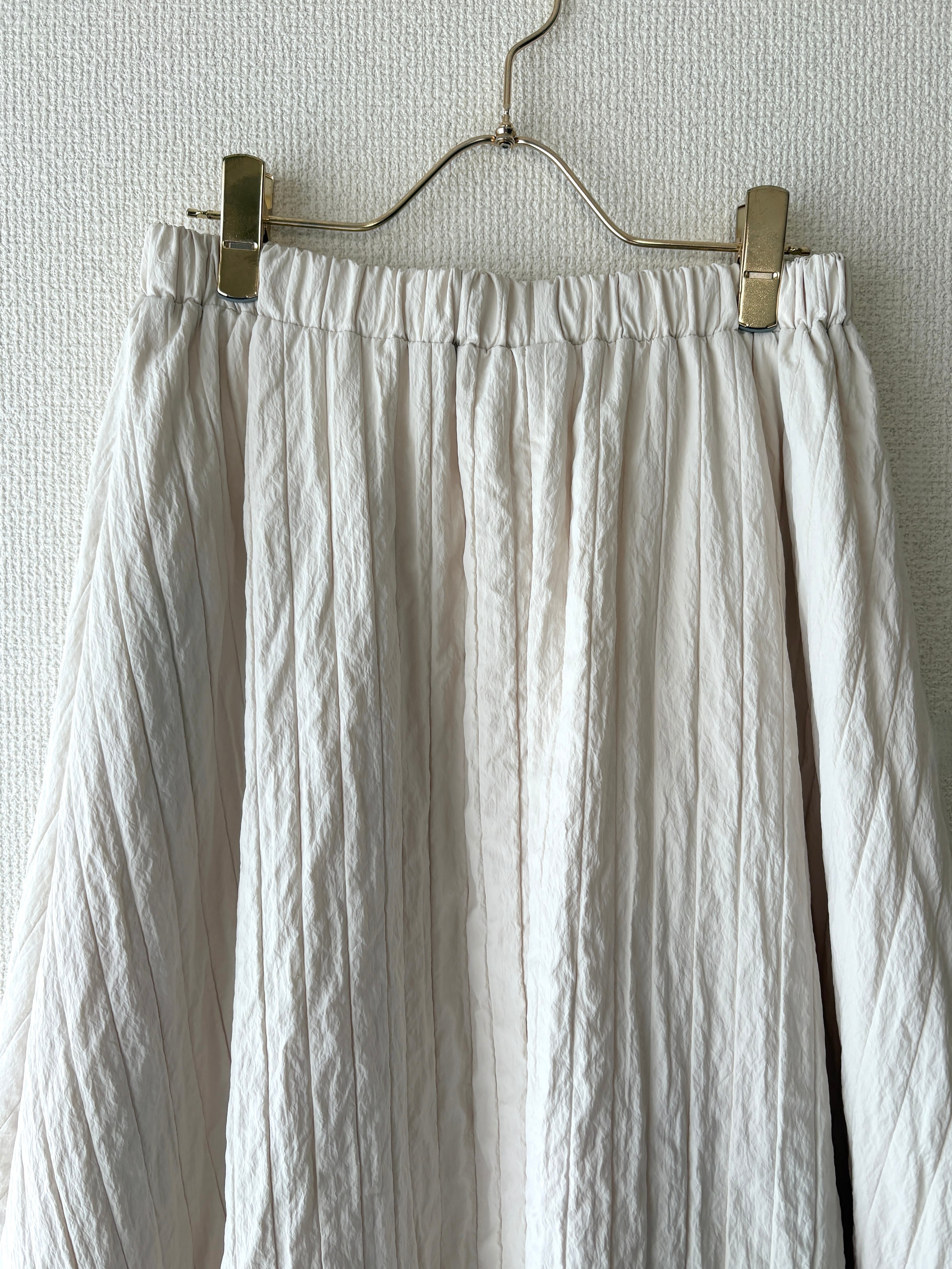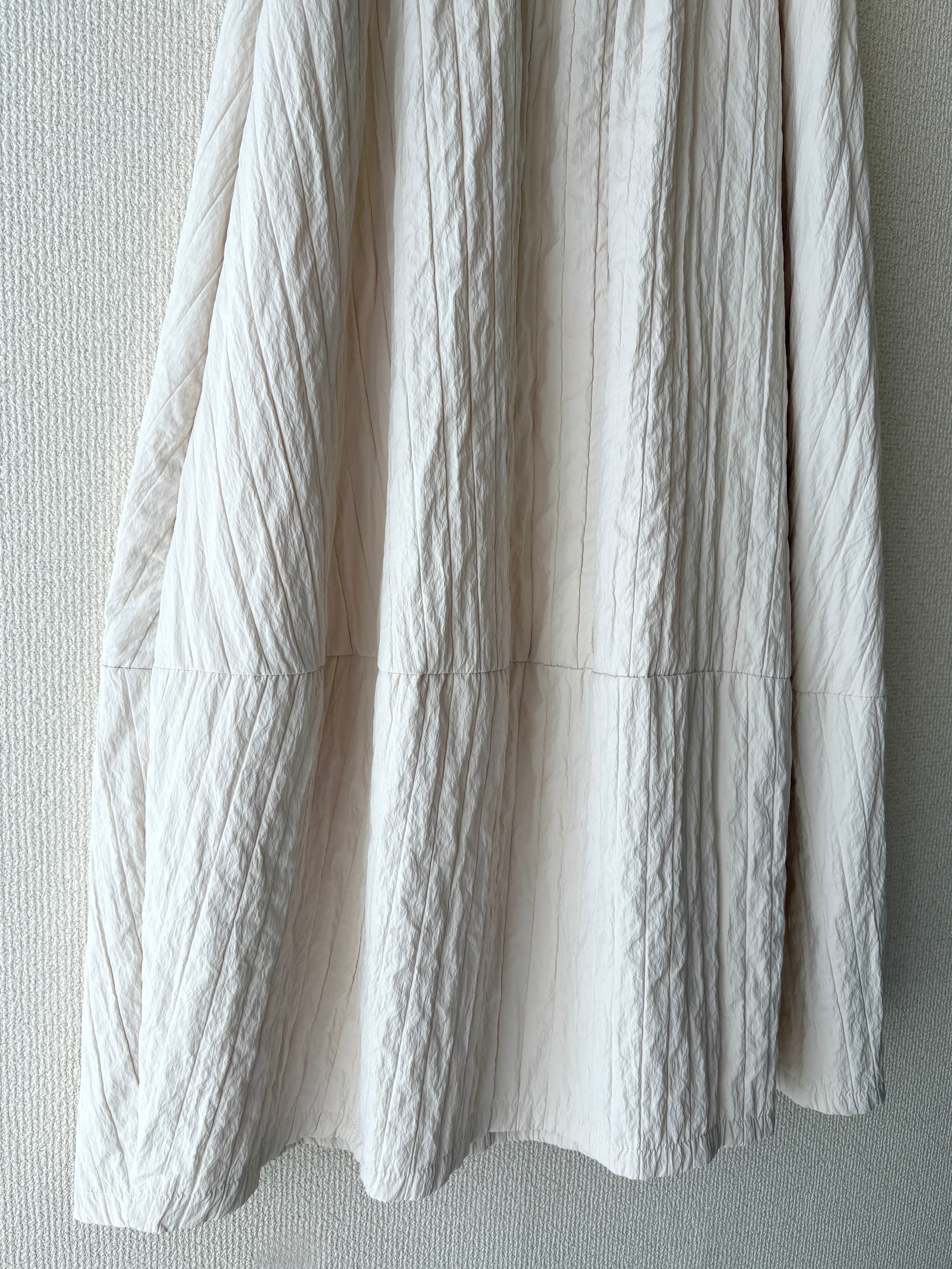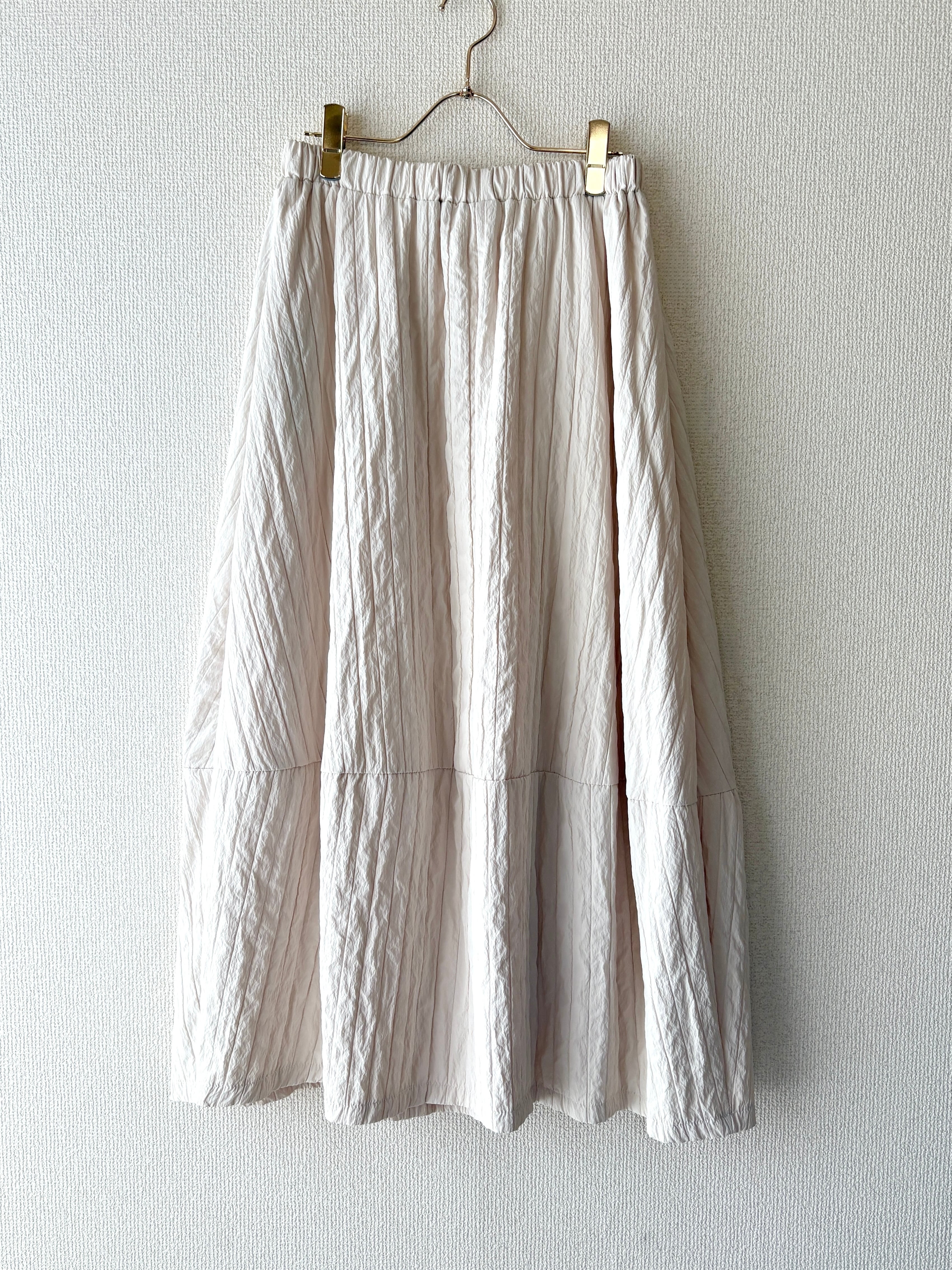 軽やかなポリエステル素材にワッシャー加工が施した、シワが気にならないフレアスカート。