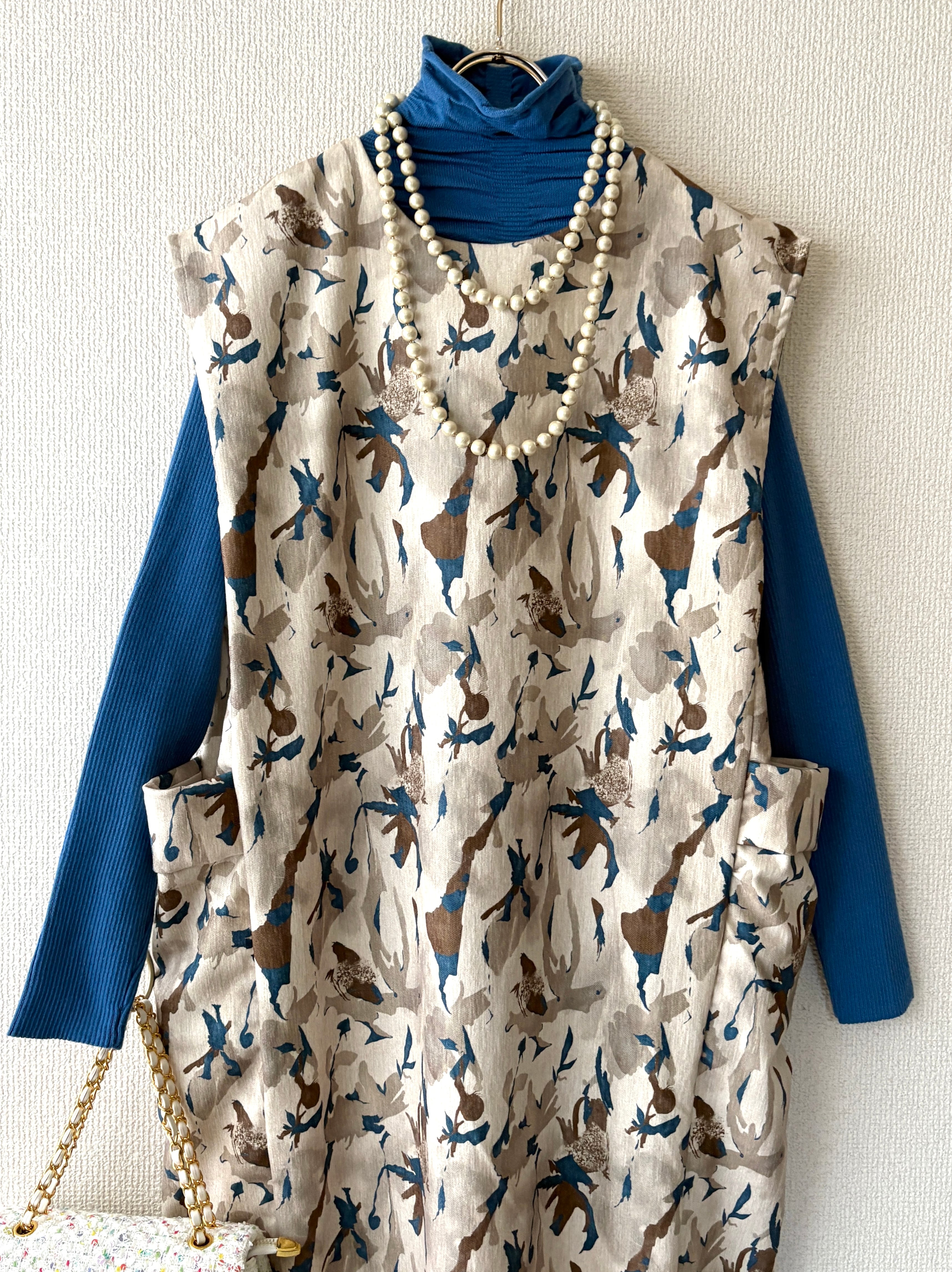 落ち着いたベージュベースにブルー×ブラウンの配色で、派手すぎず上品な印象に。