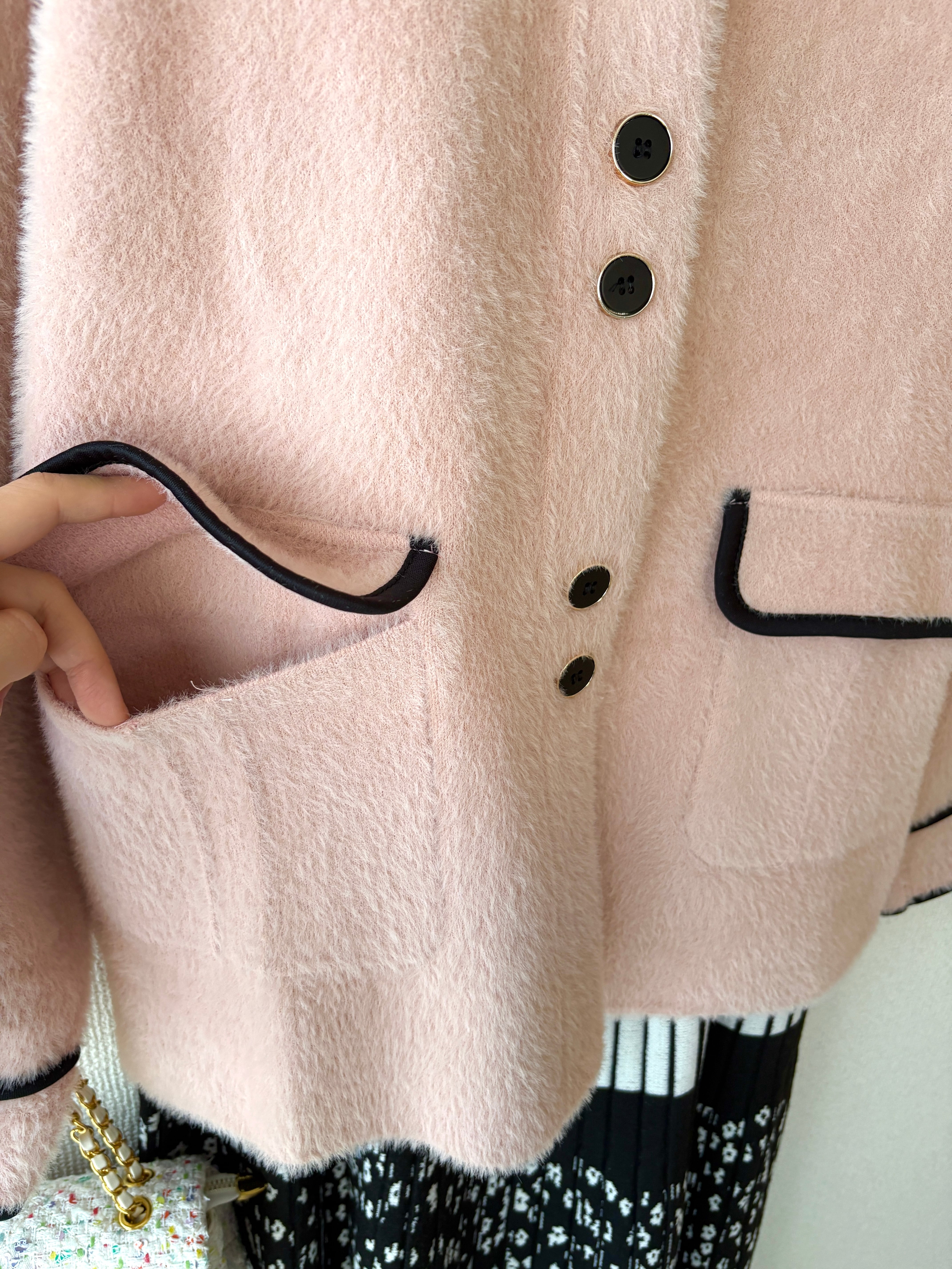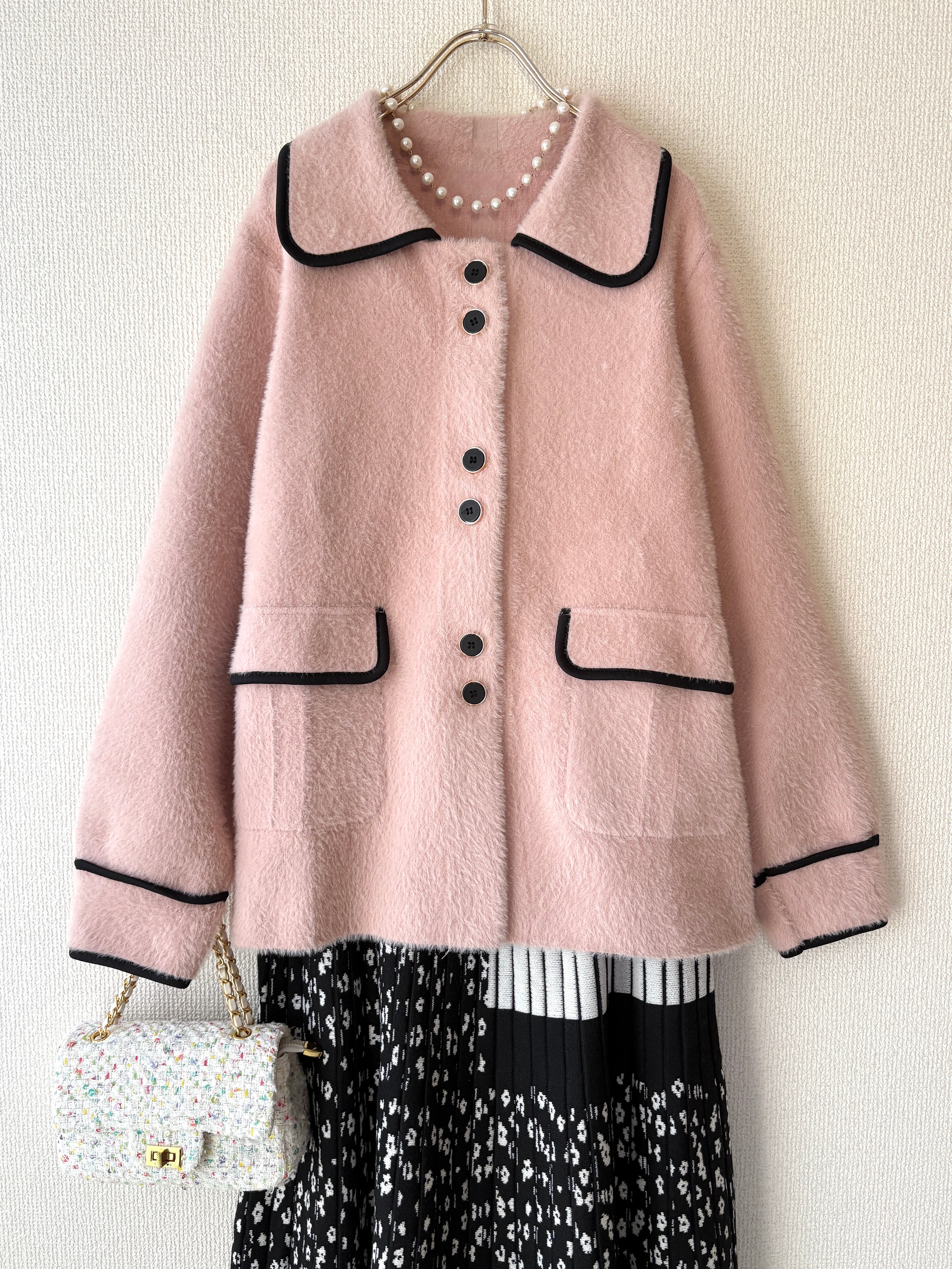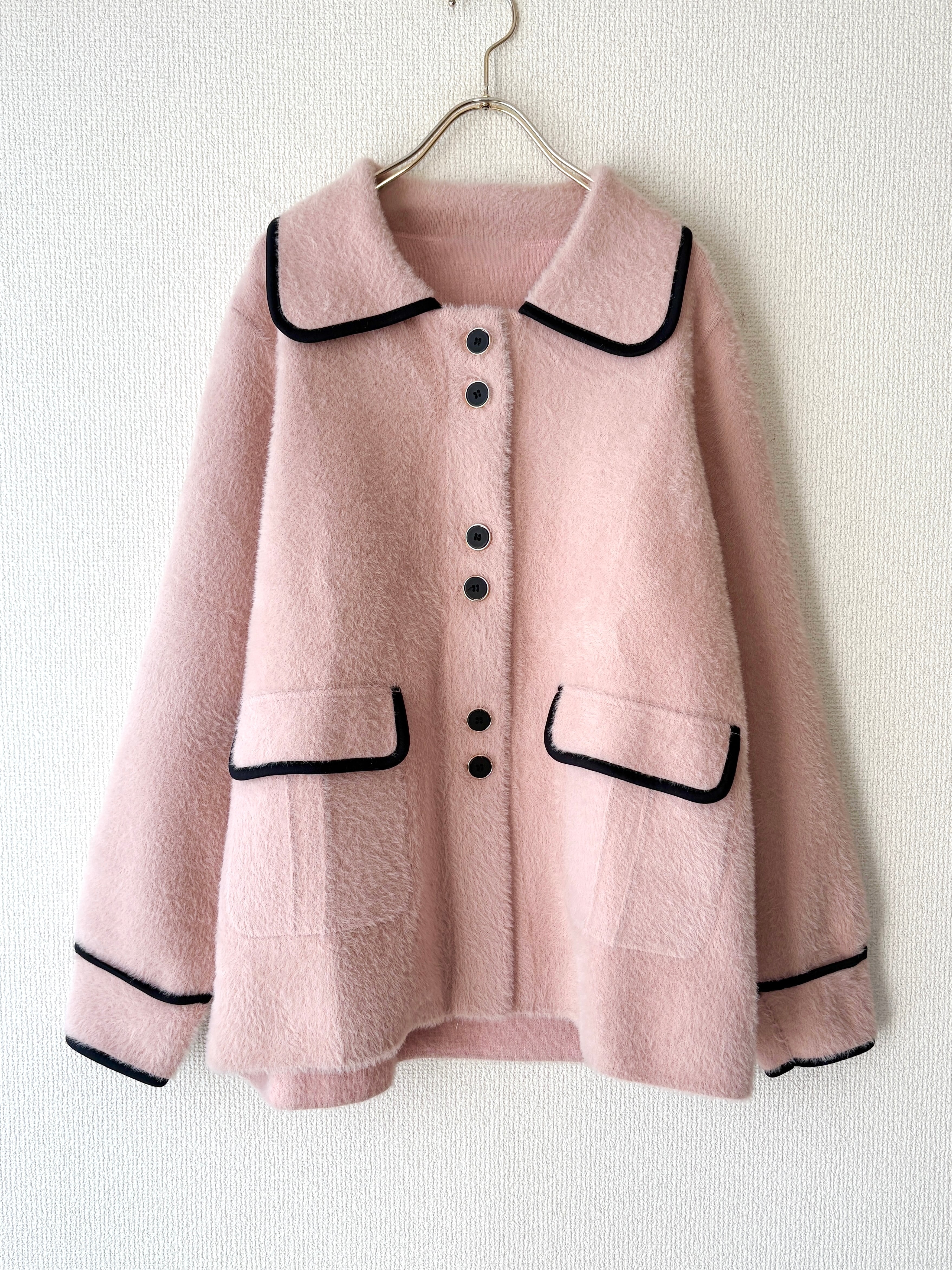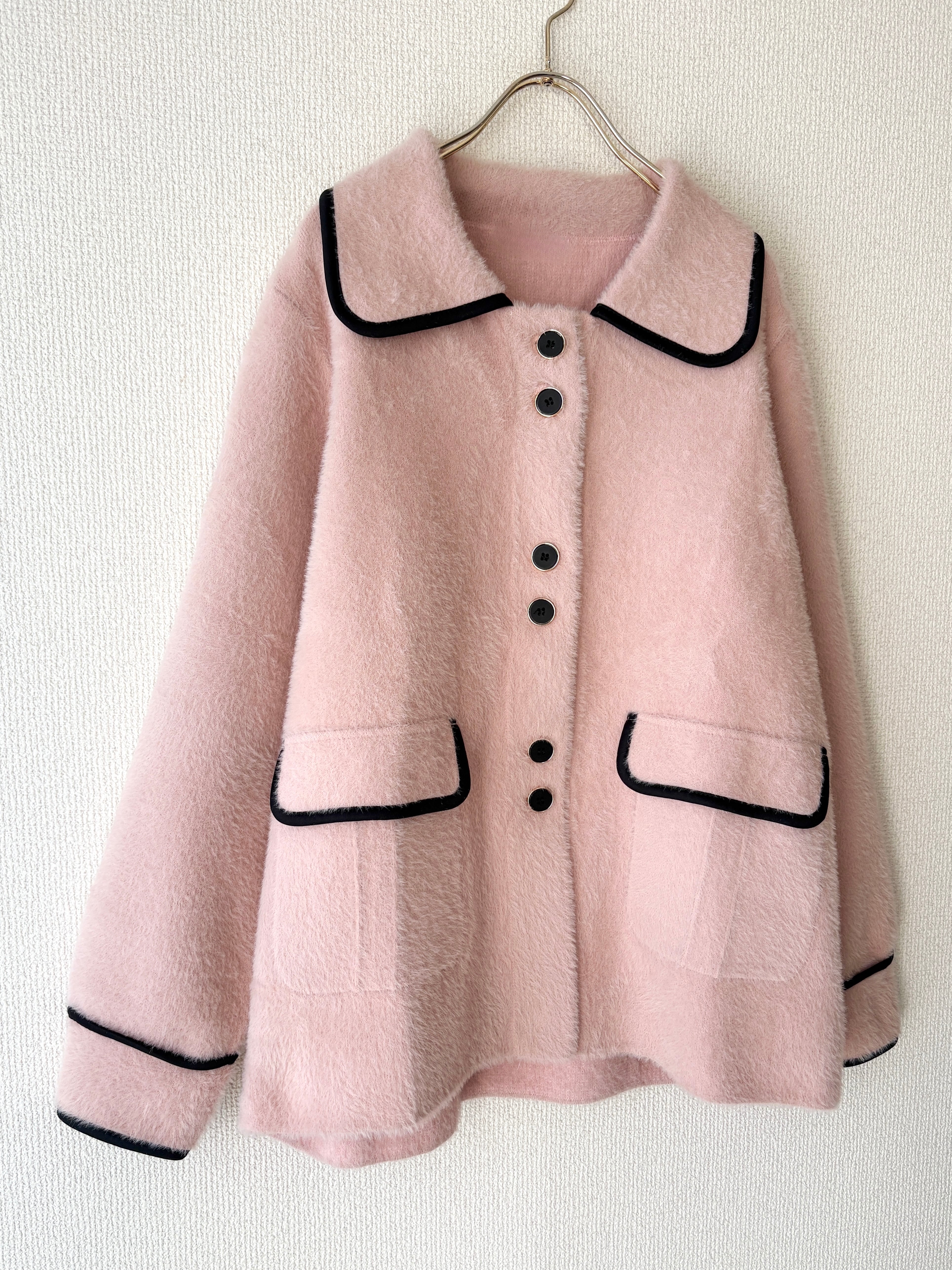 ふわっとした起毛感が可愛い、大人のピンクジャケットです。