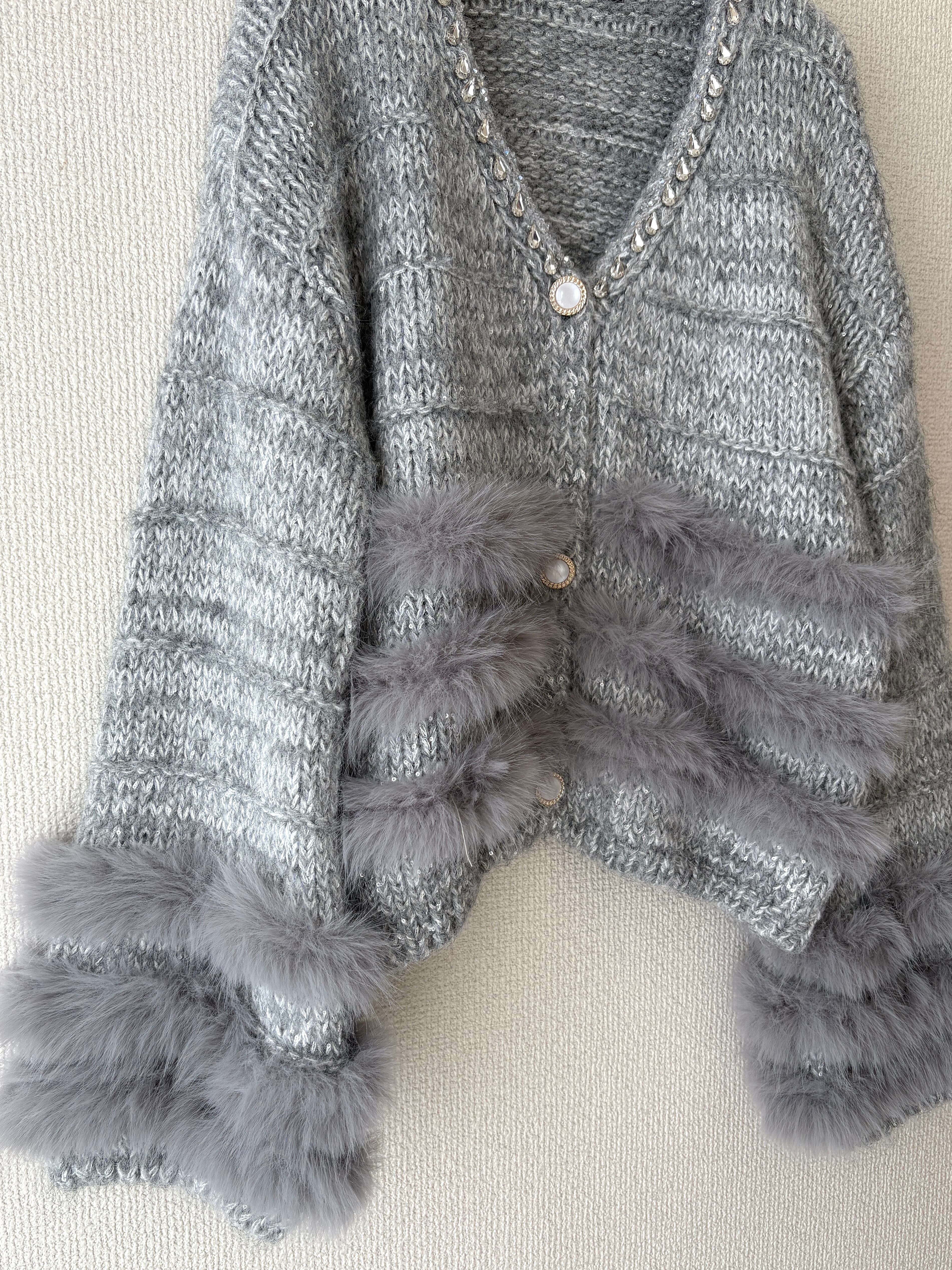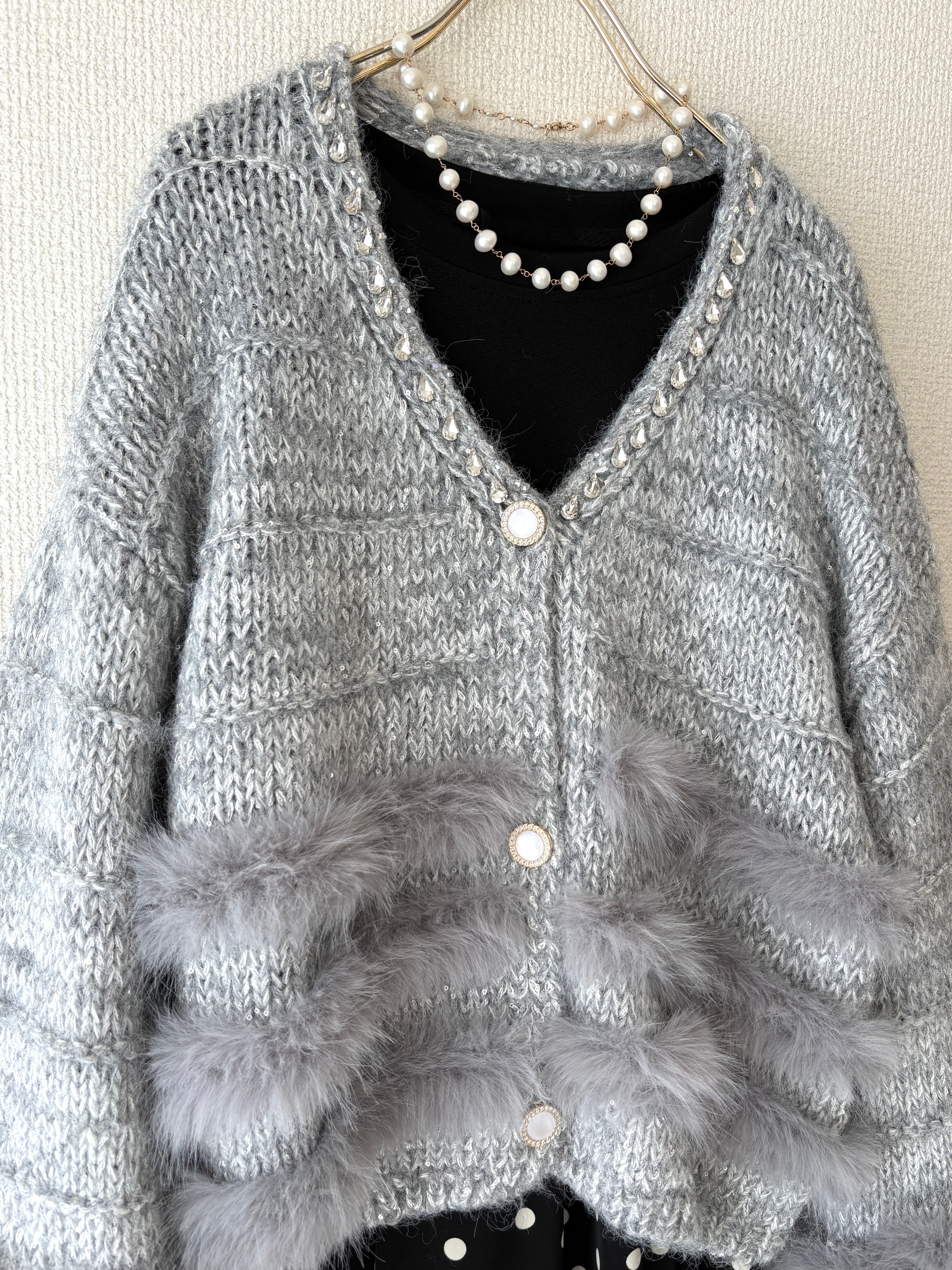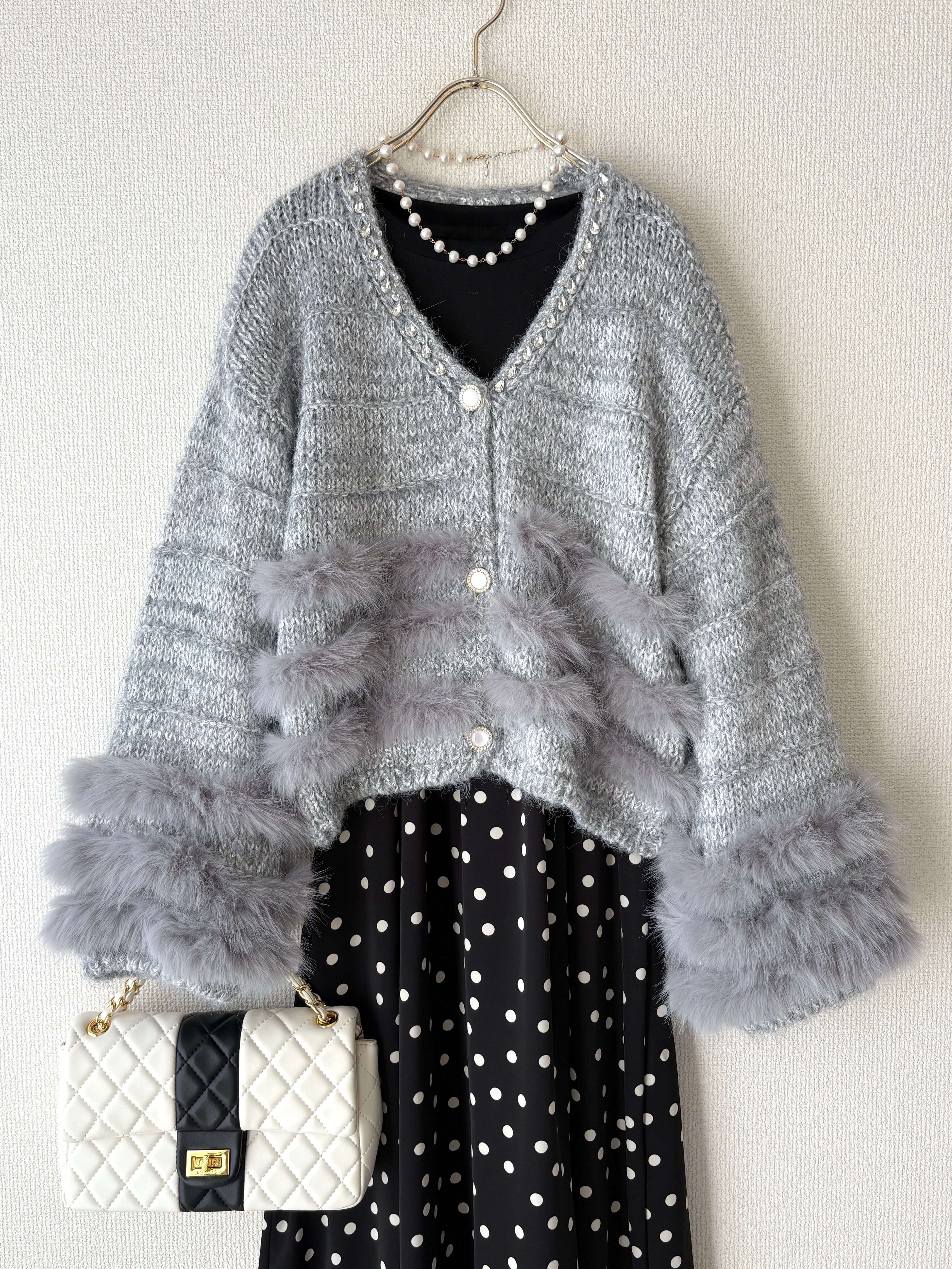 ラメ感のあるニットカーディガンです。