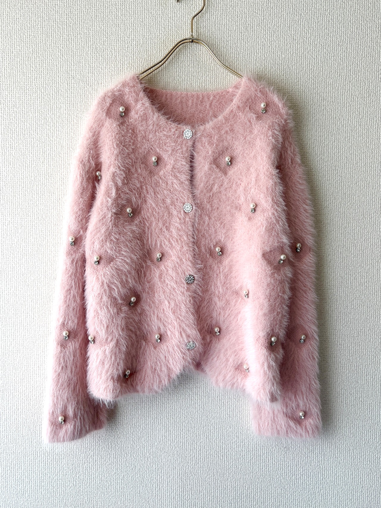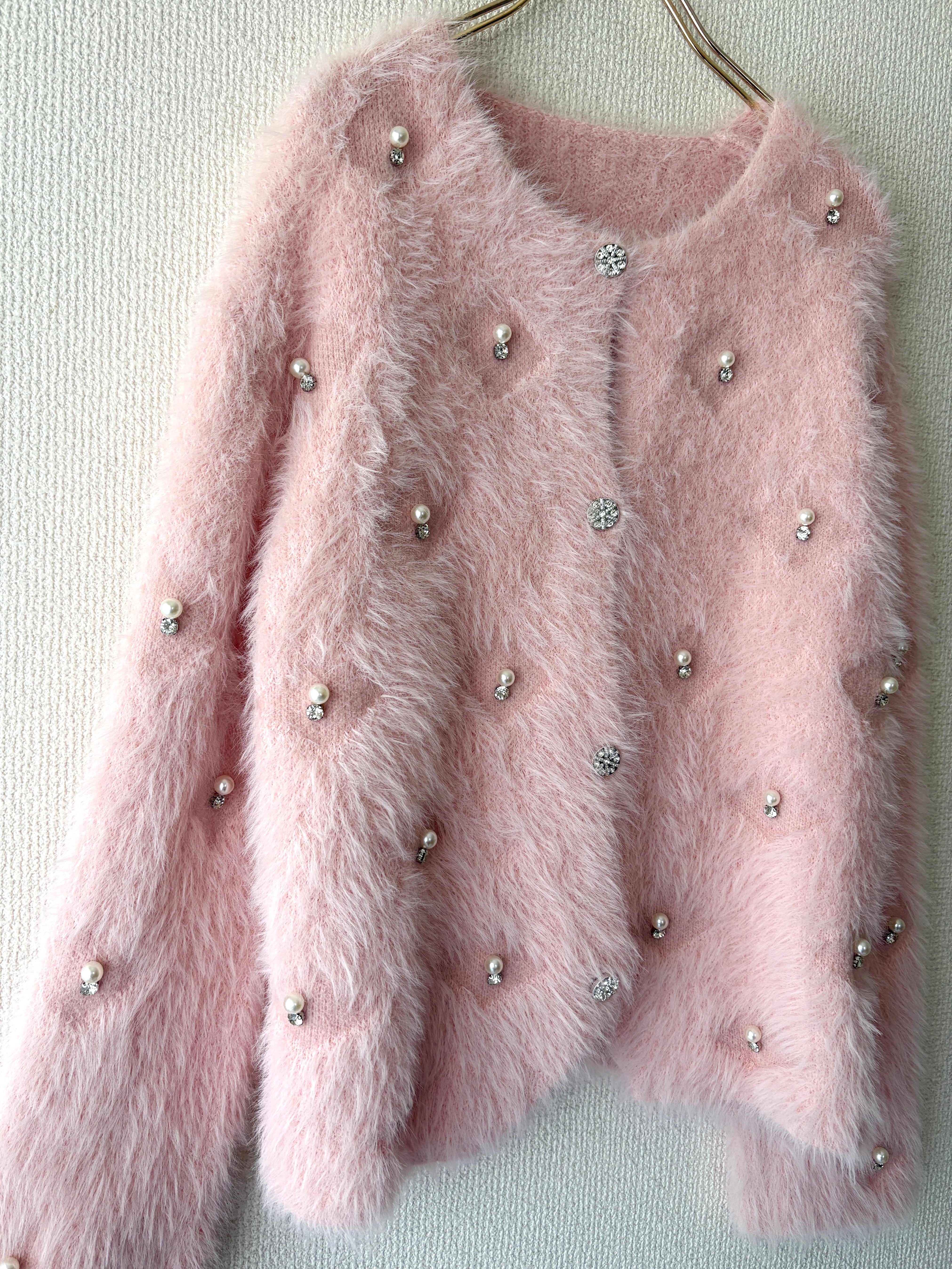 上品なパールをあしらった大人可愛いカーディガンです。