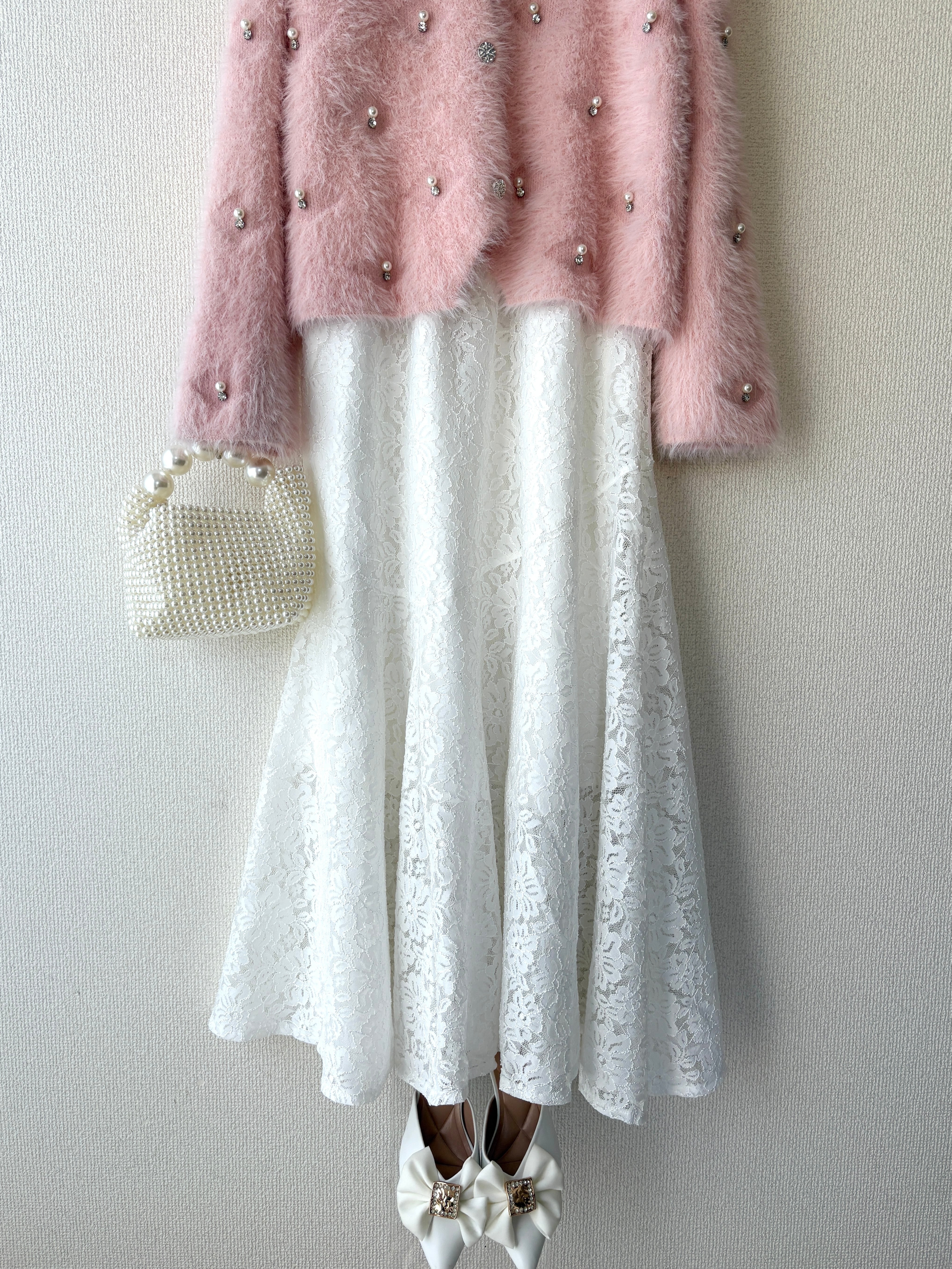真っ白なレースが映える、上品なフレアスカートです。