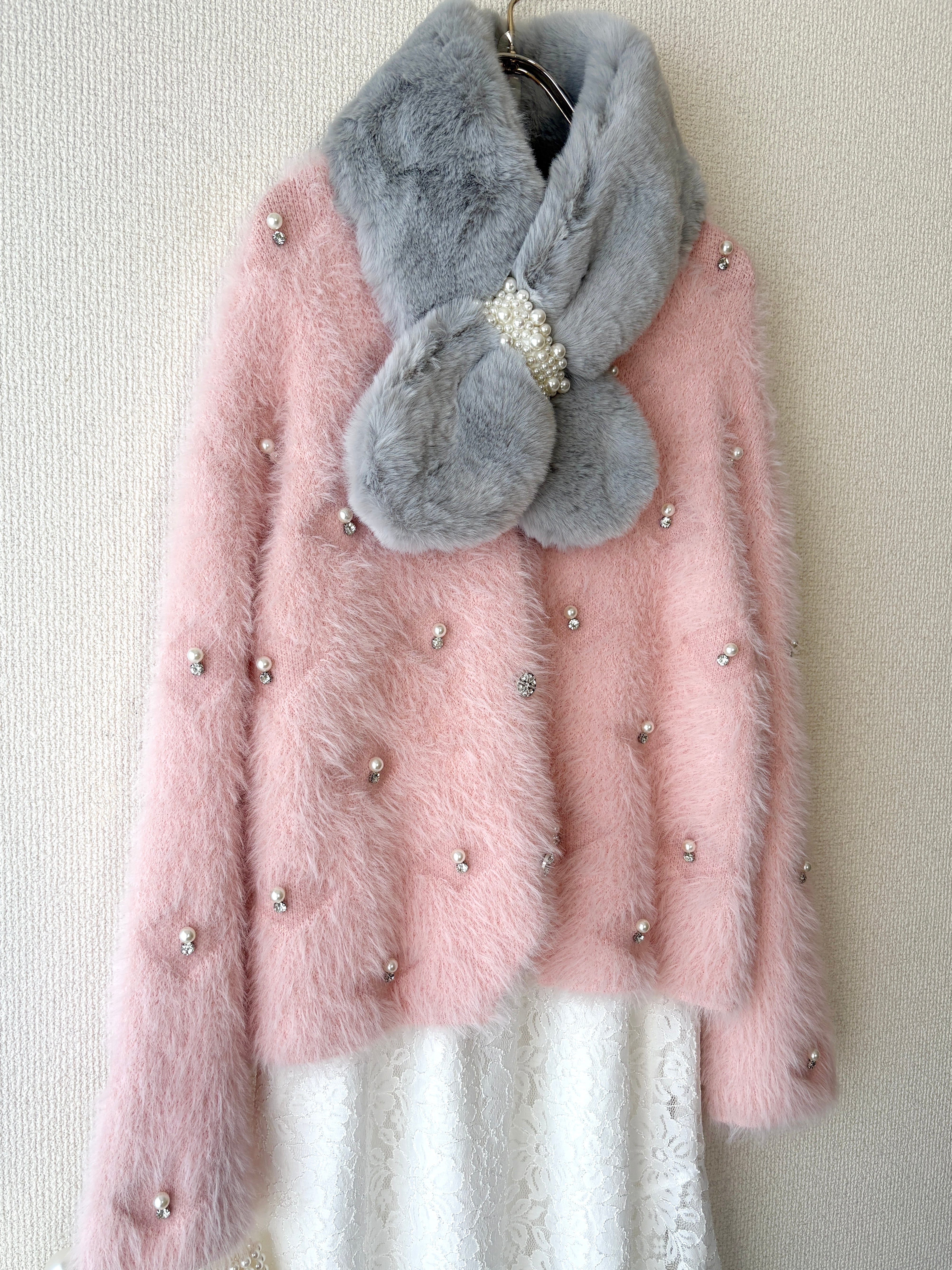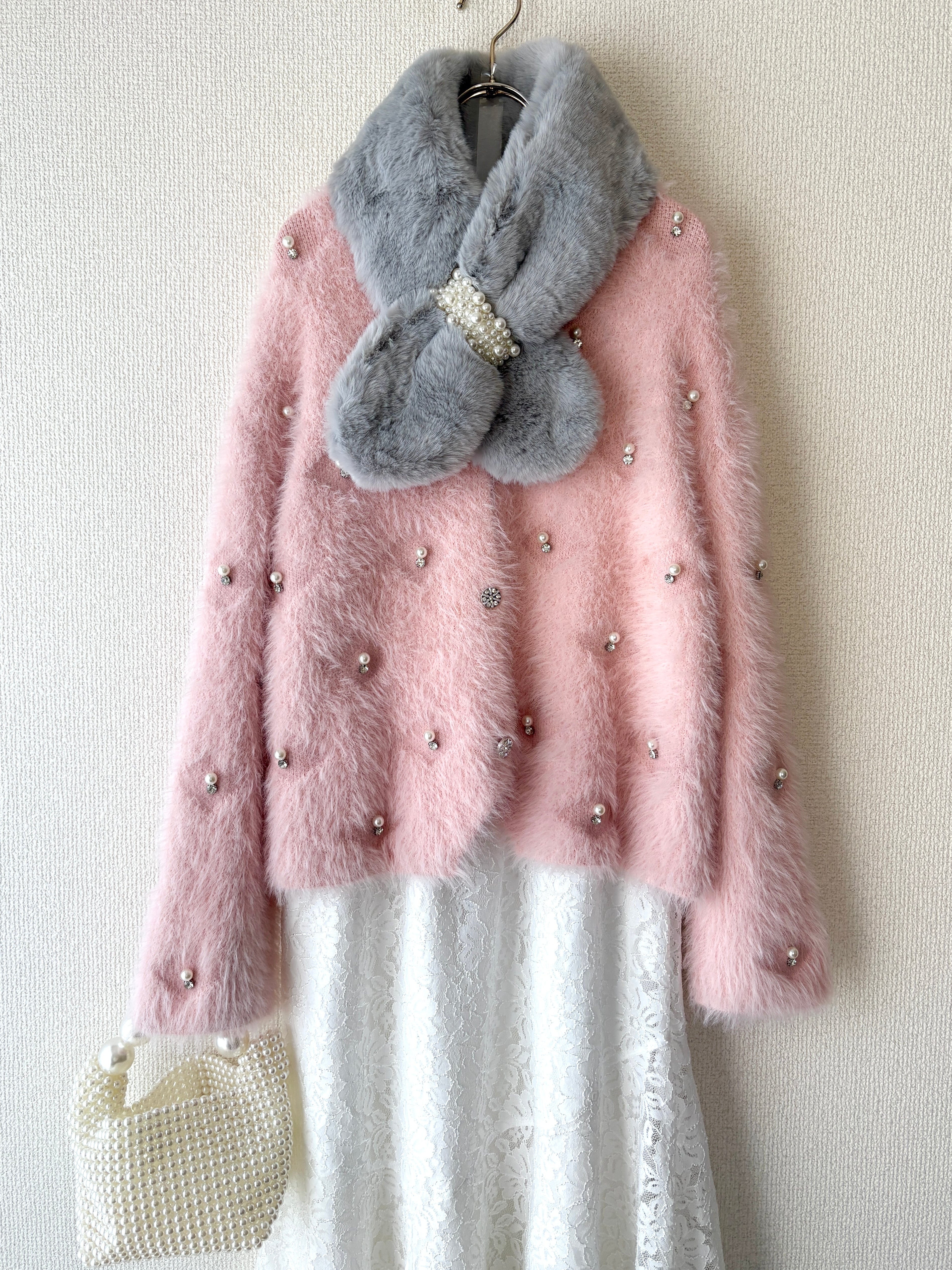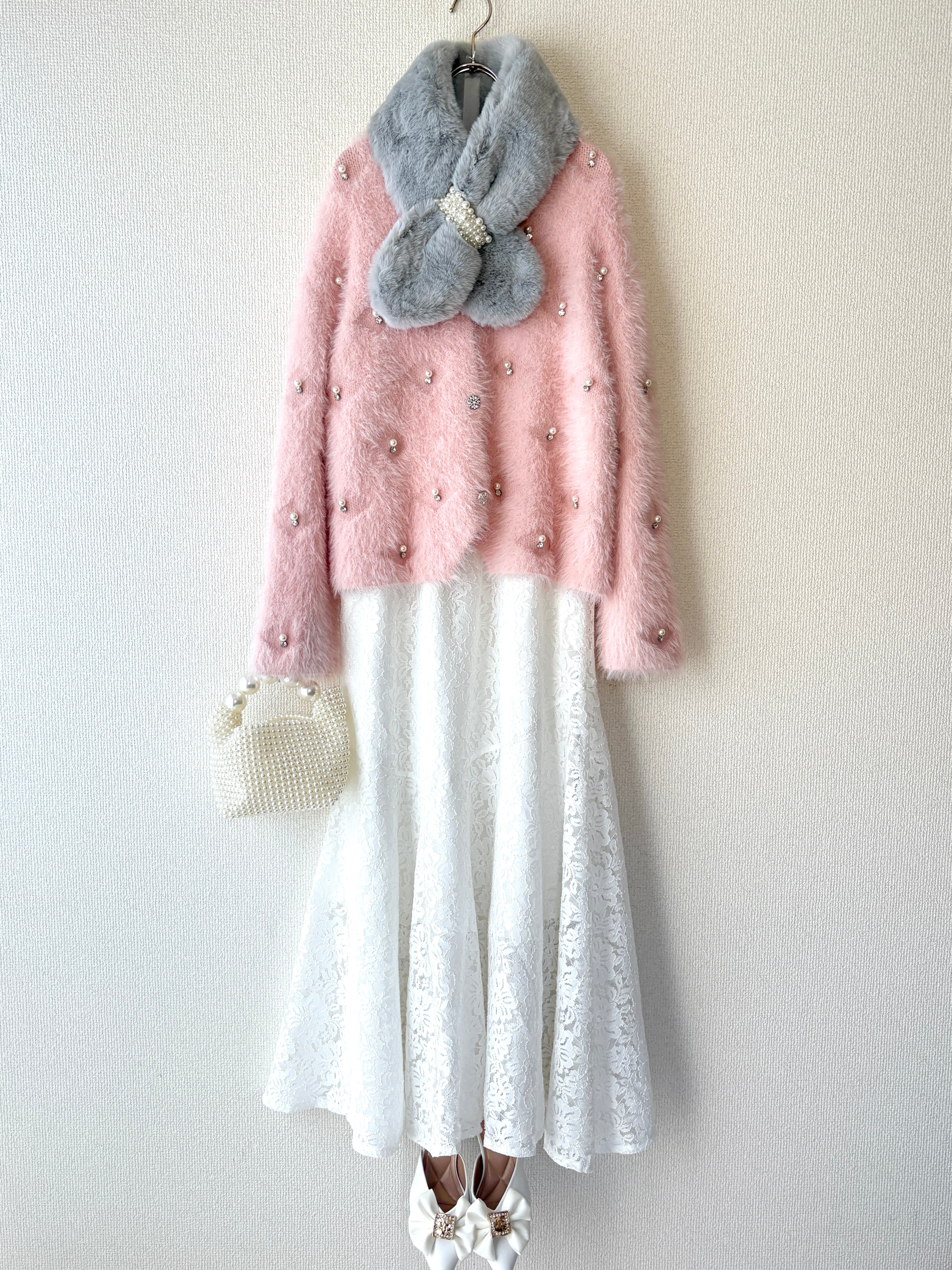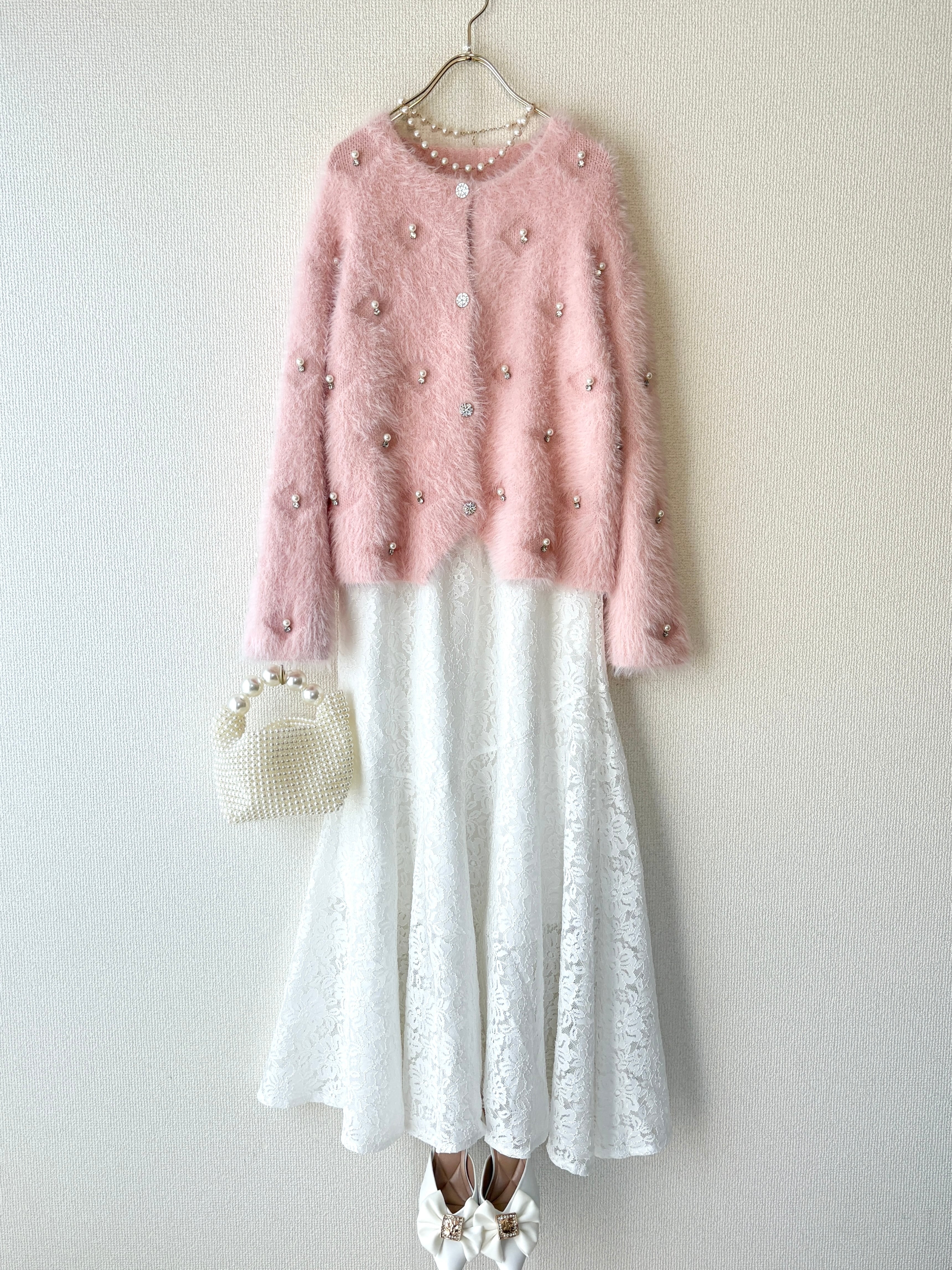 パールデザインが程よい華やかさをプラスしてくれるので、羽織るだけでコーデが一気に格上げされます。