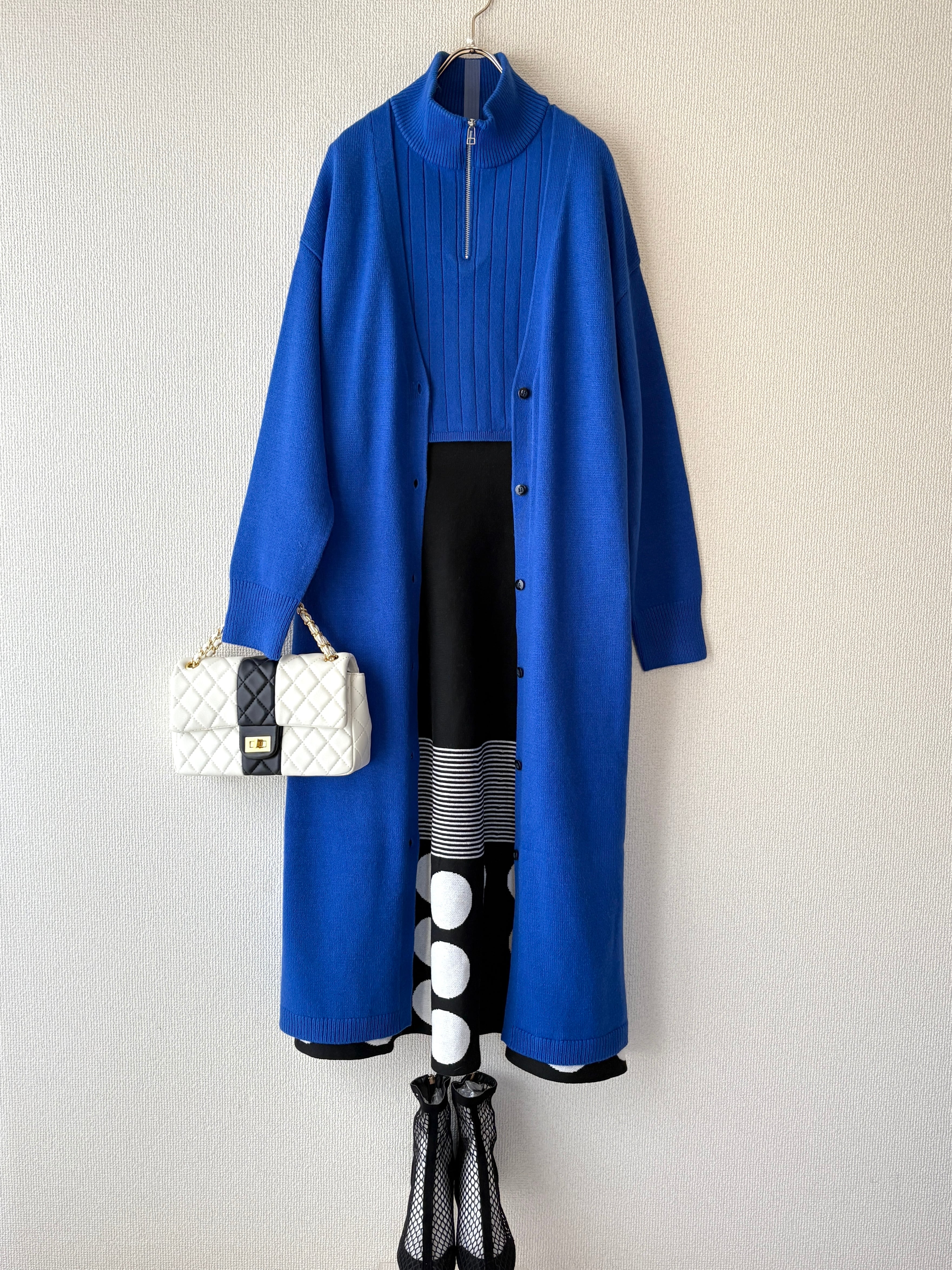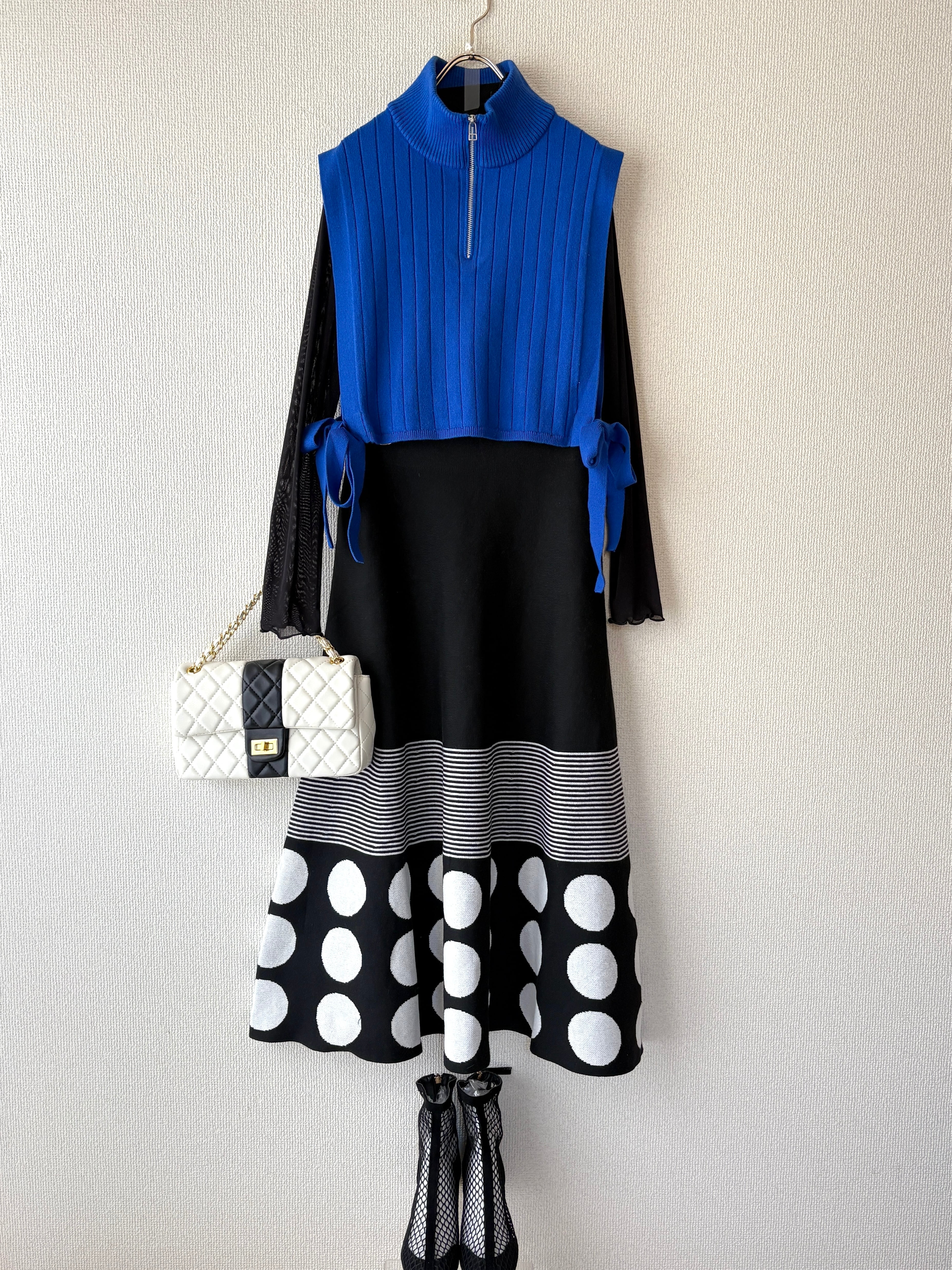 裾のドット柄が個性的で、主役となるスカートです。