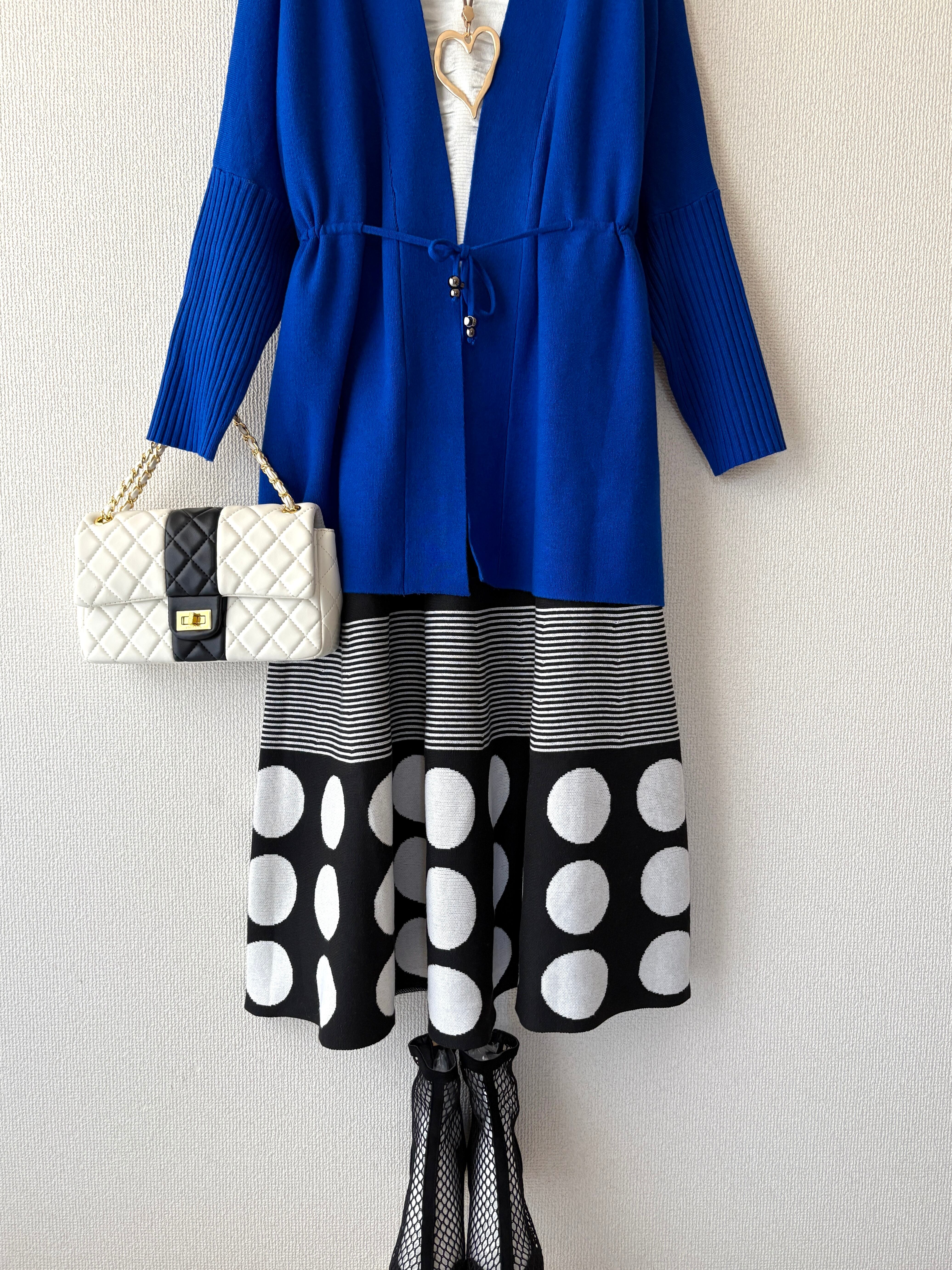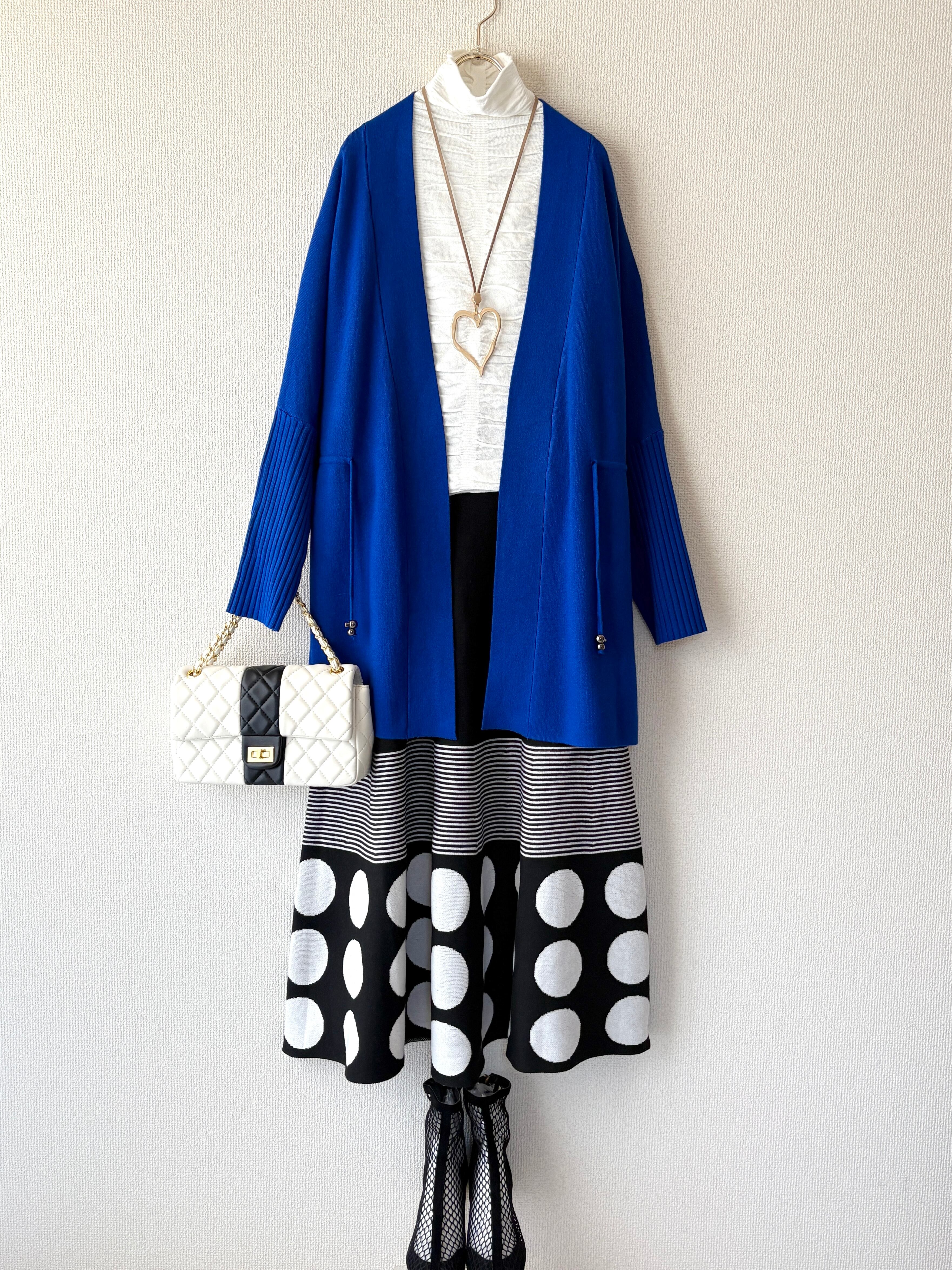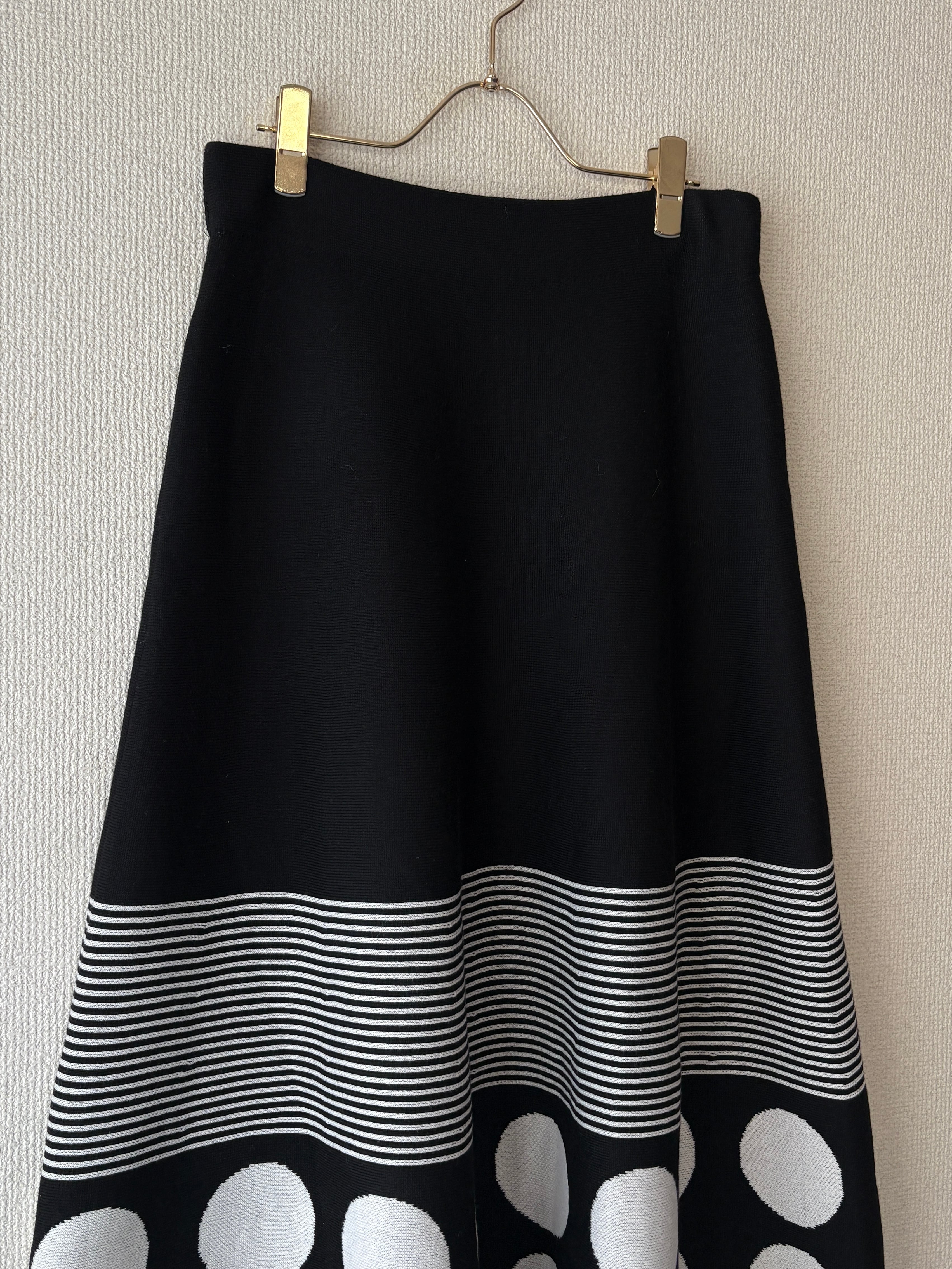 裾のドット柄が個性的で、主役となるスカートです。