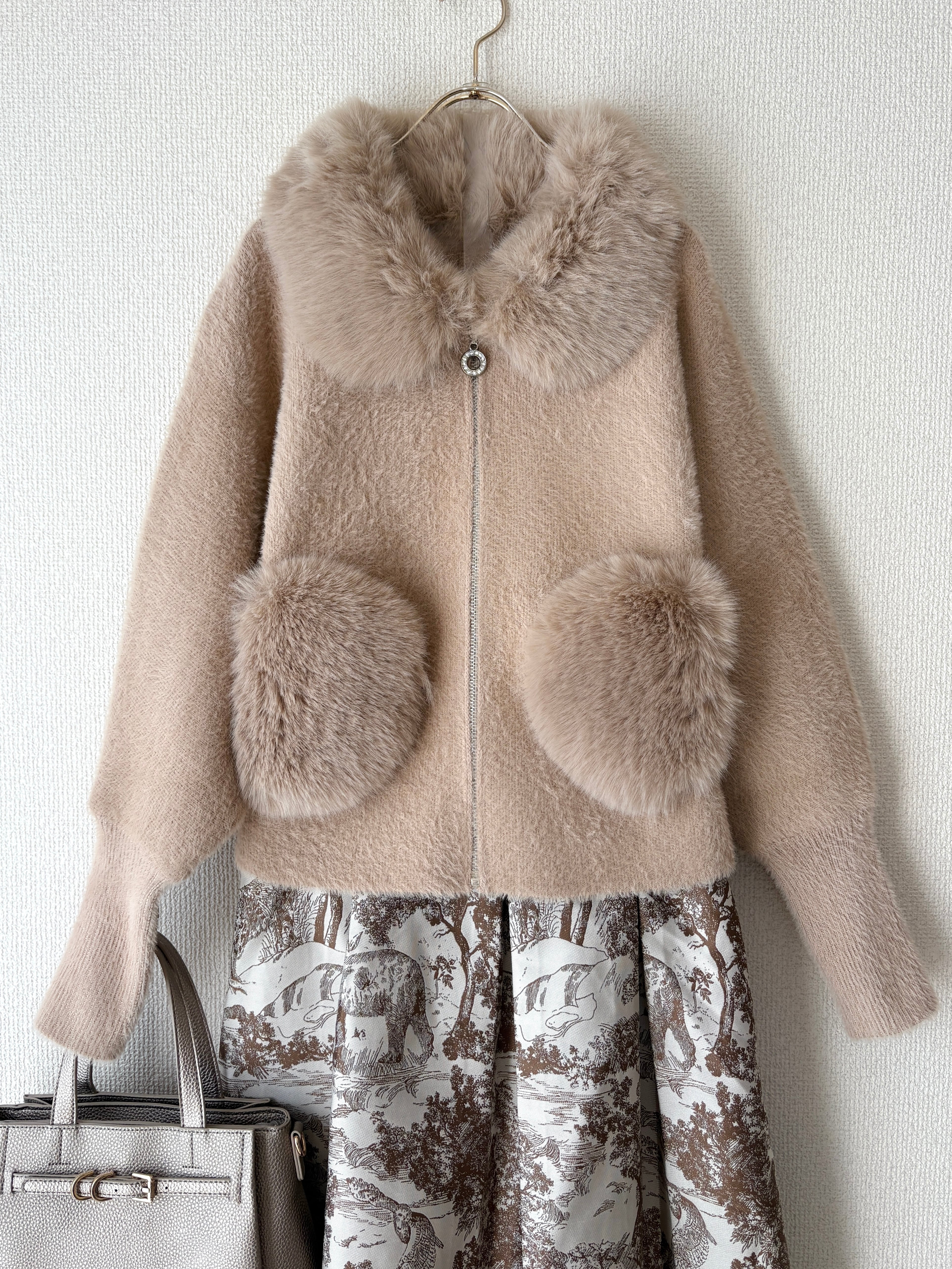 ふんわりファーの襟が顔まわりを華やかに見せてくれる、大人フェミニンジャケットです。