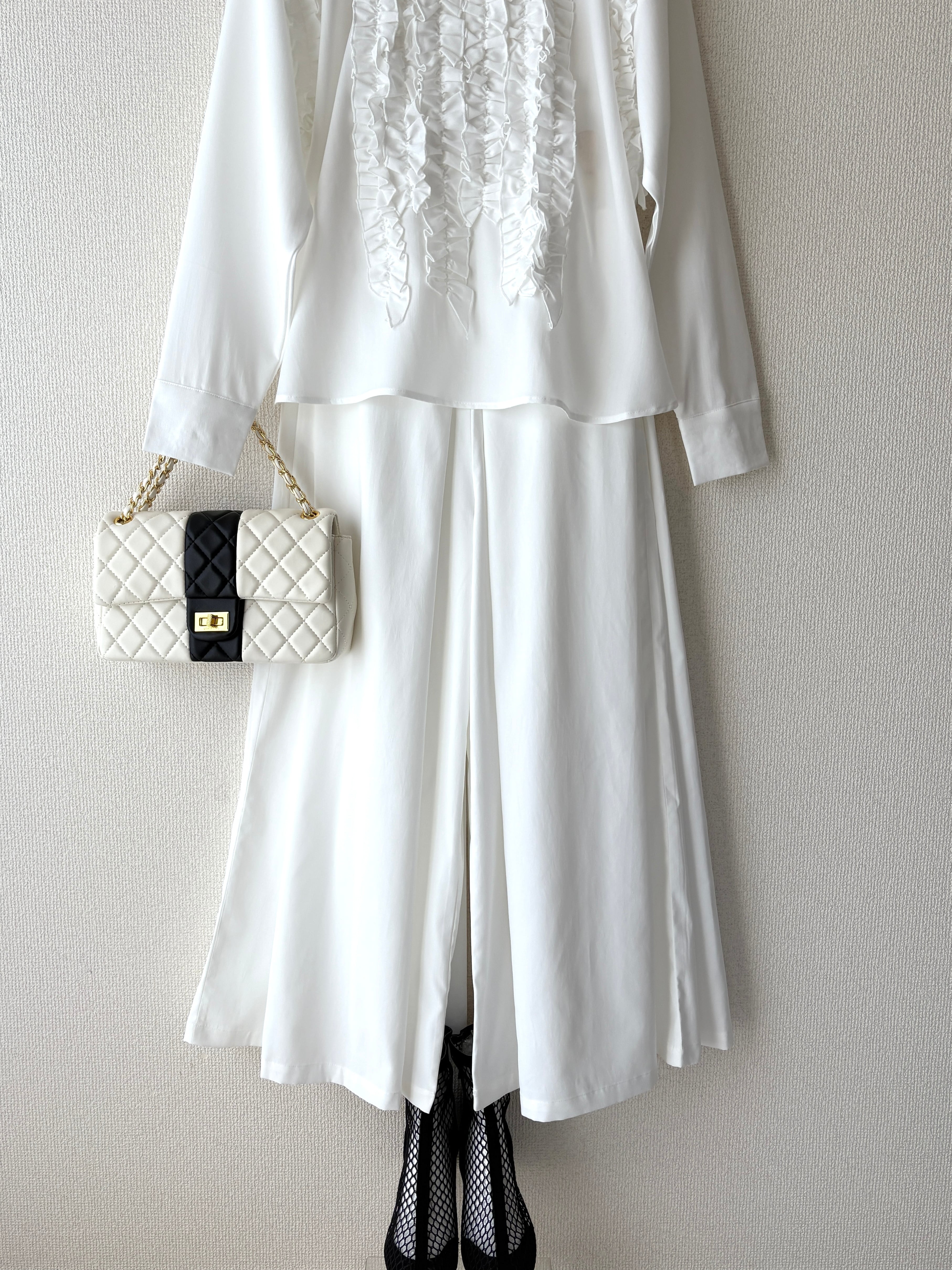 ブラウスとセットアップで着ると簡単にお洒落なコーディネートに◎
