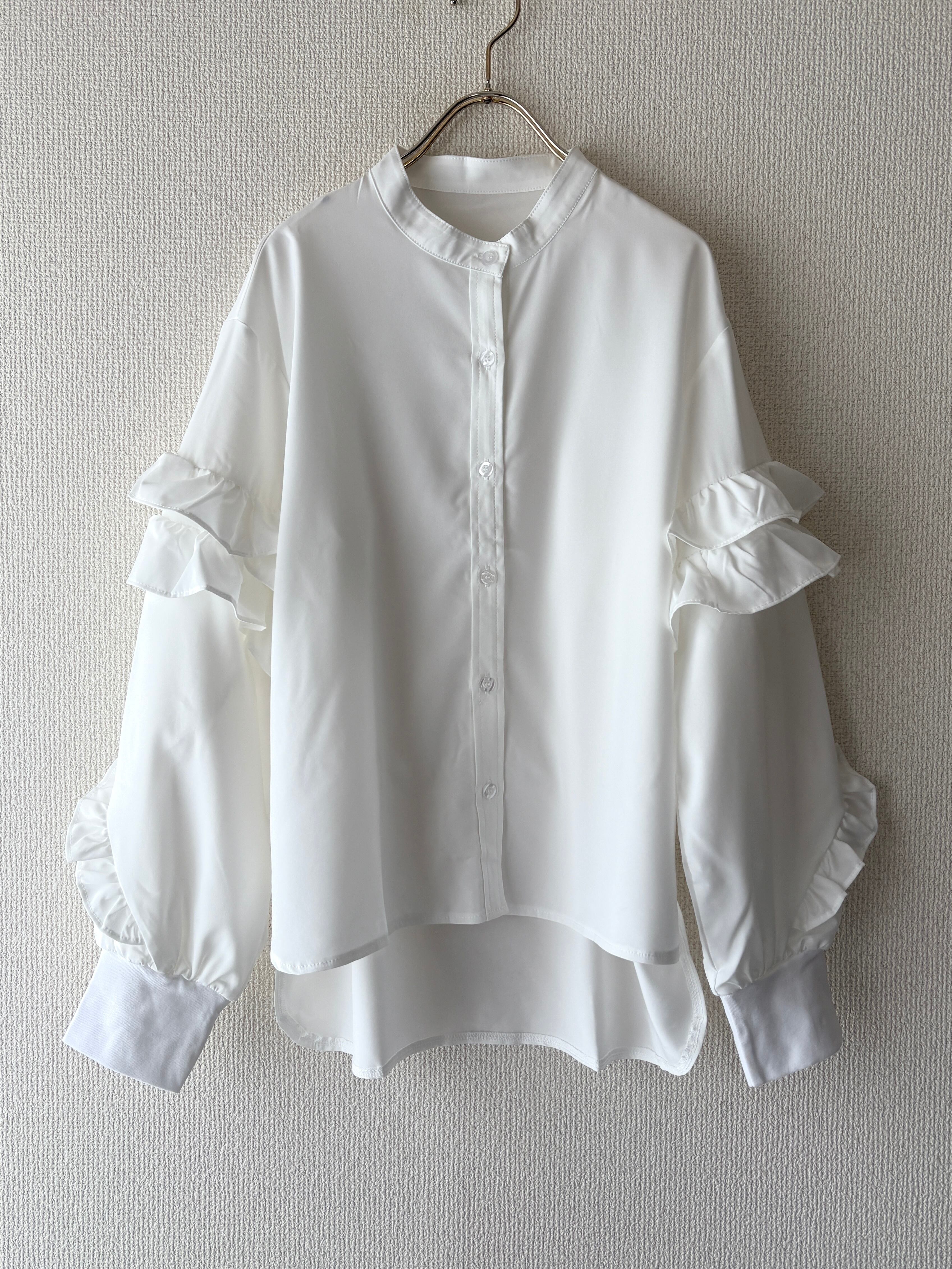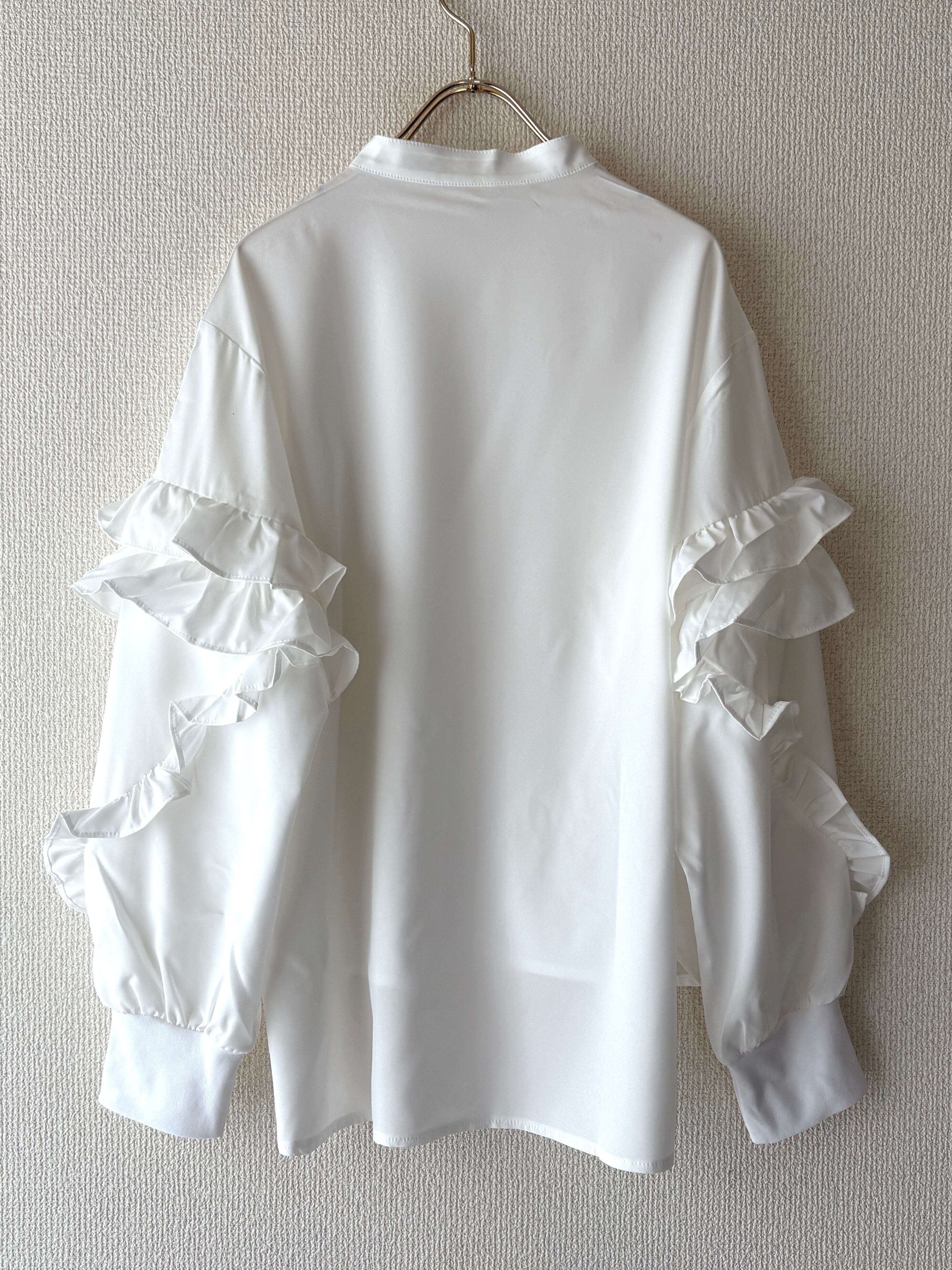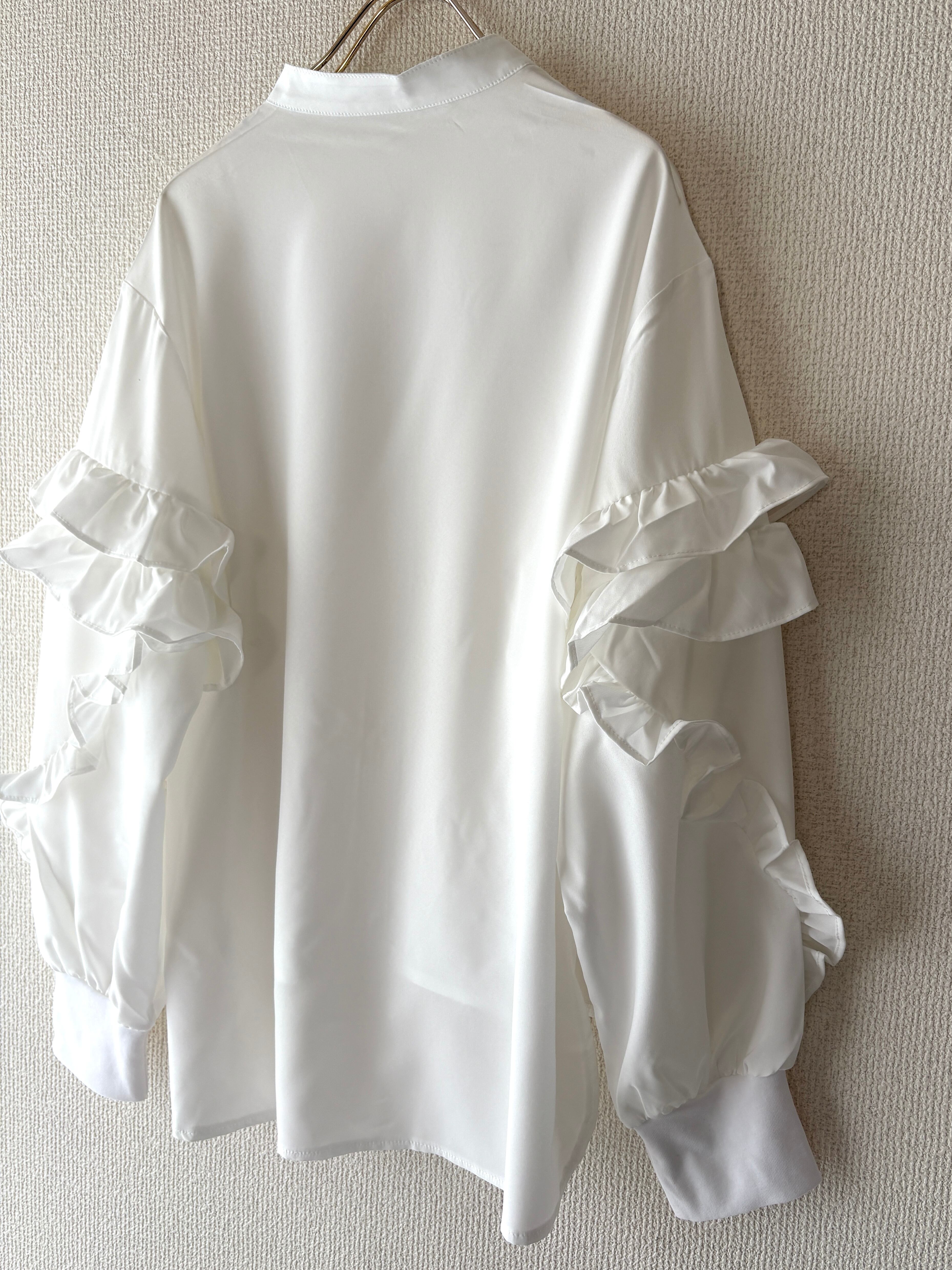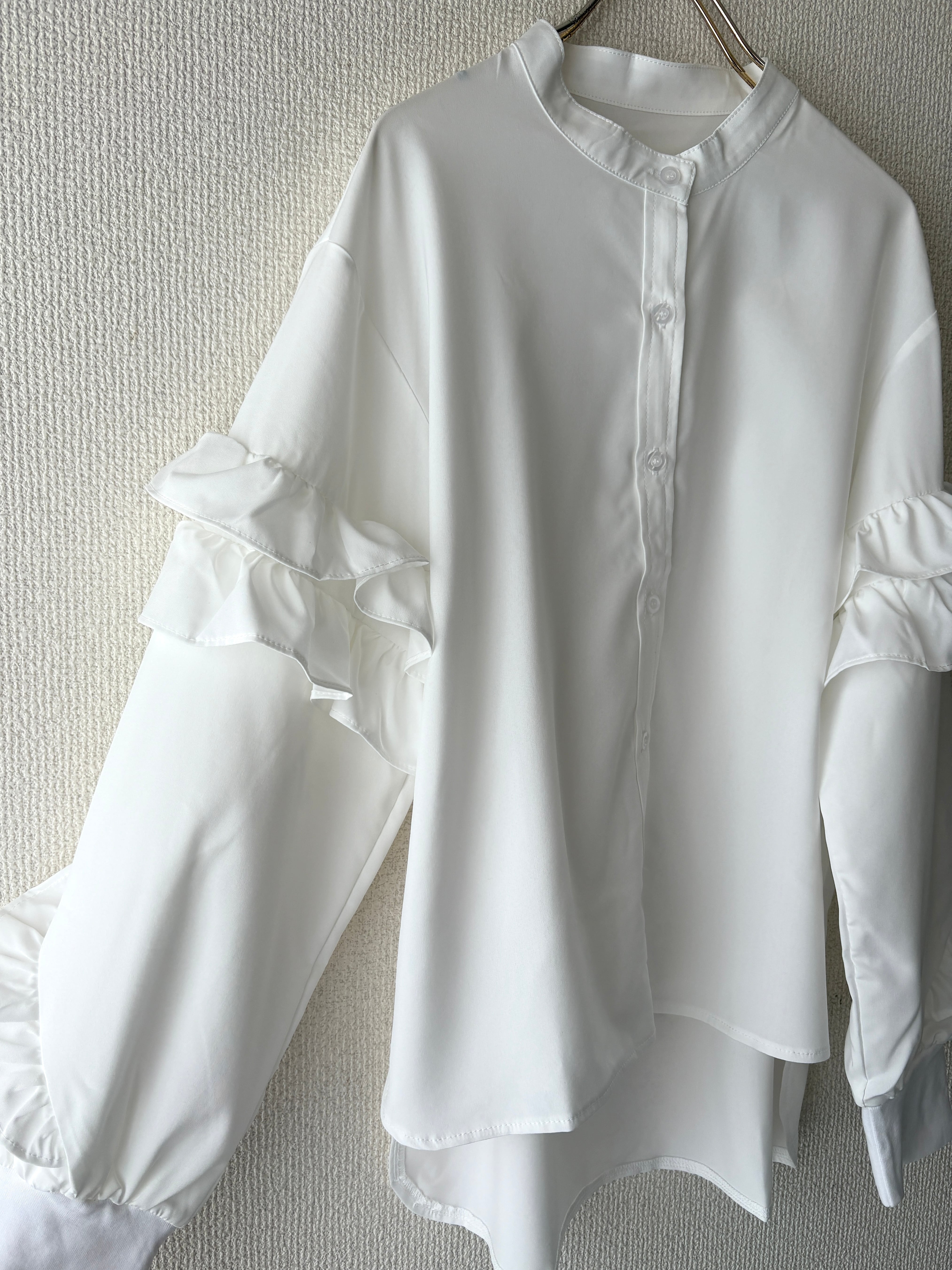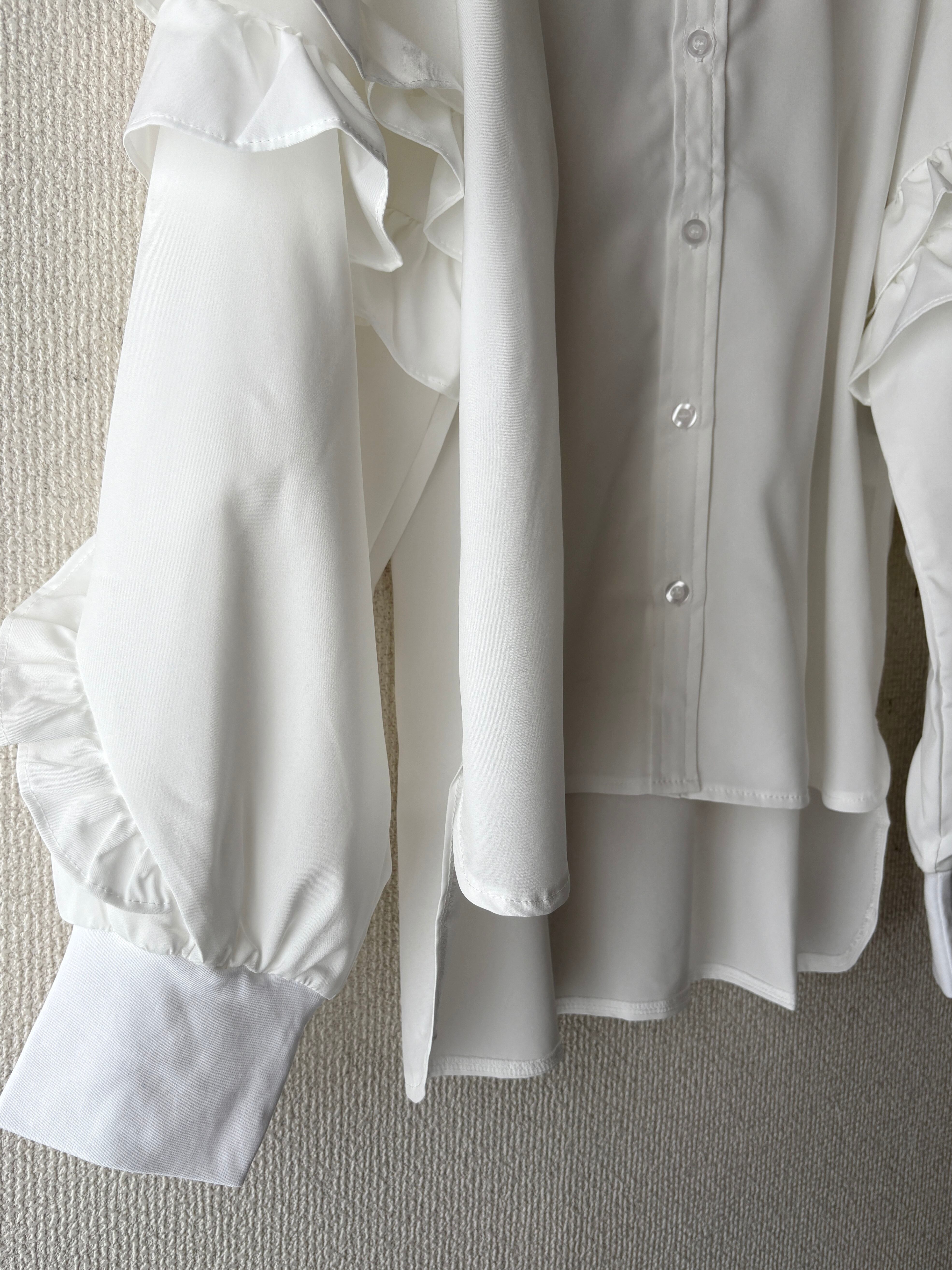 袖にあしらったフリルデザインが女性らしさをプラスしてくれます。