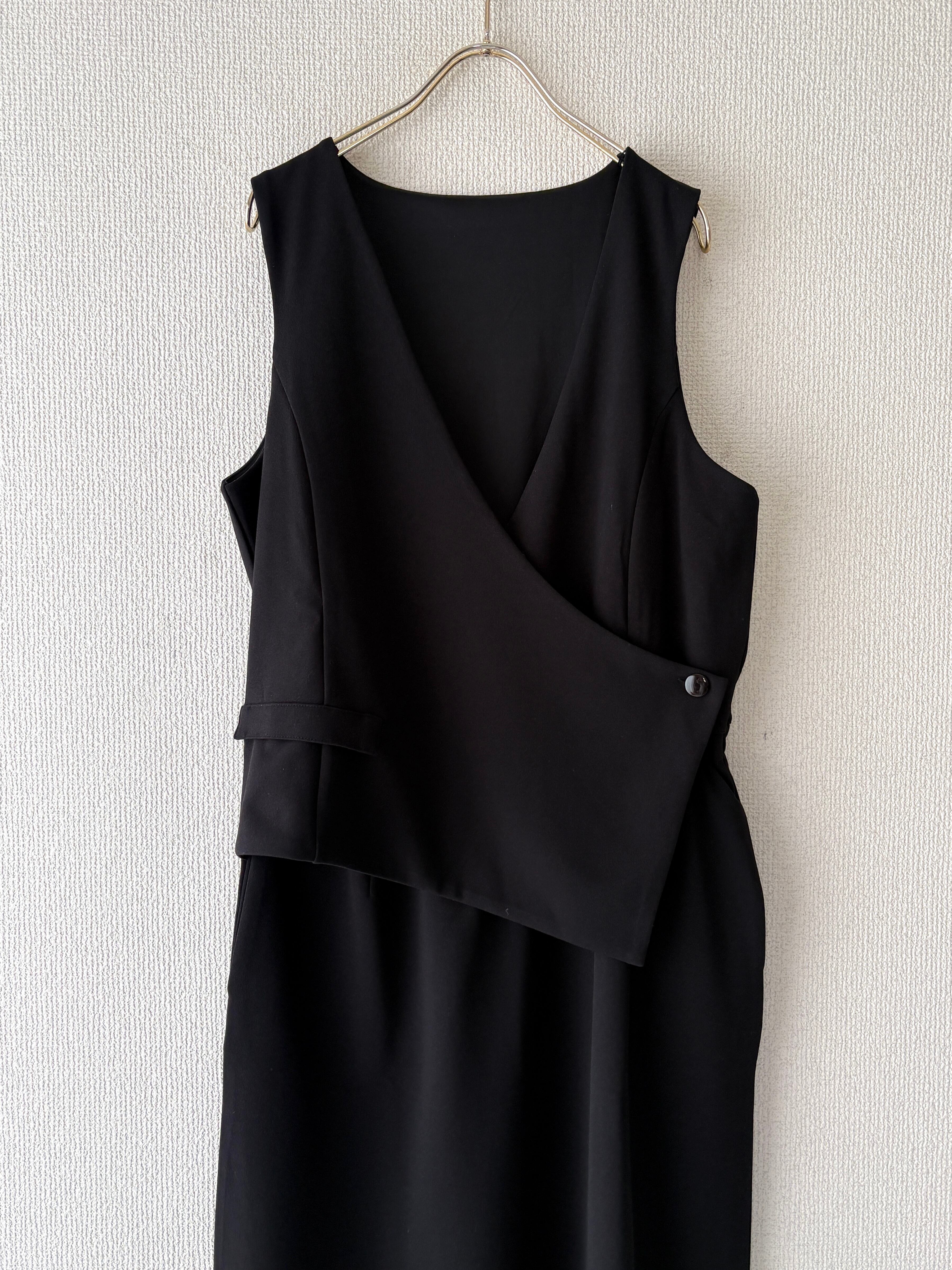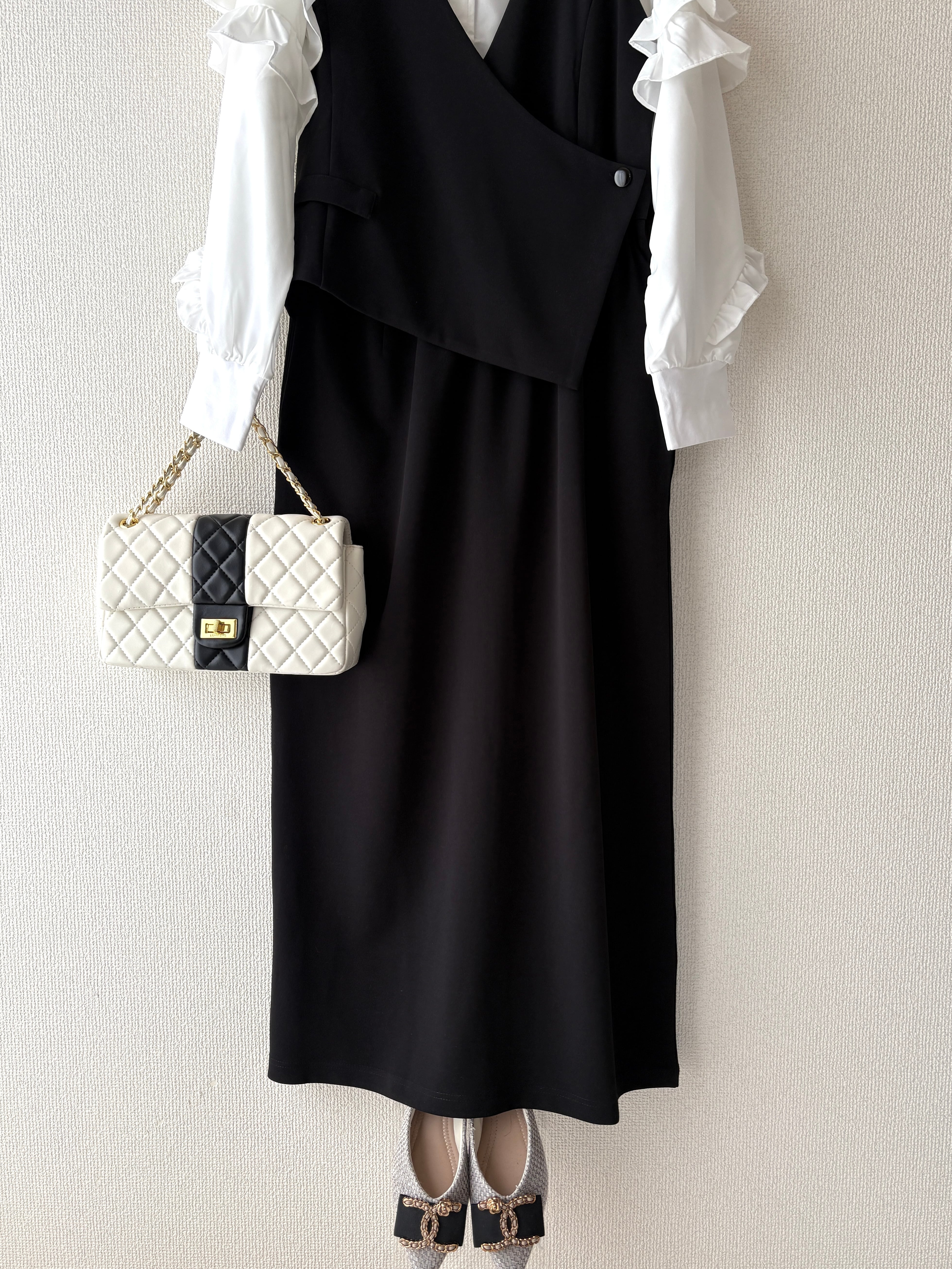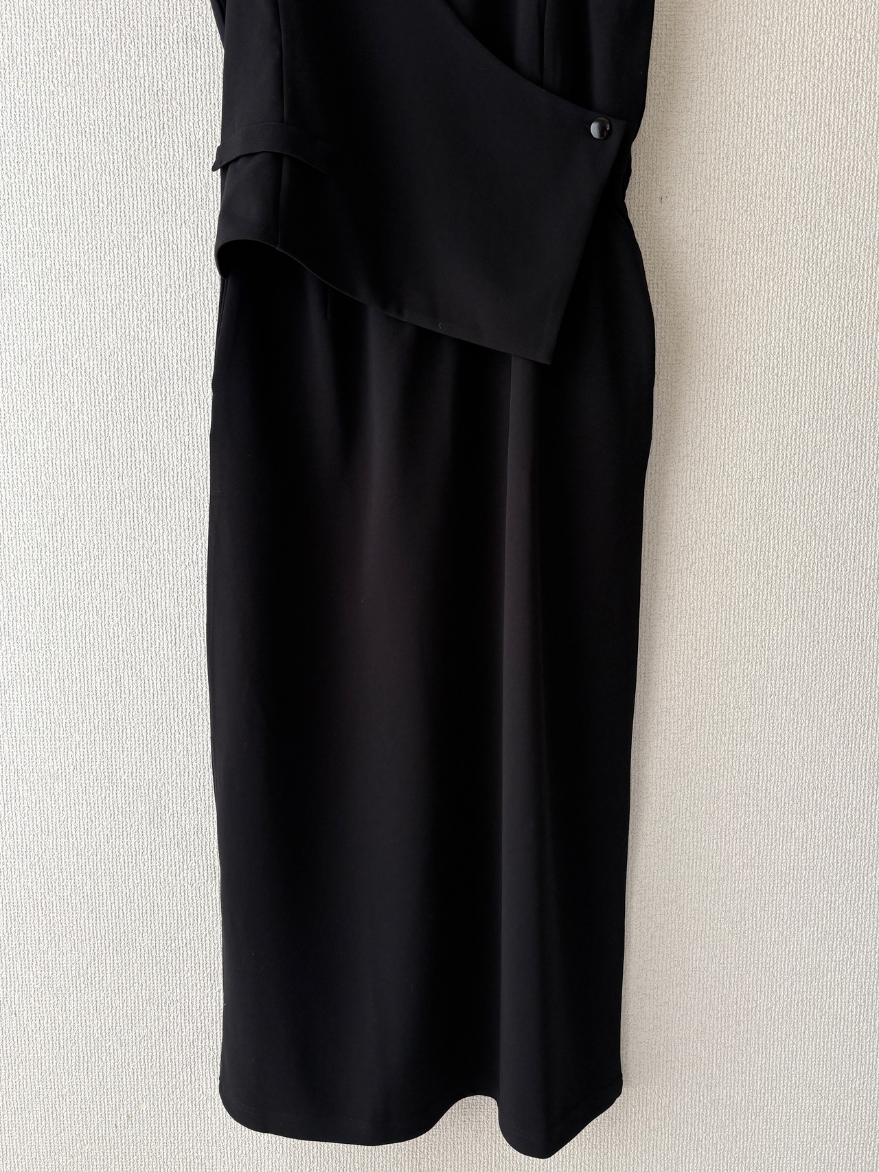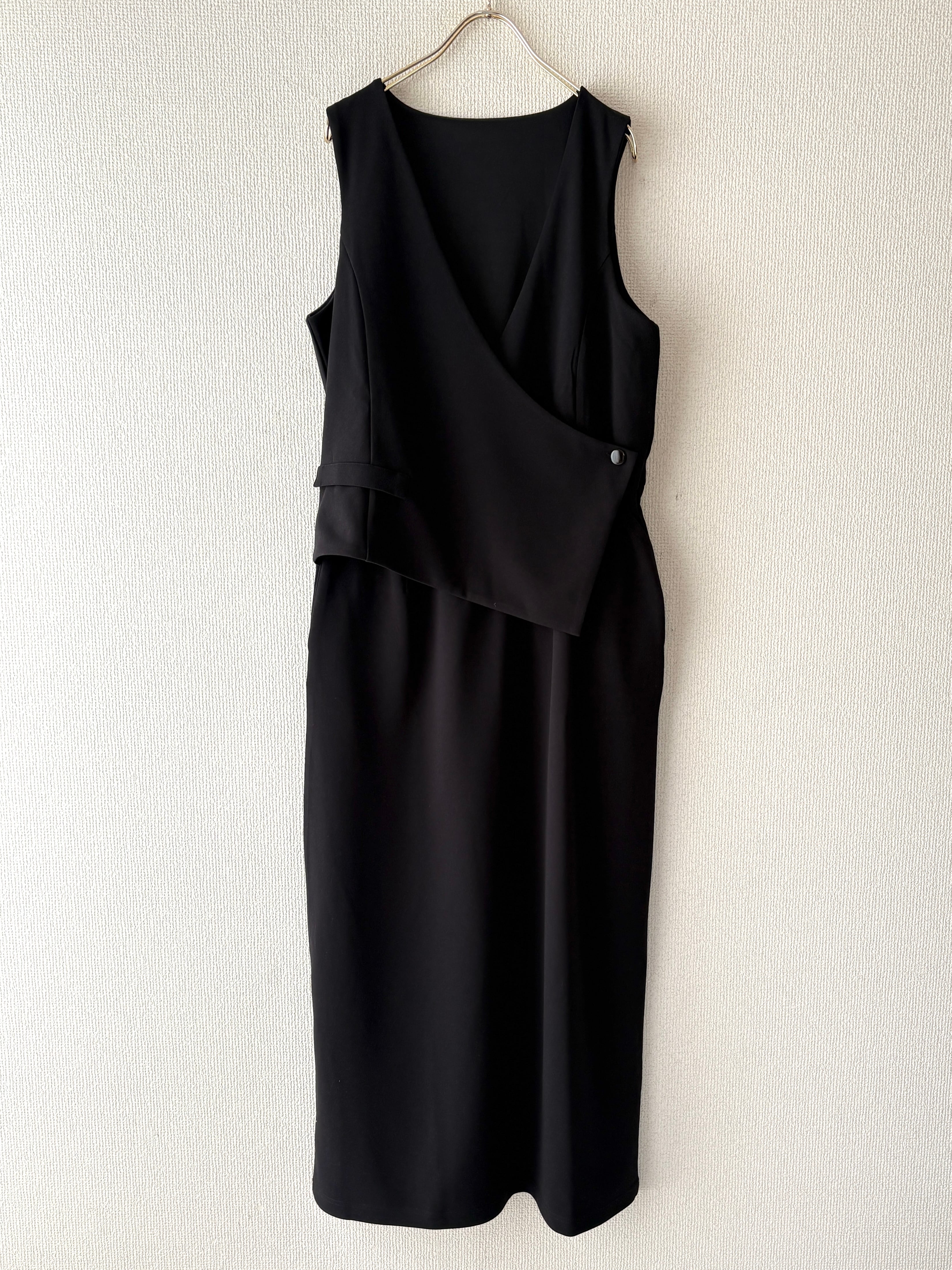カシュクール風のデザインが縦ラインを強調し、すっきりとした印象に。