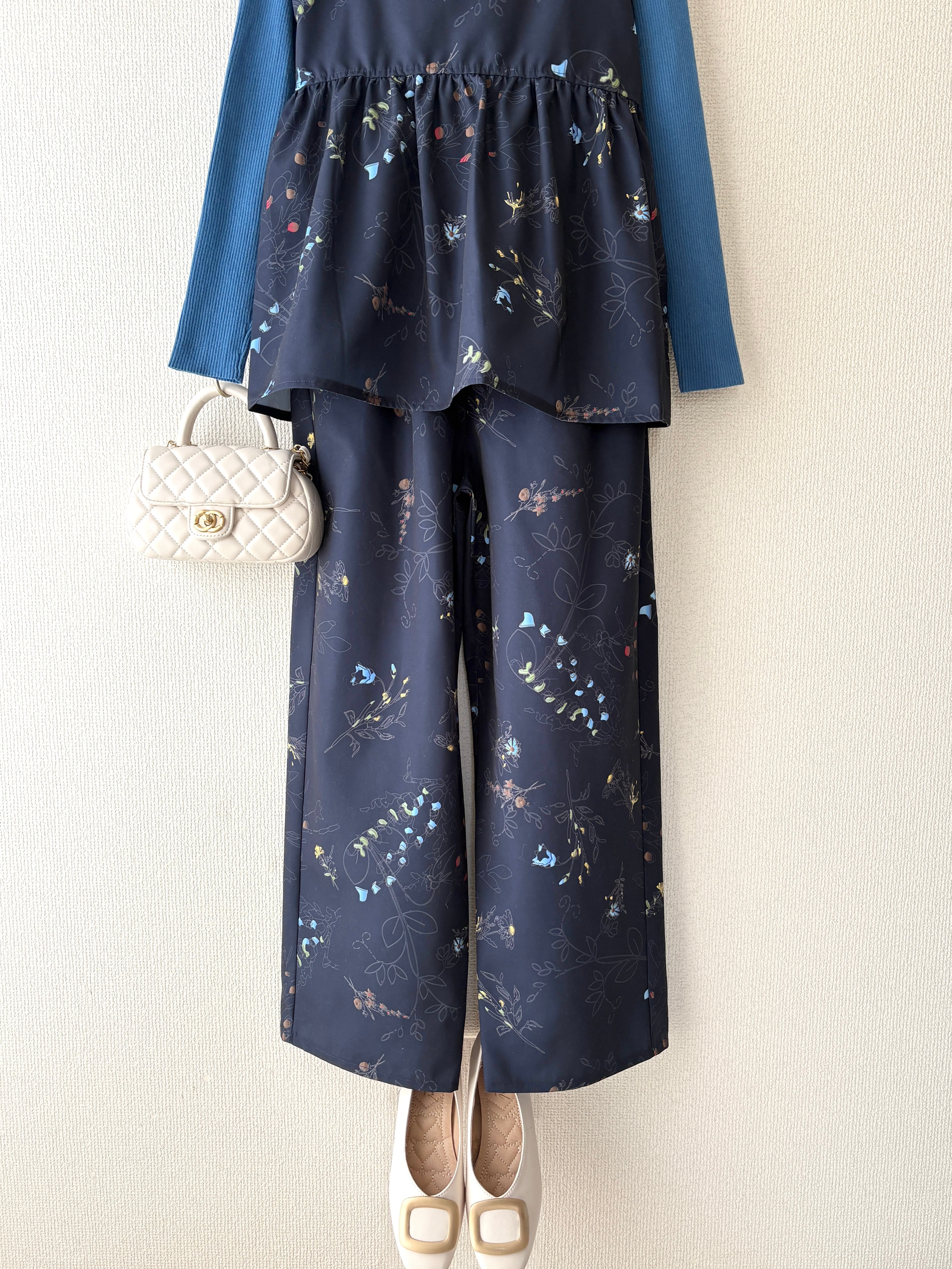 キャミソールトップス×ワイドパンツのセットアップです。