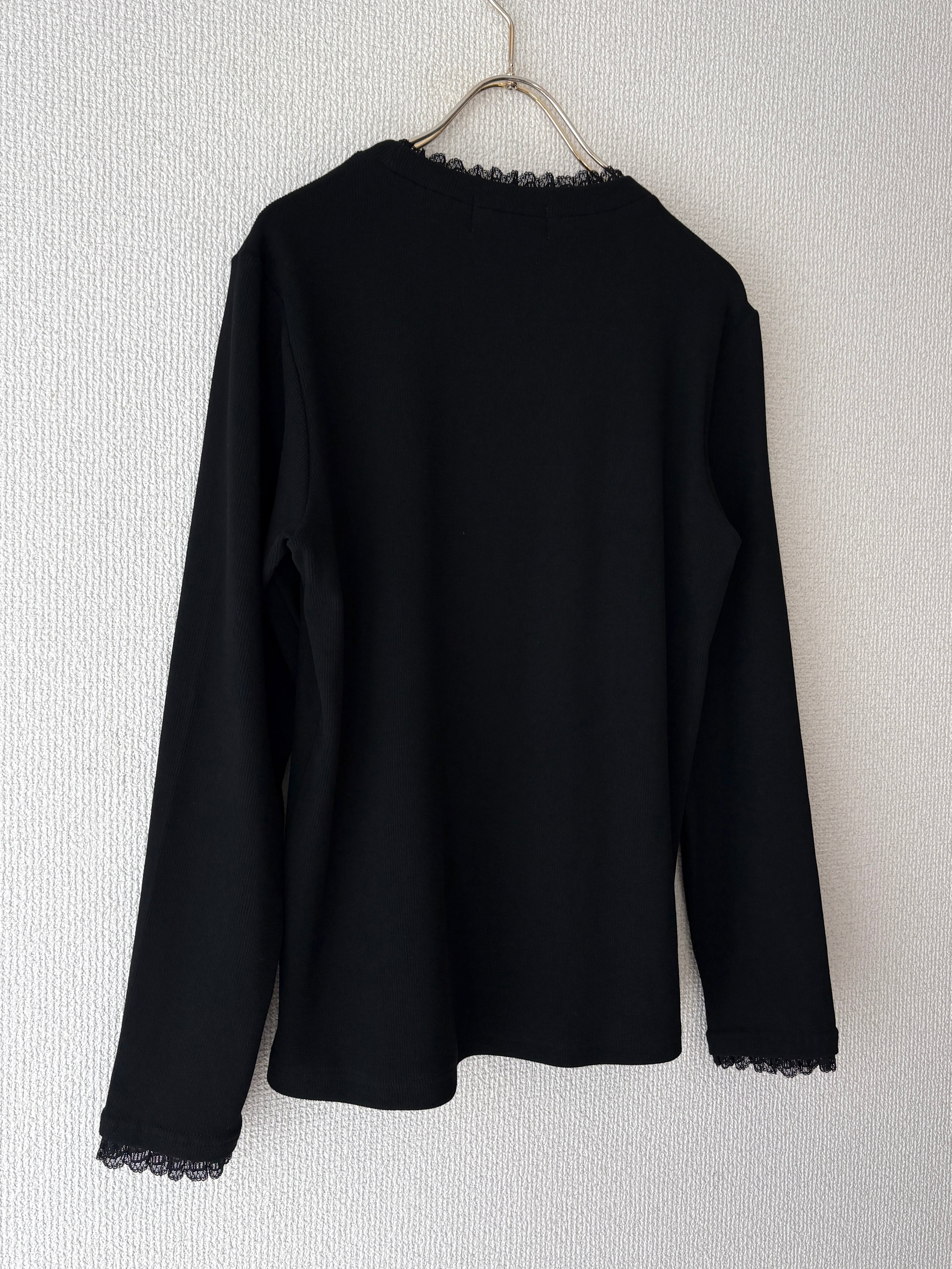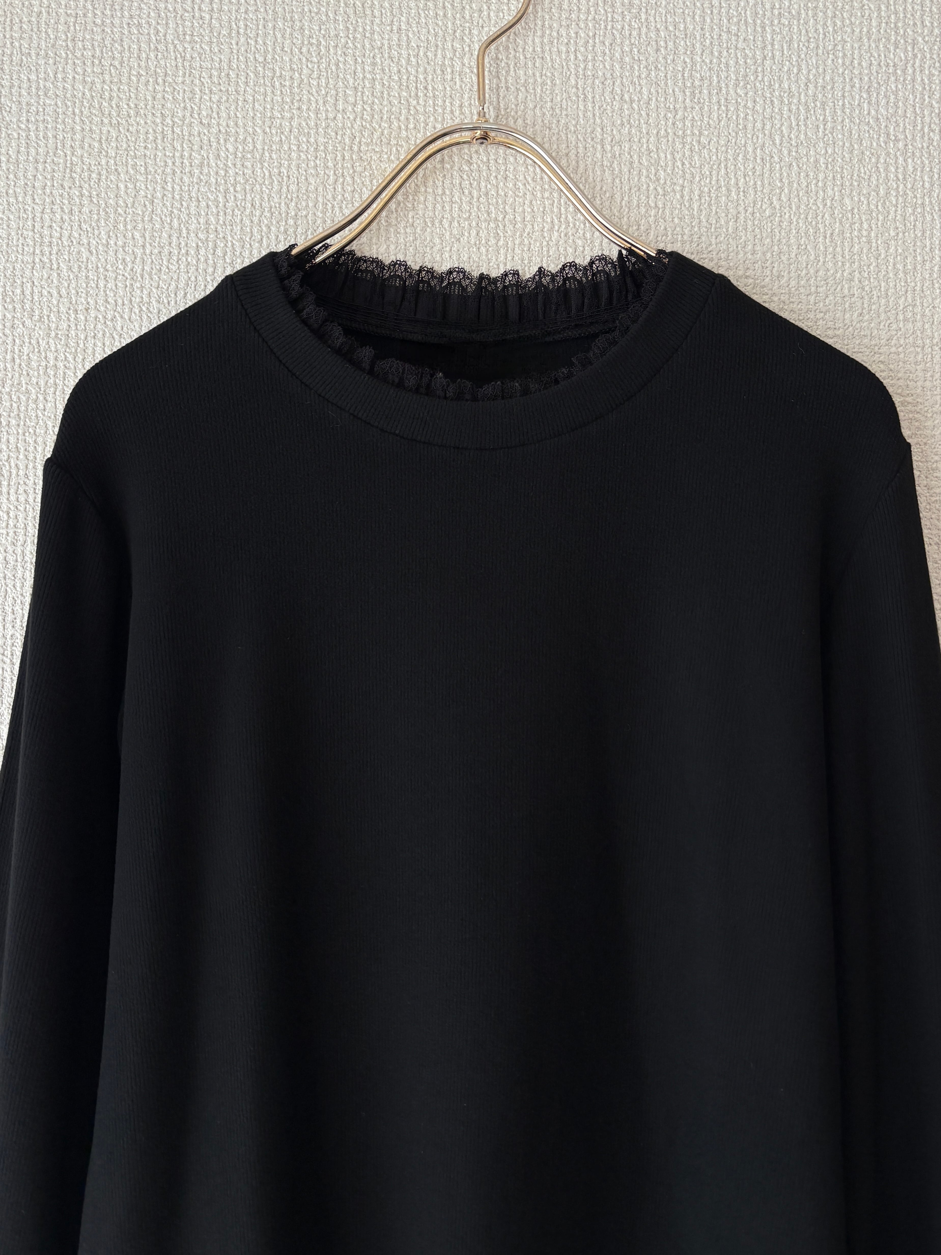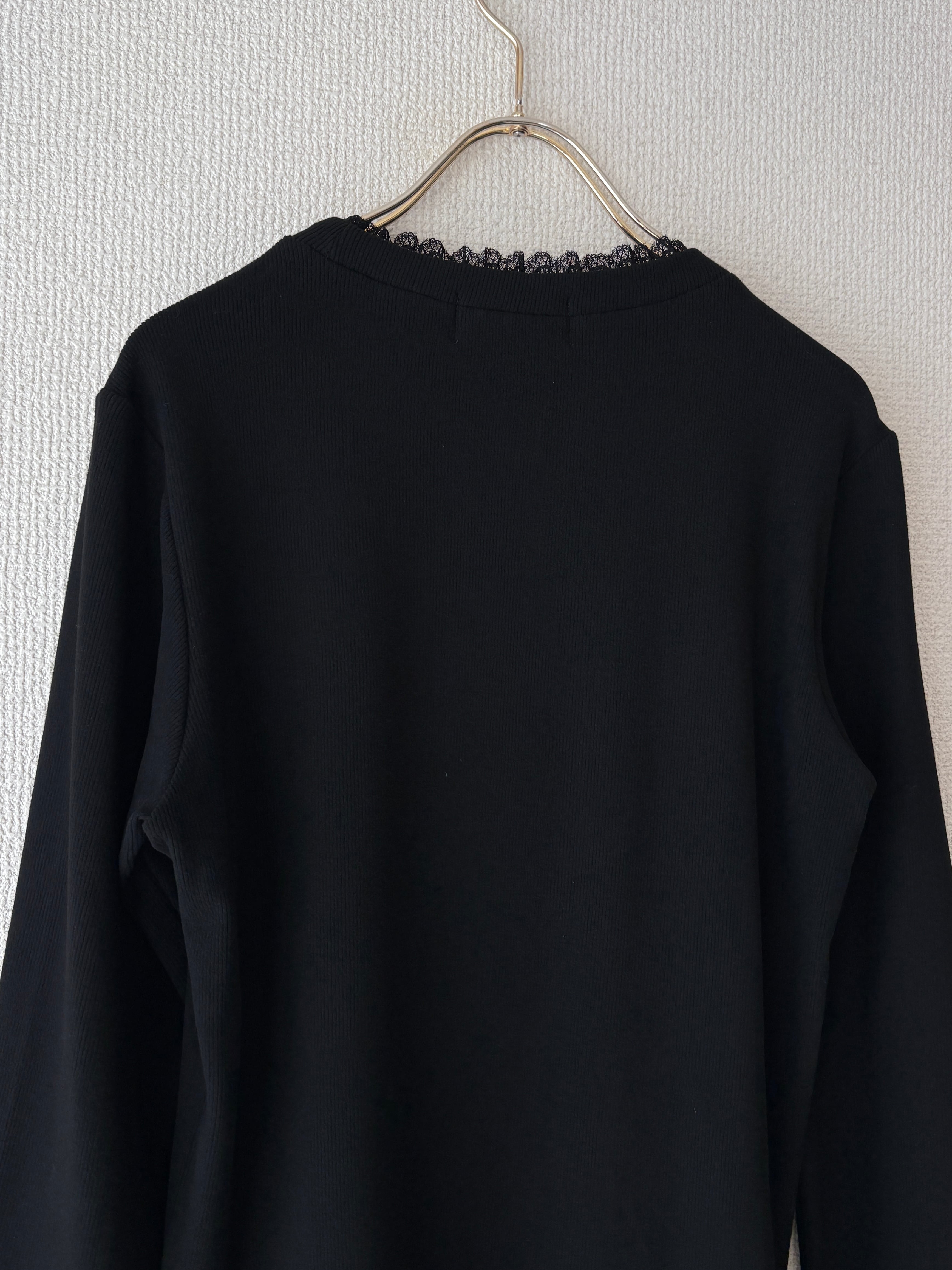 首元と、袖にレースをあしらっているデザインでシンプルながらも女性らしさを引き立てます。