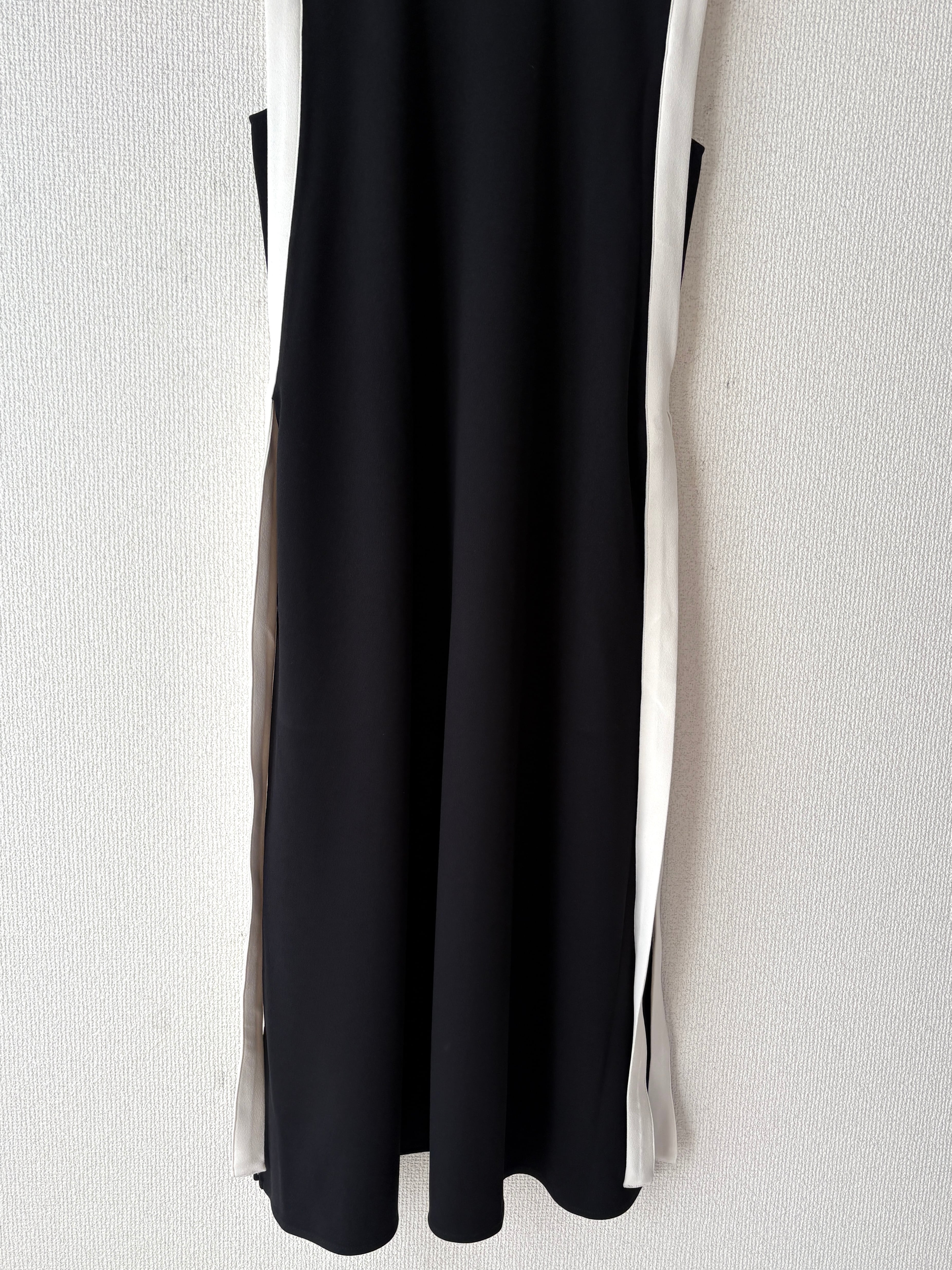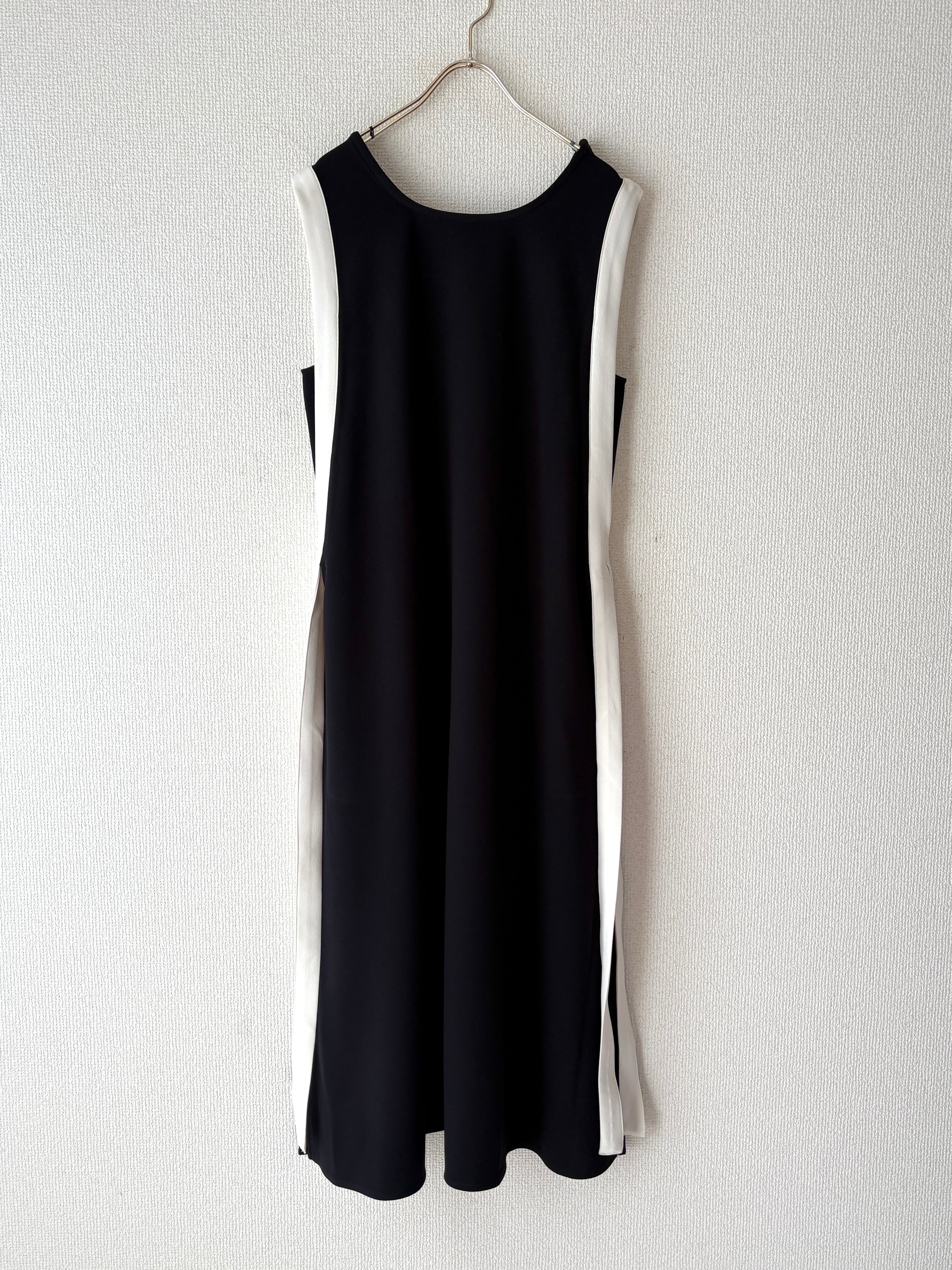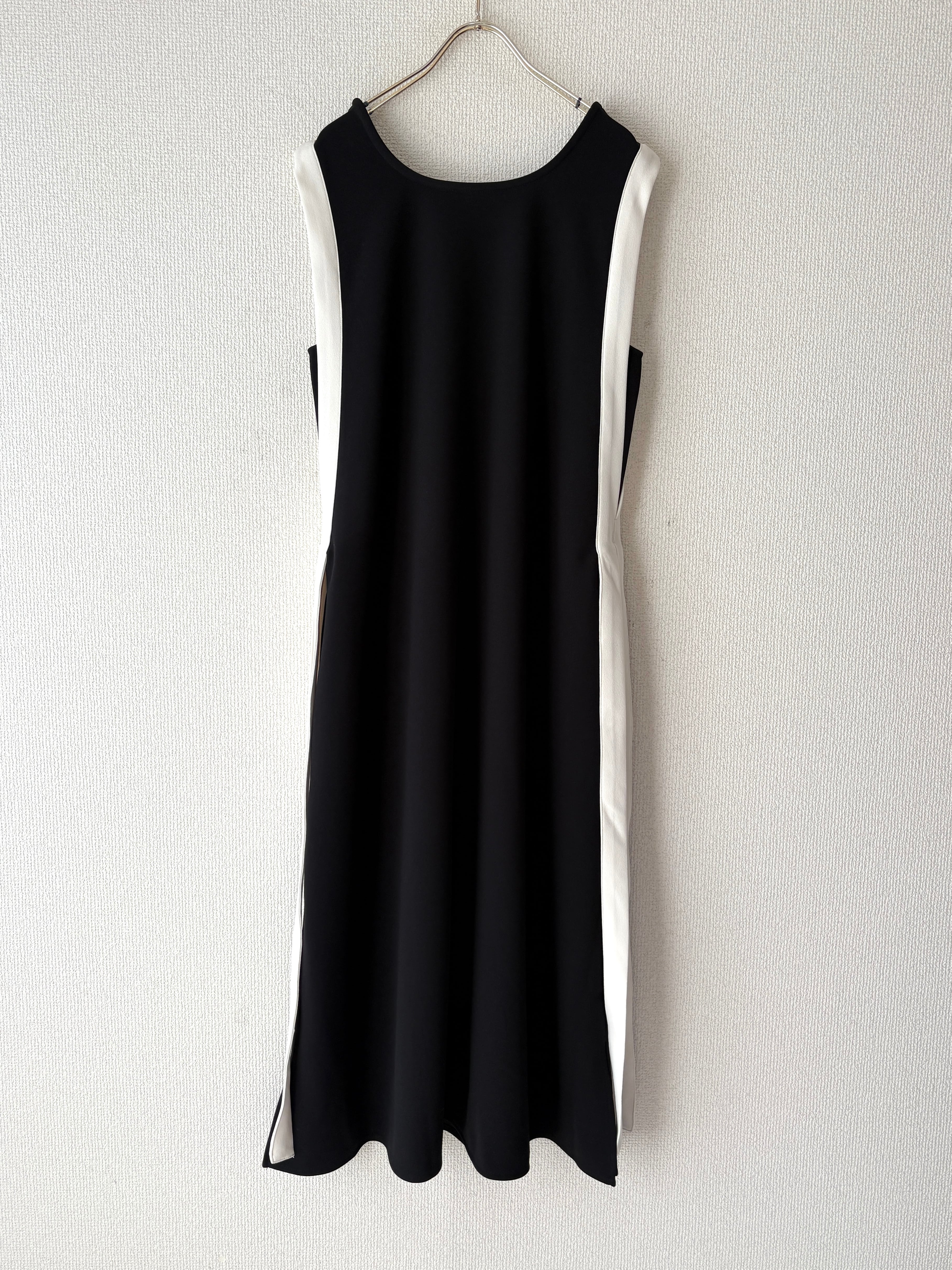 バイカラーラインの縦長効果でスタイルアップが叶うノースリーブワンピースです。