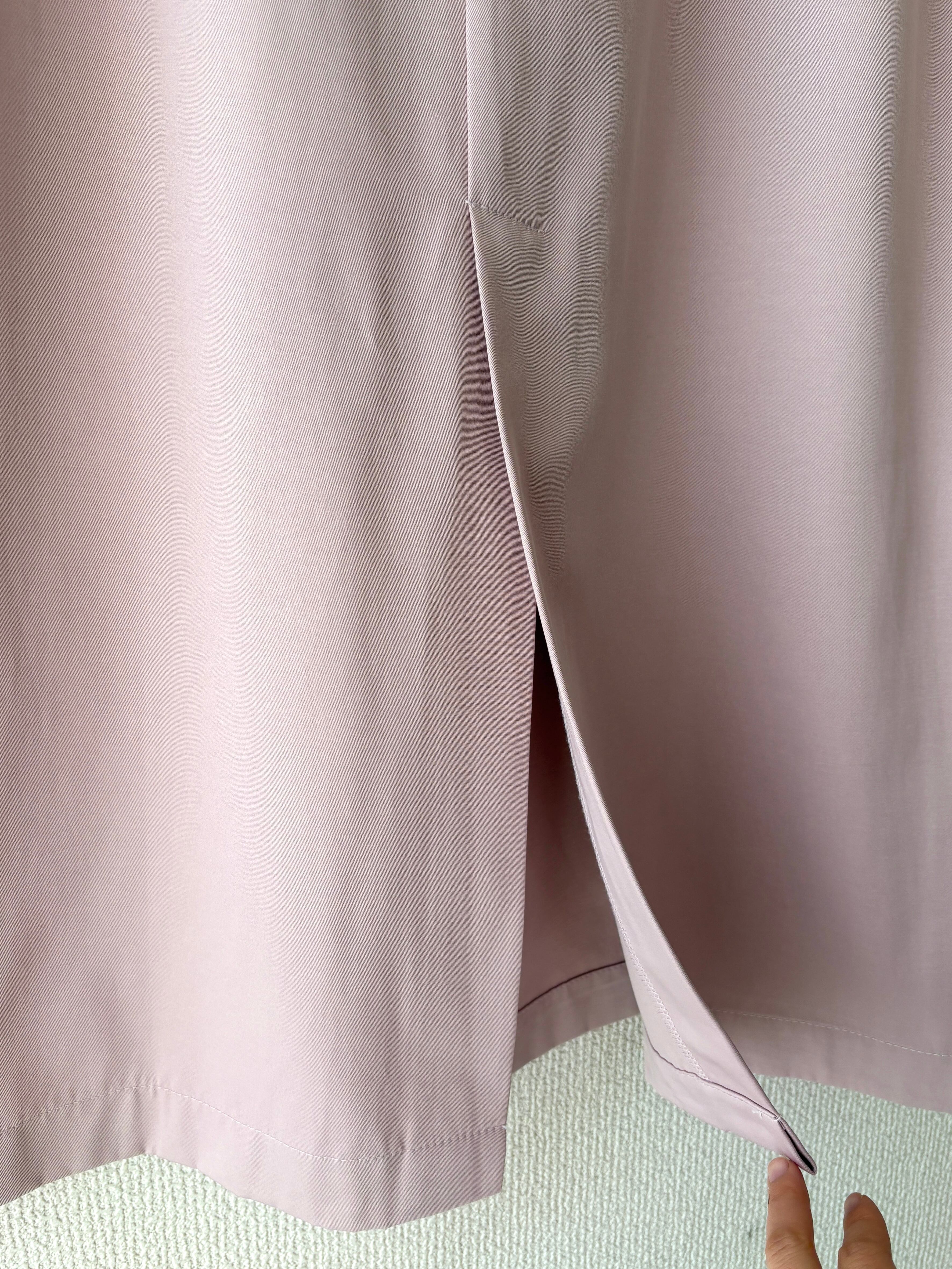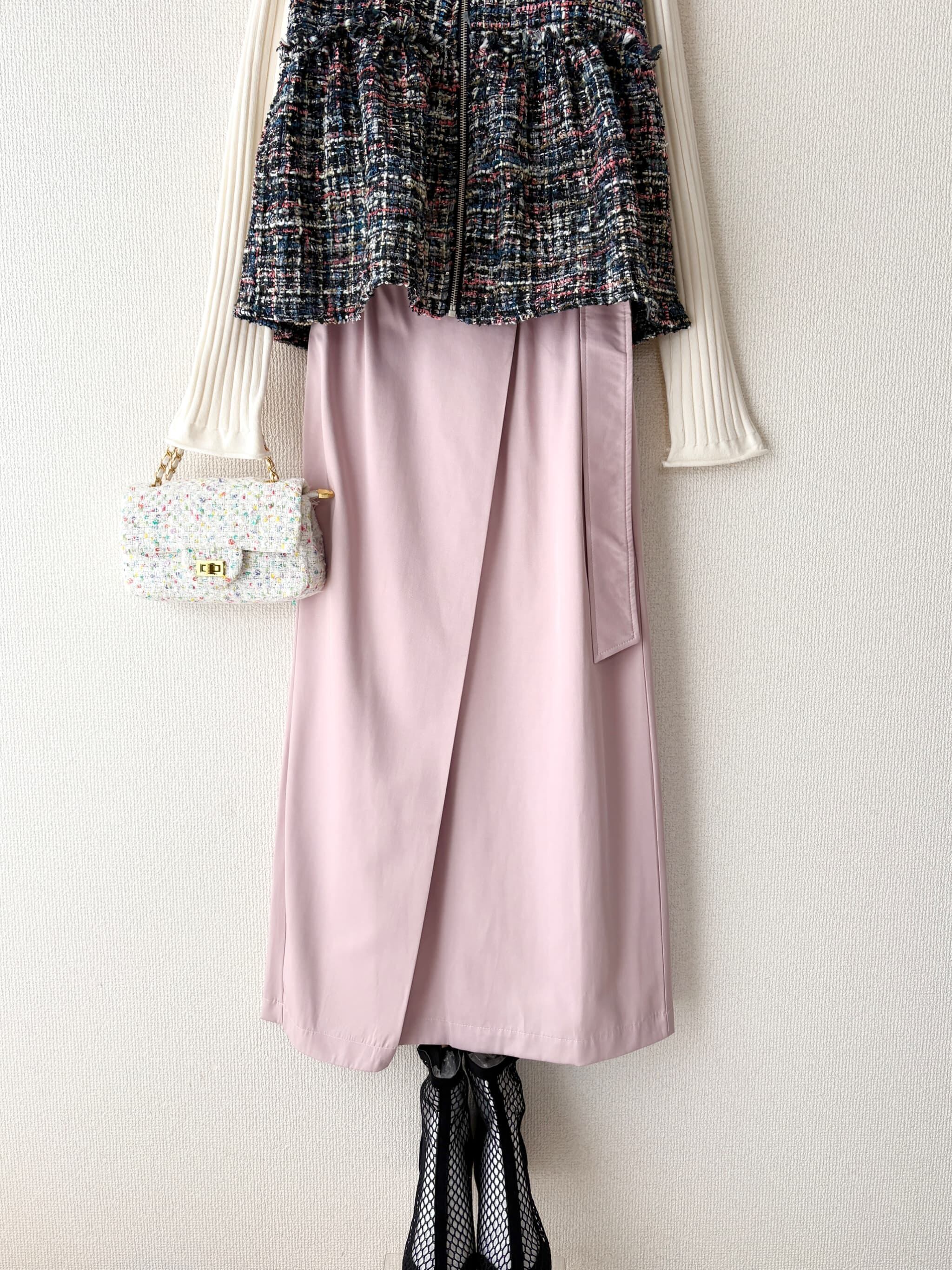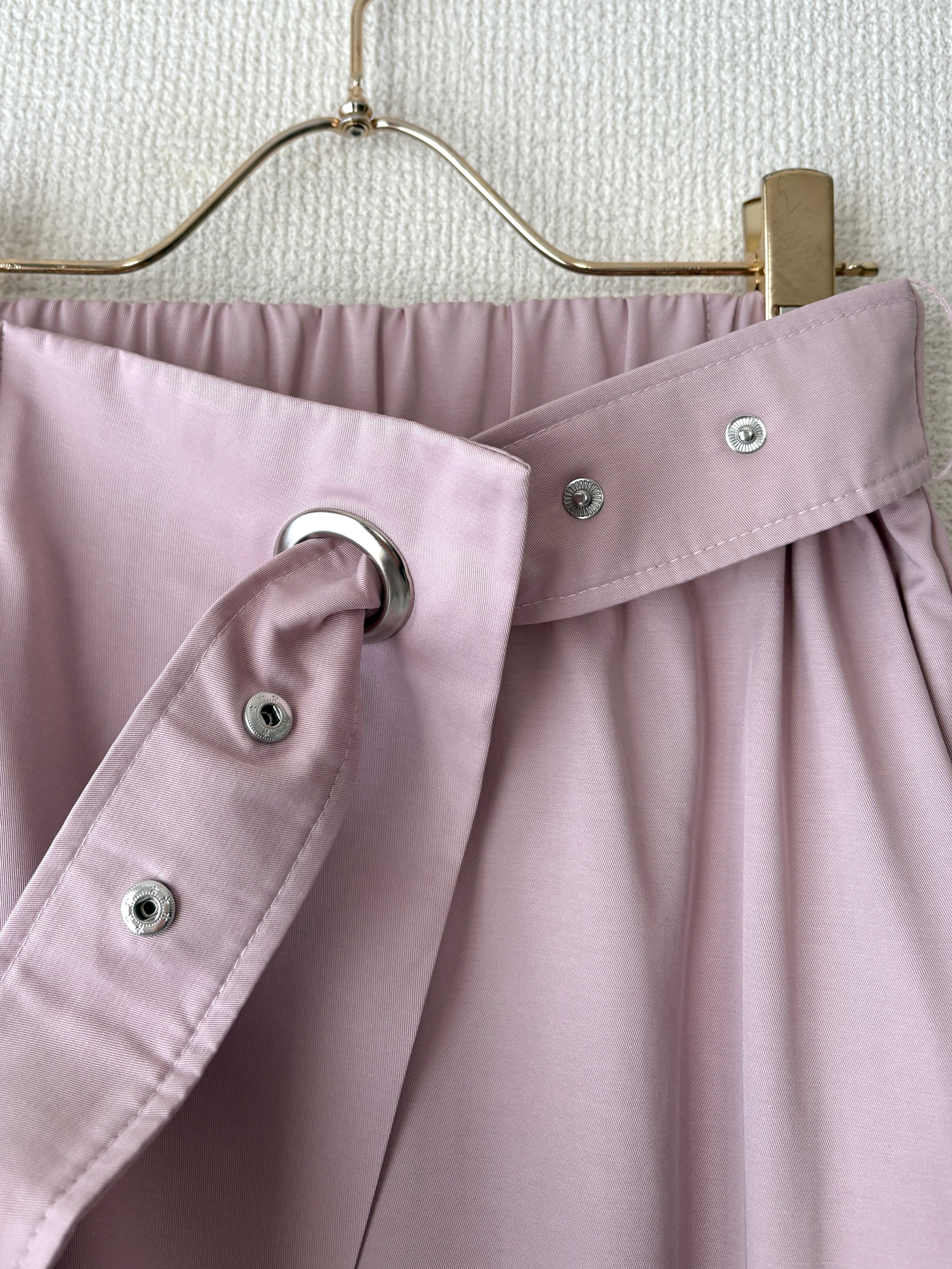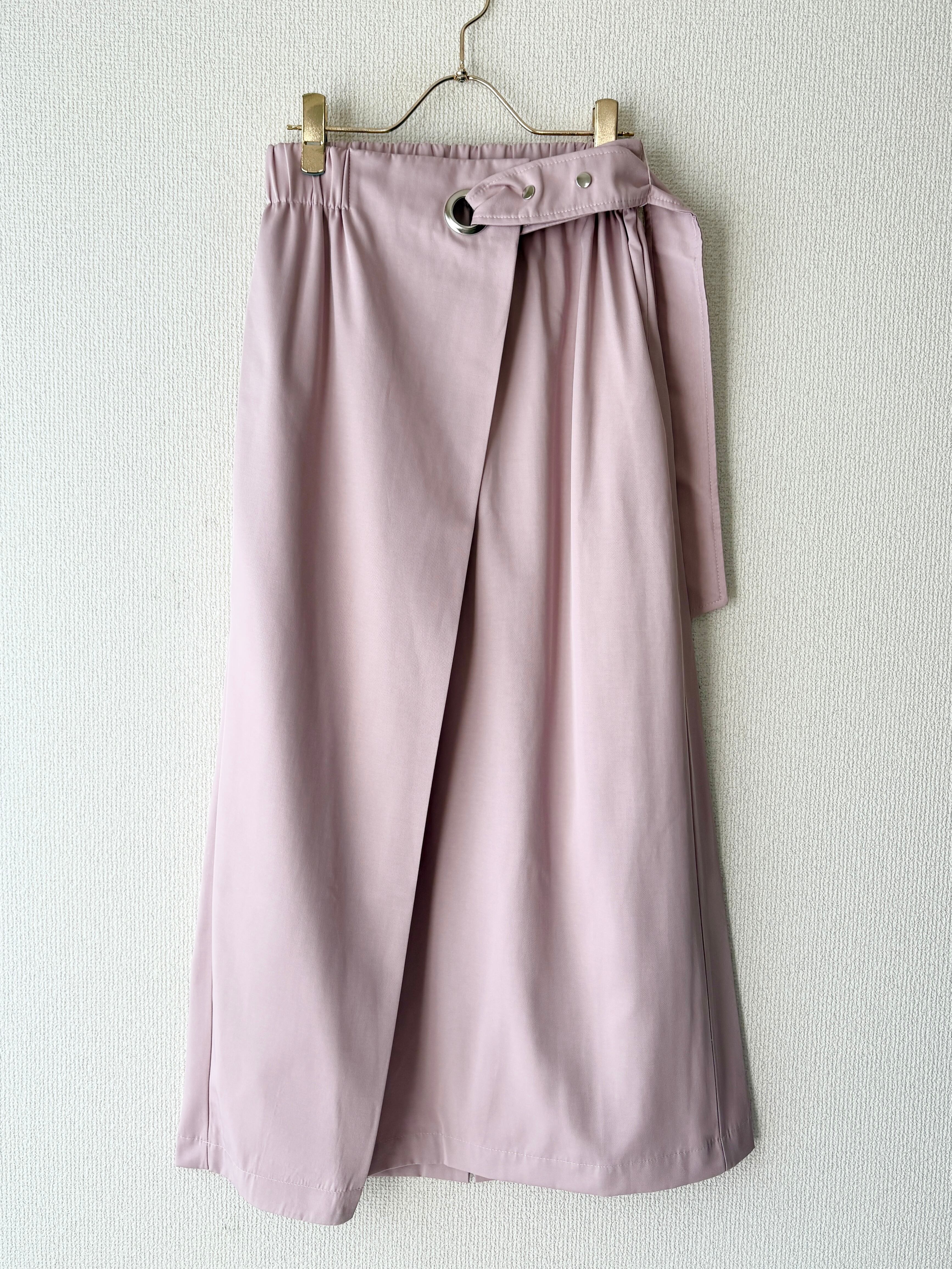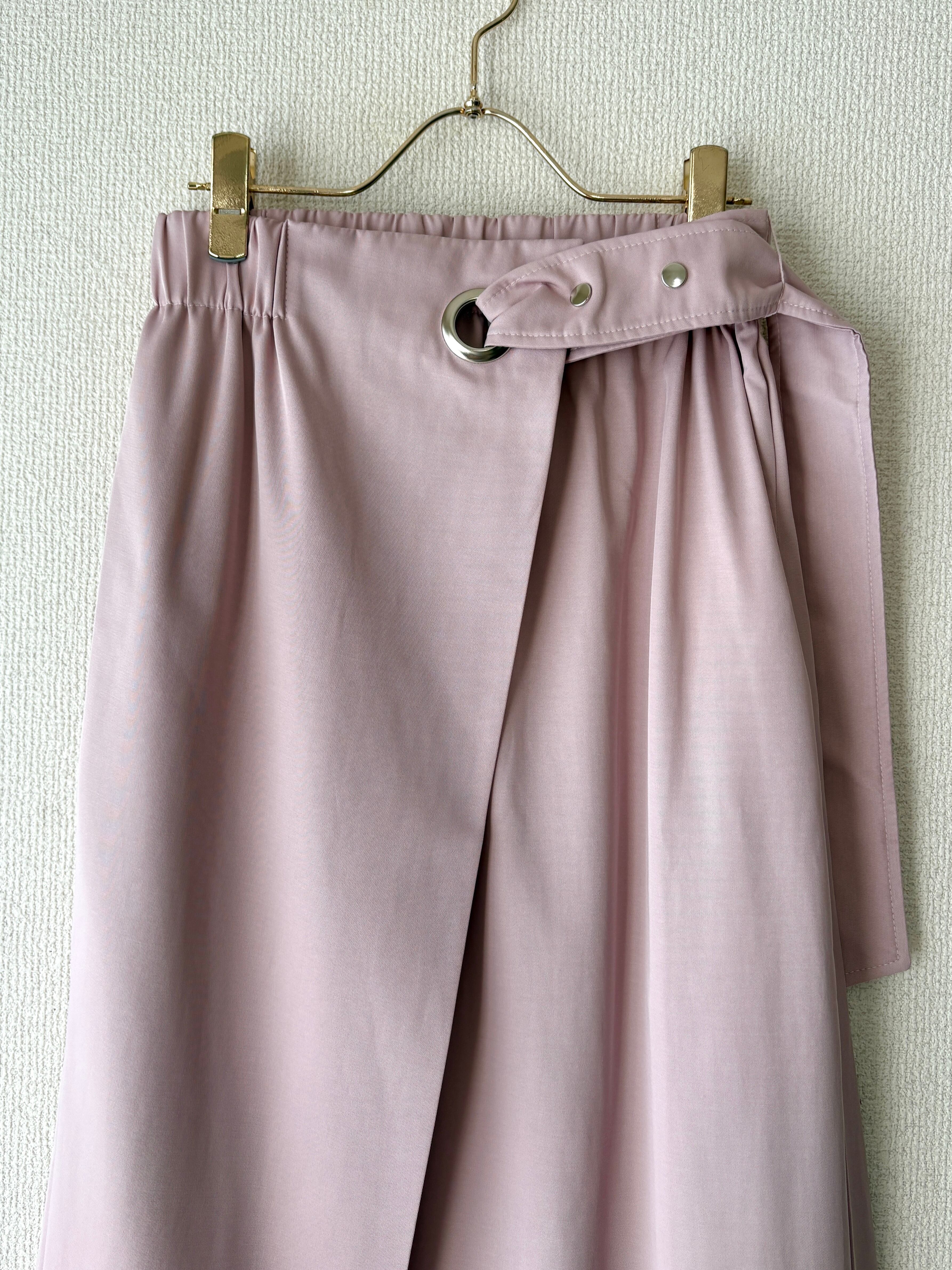 上品なくすみピンクが女性らしい、ラップデザインのロングスカートです。