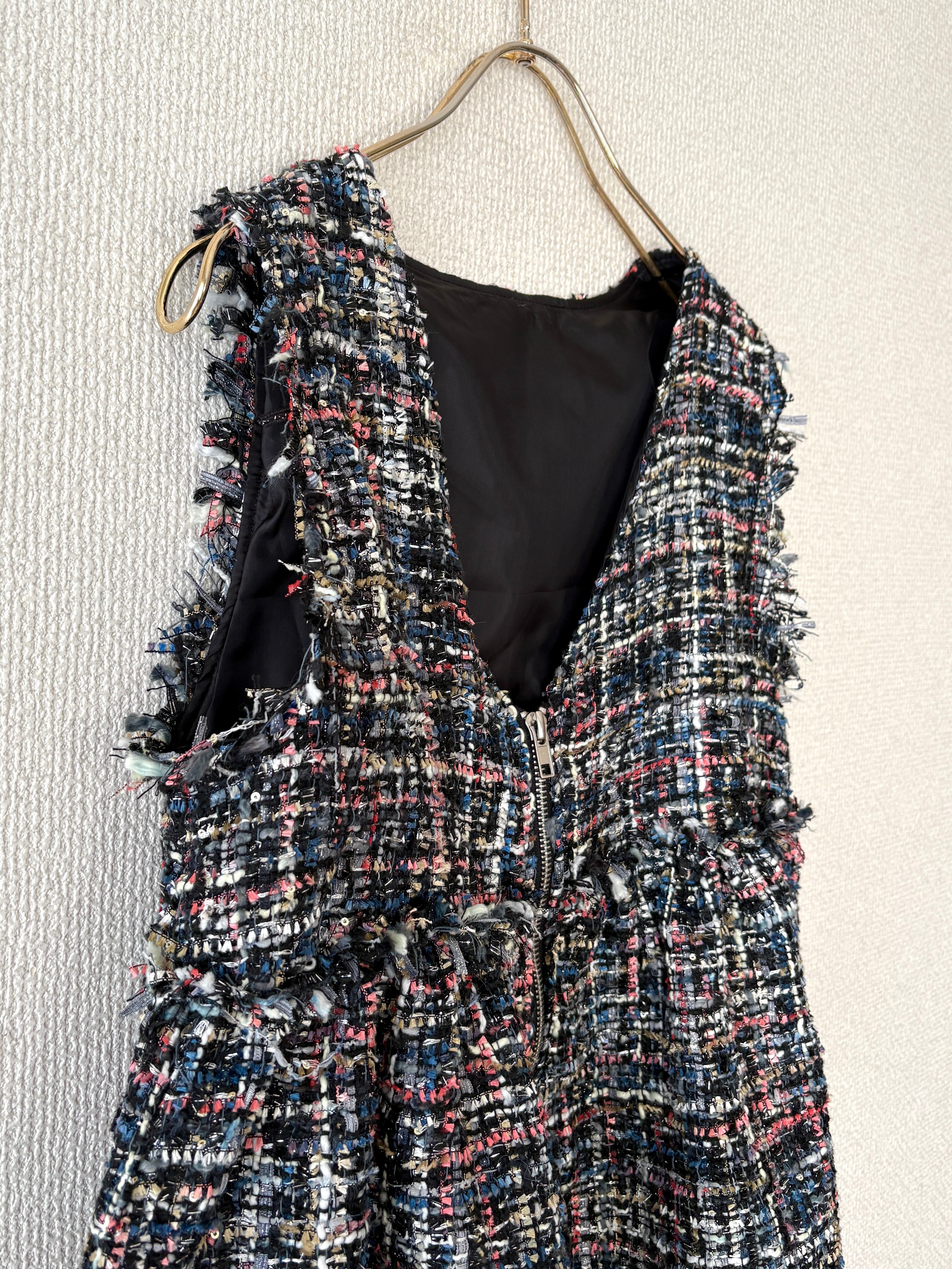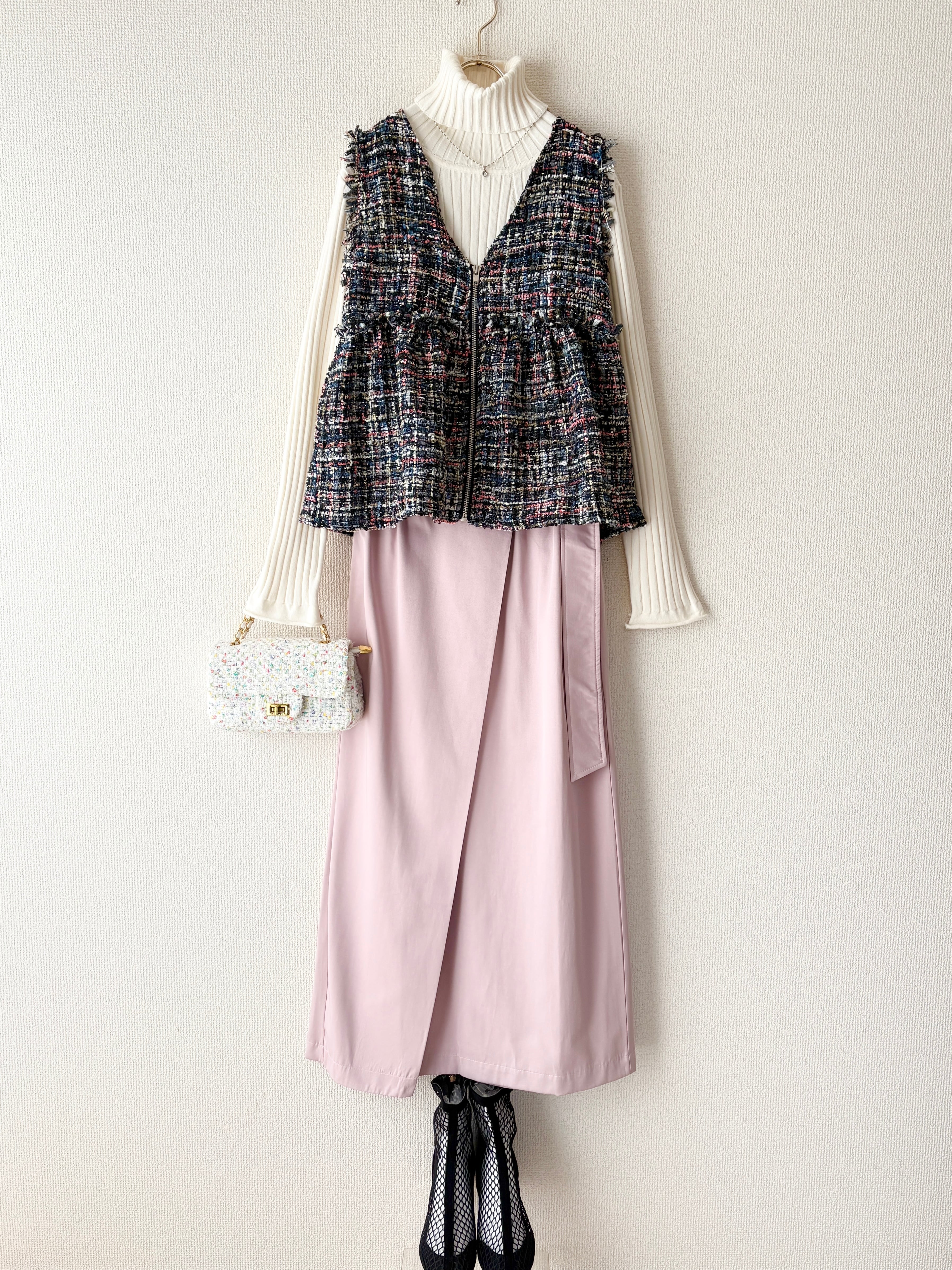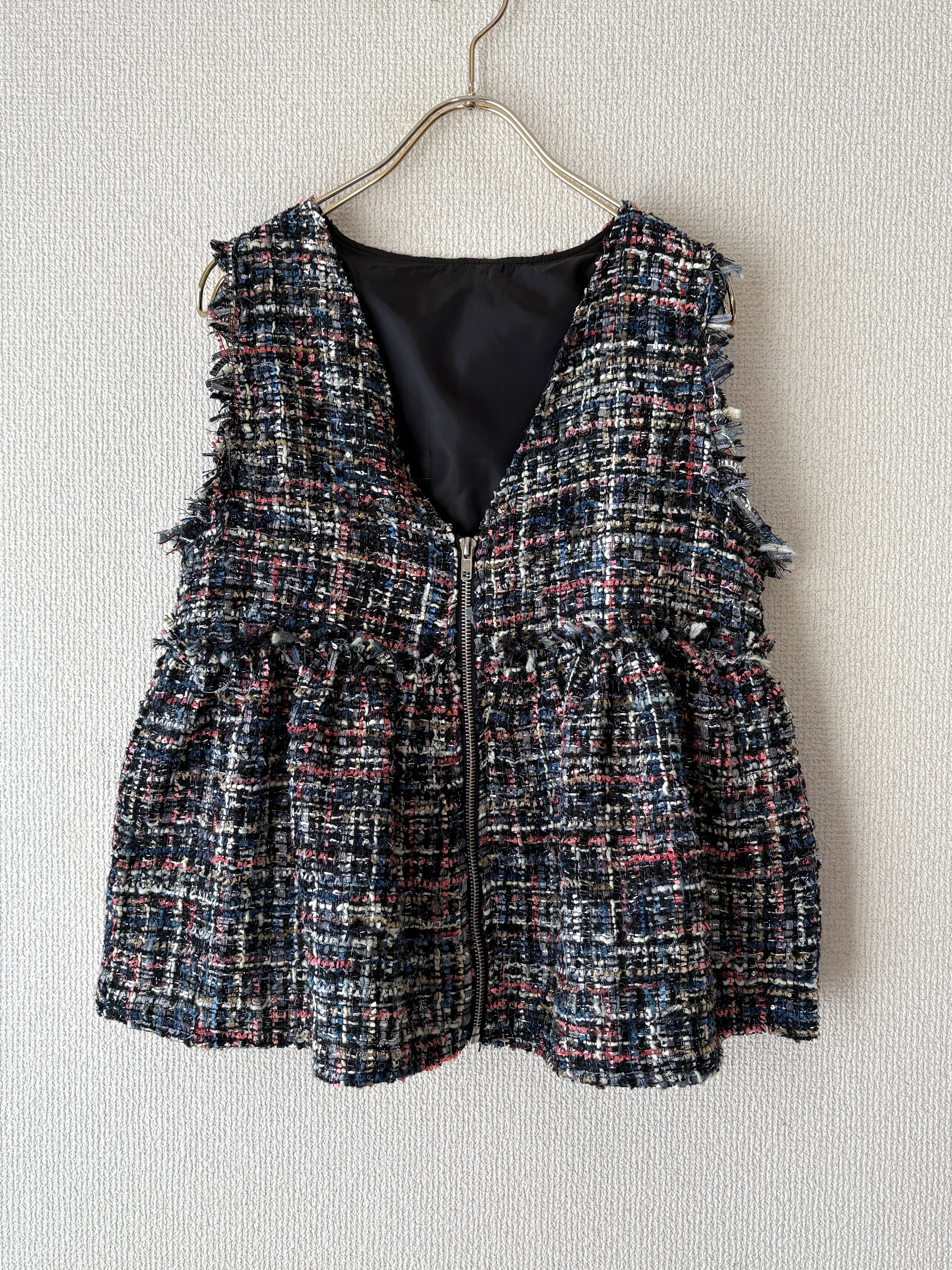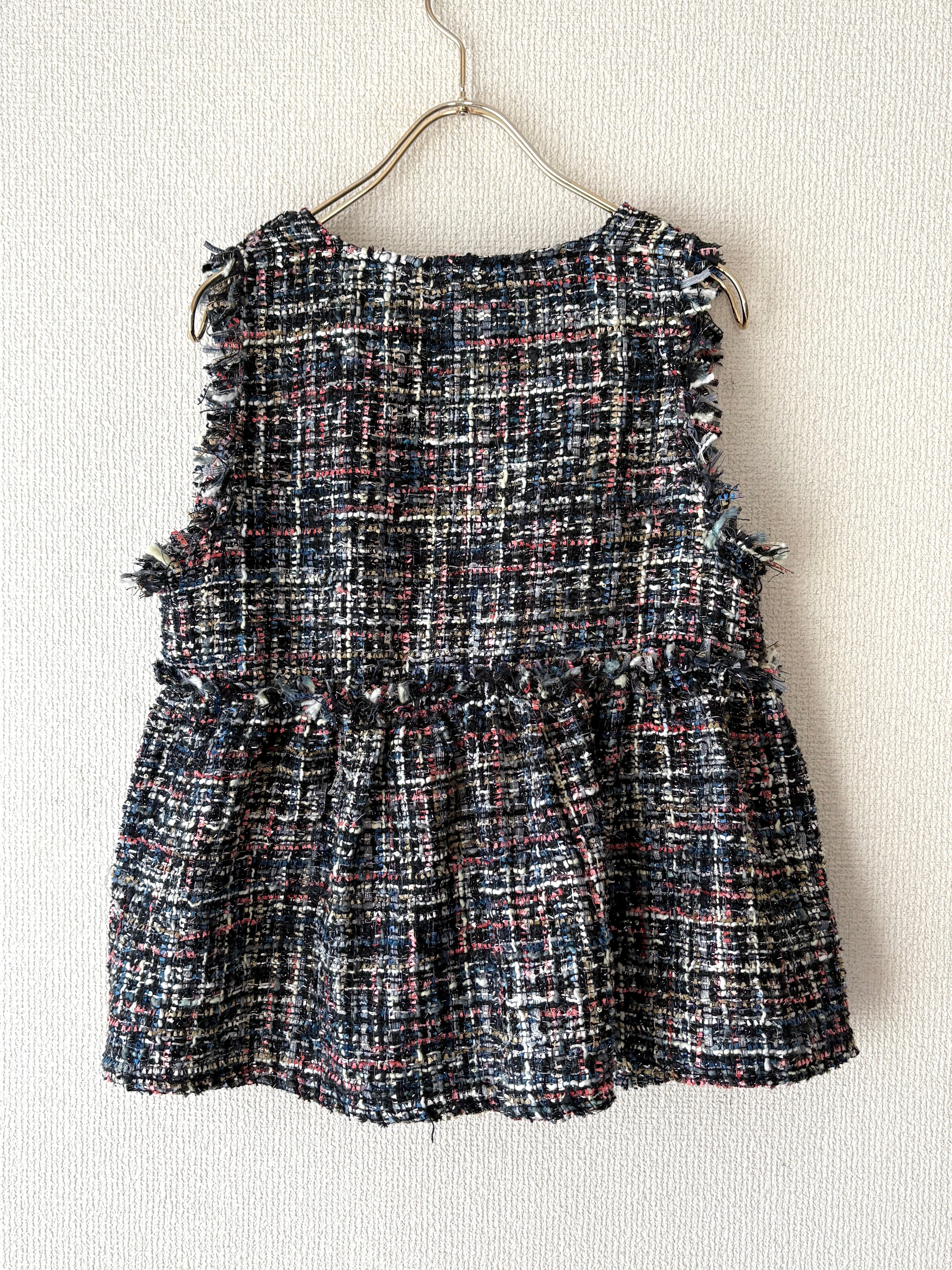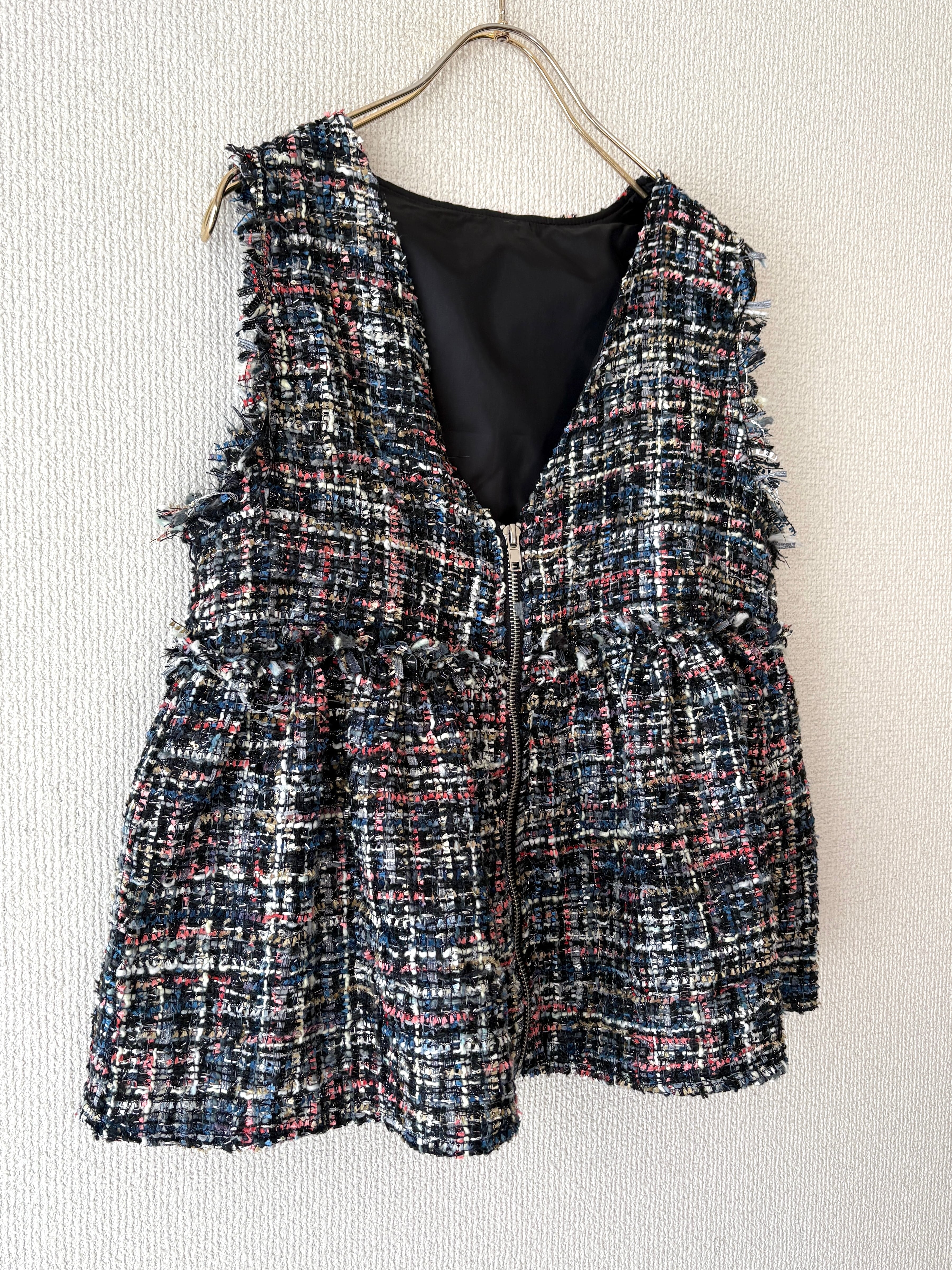 立体感のあるツイード素材が目を惹く、ペプラムジレです。