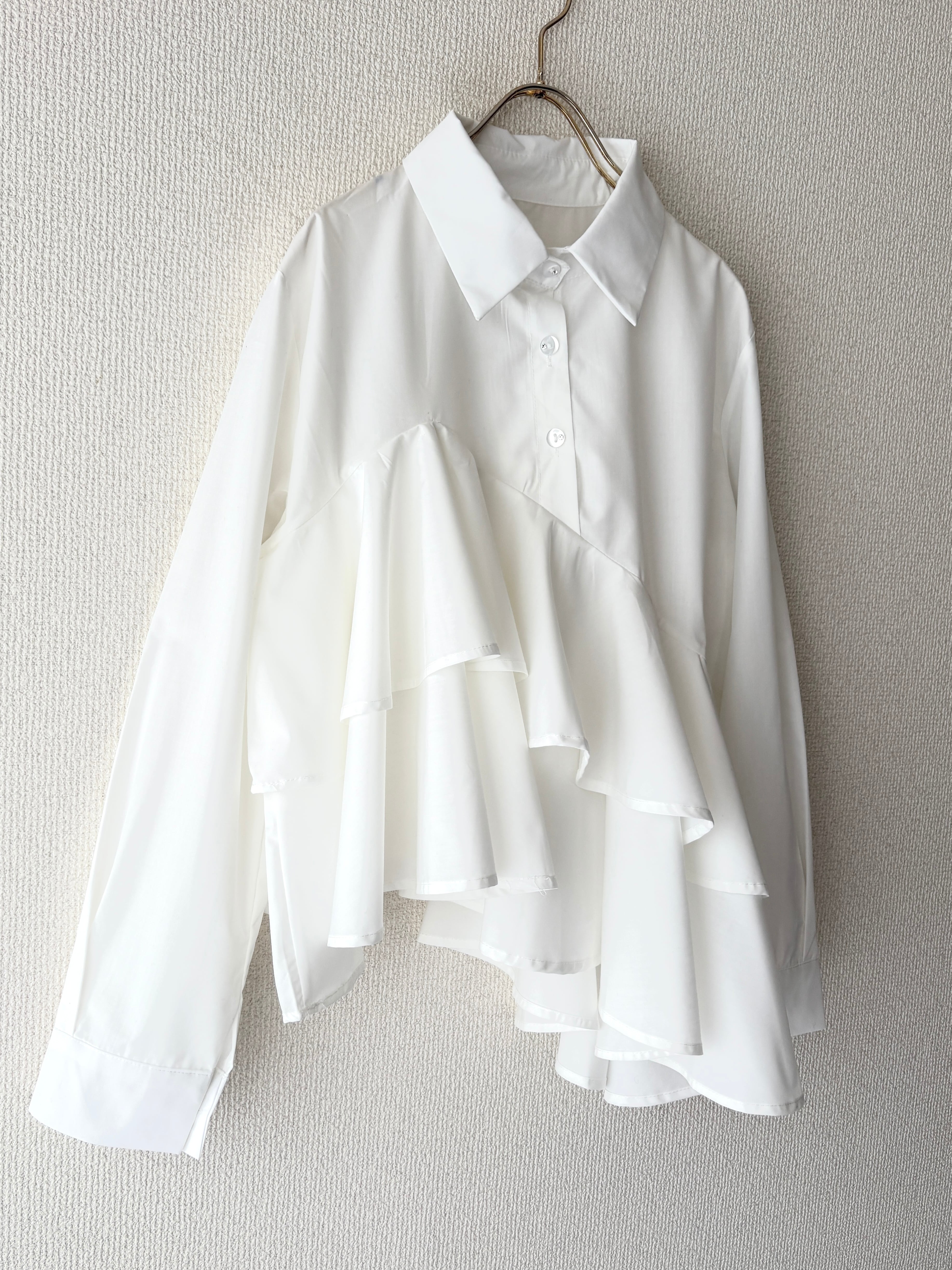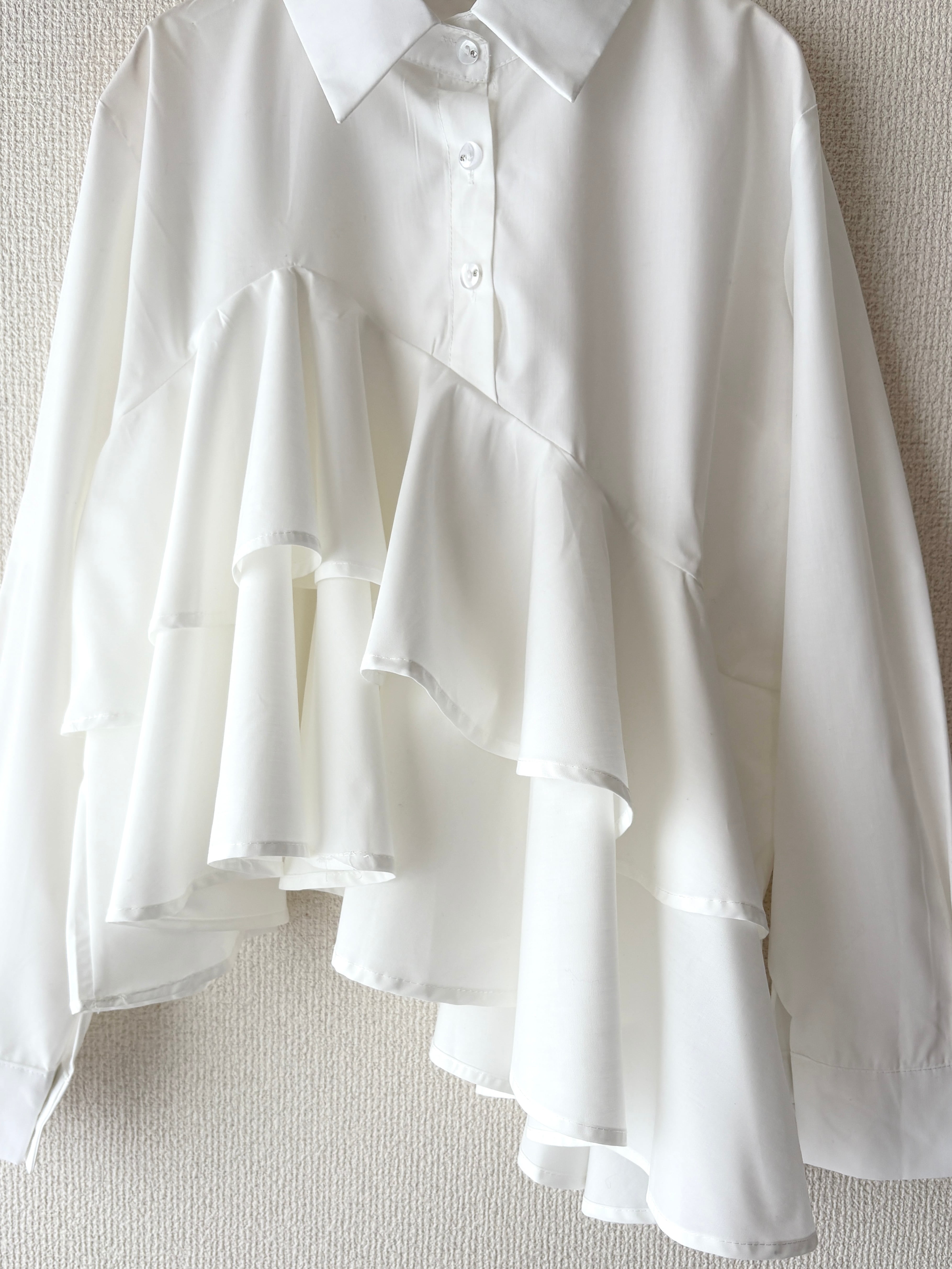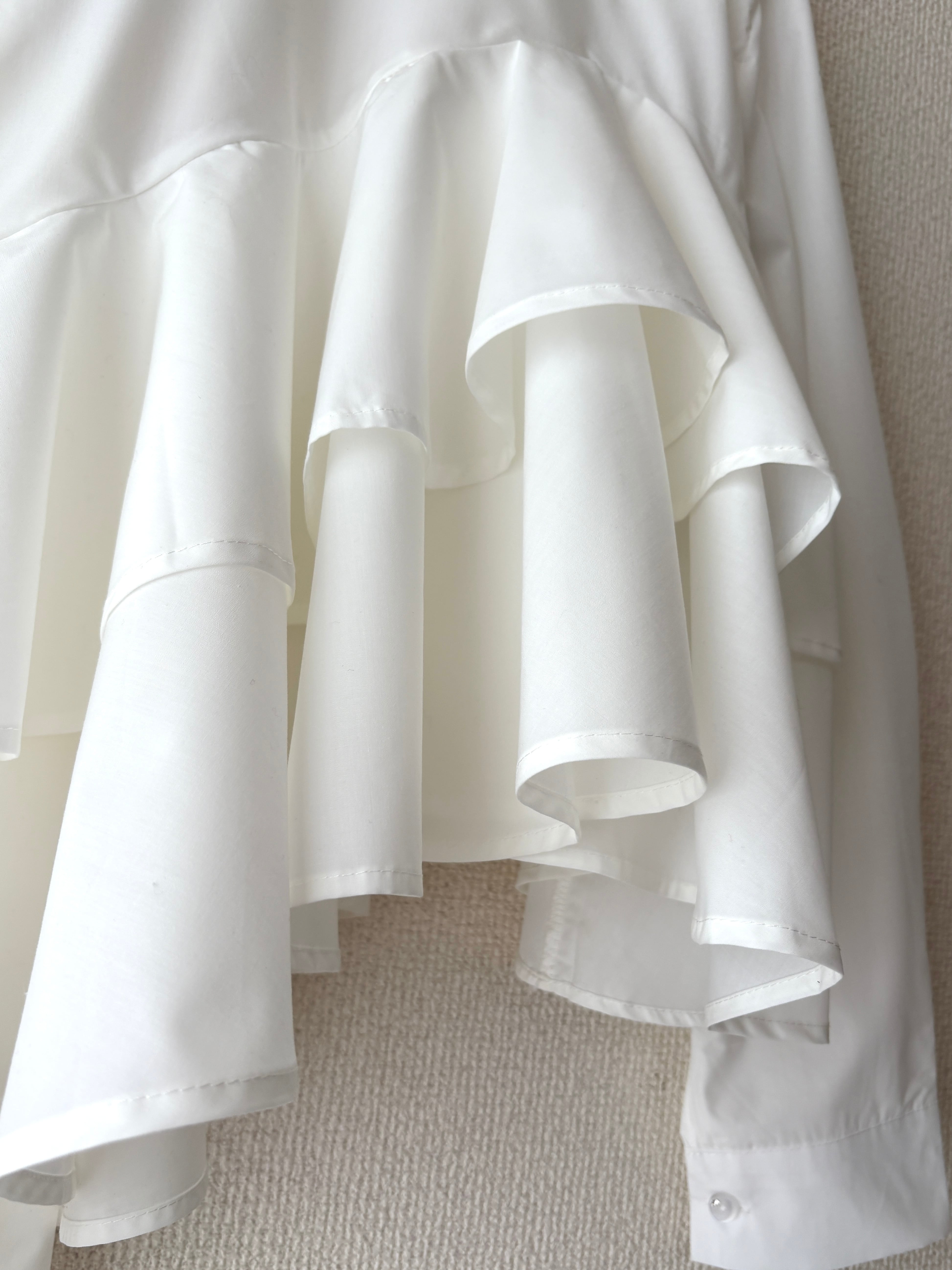 爽やかで真っ白な、フリルブラウスです。