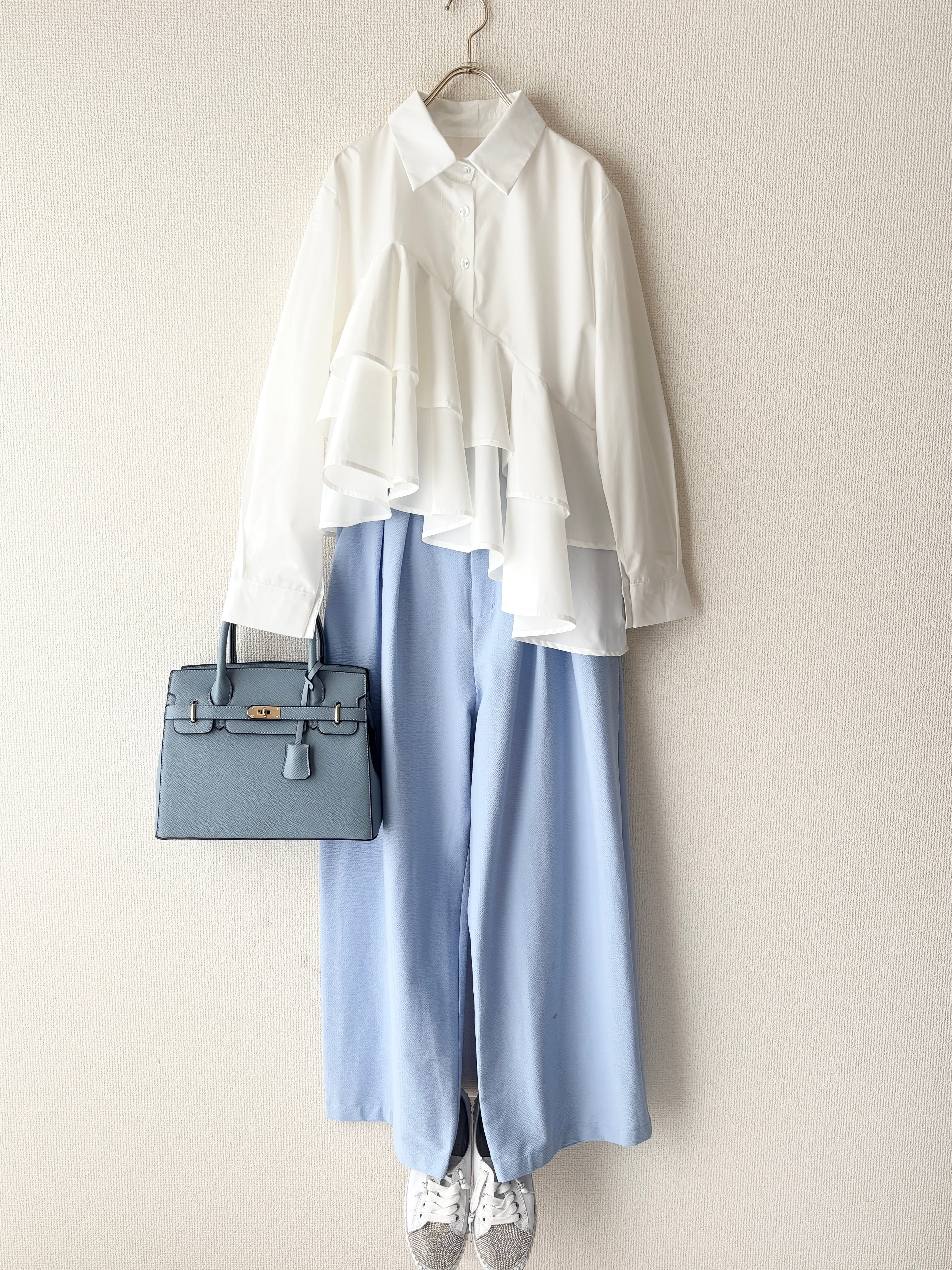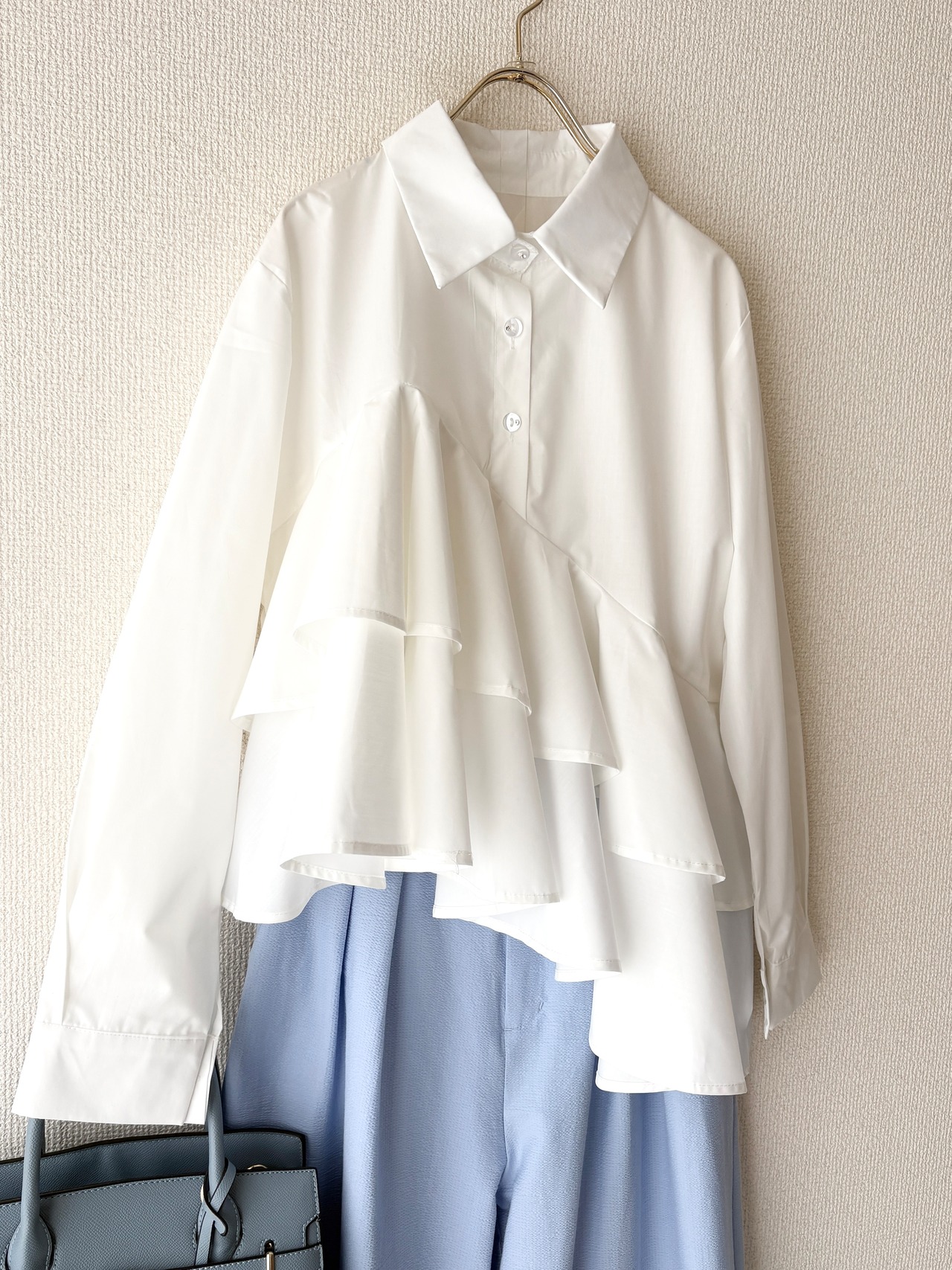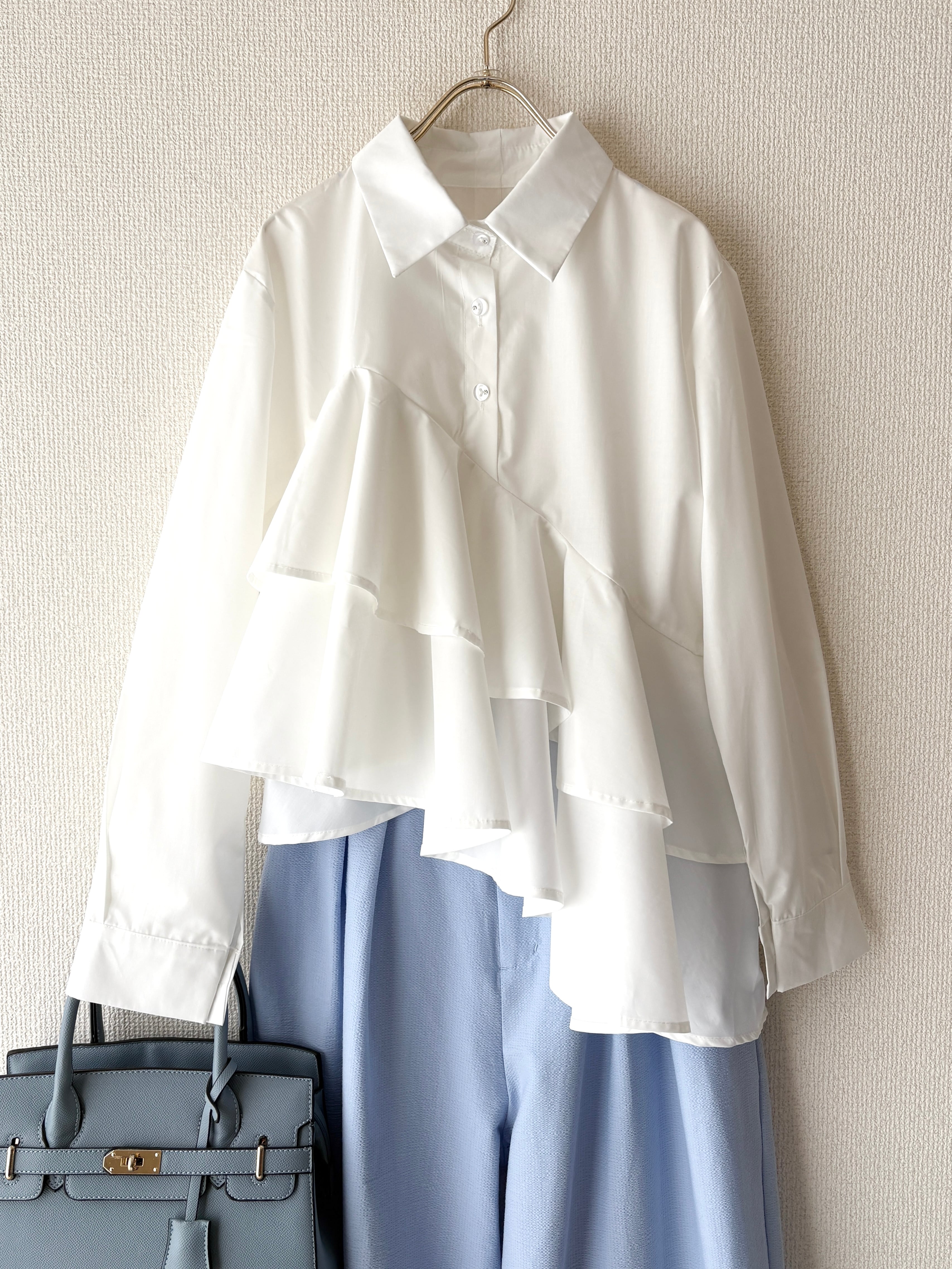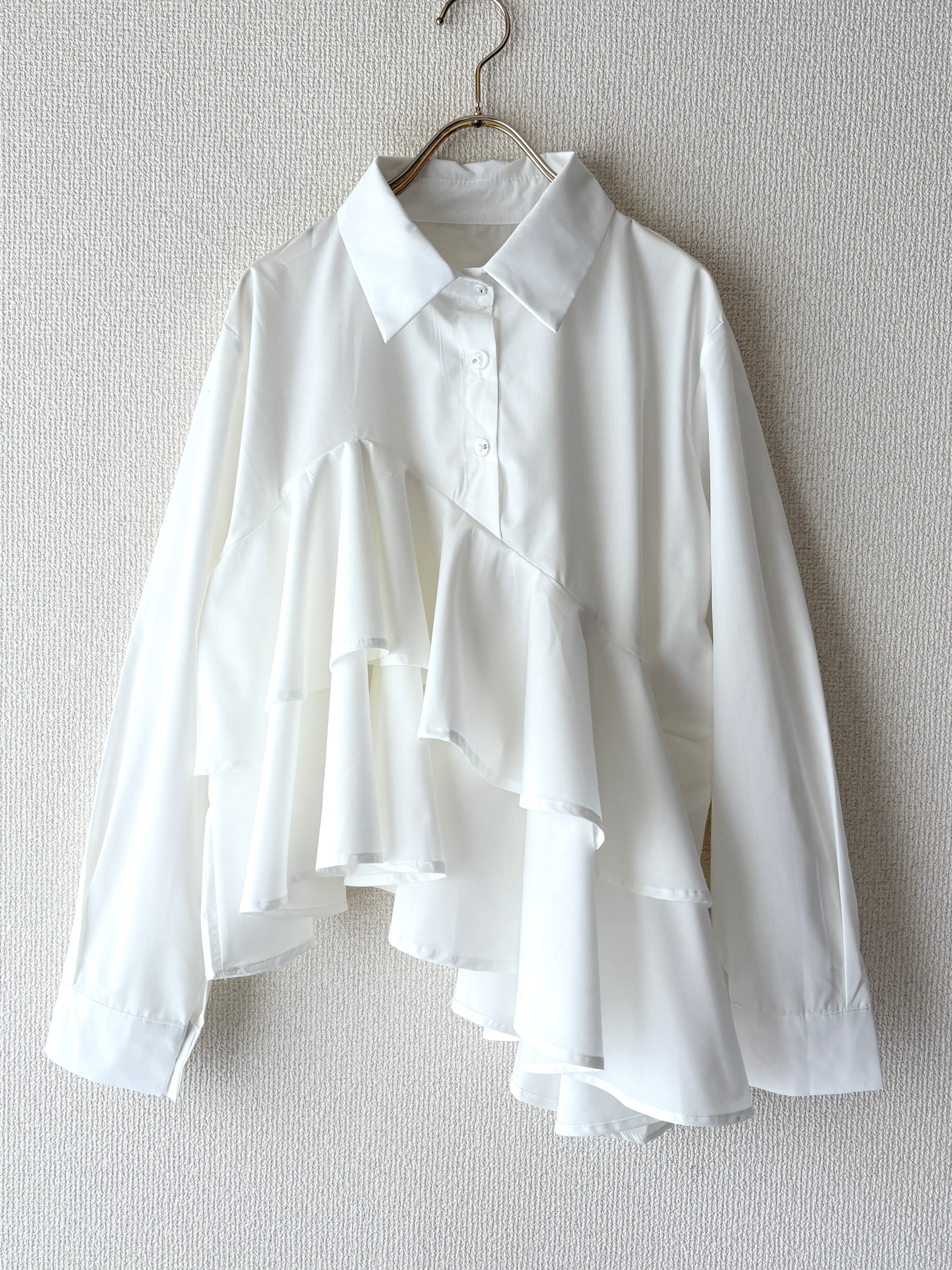 爽やかで真っ白な、フリルブラウスです。