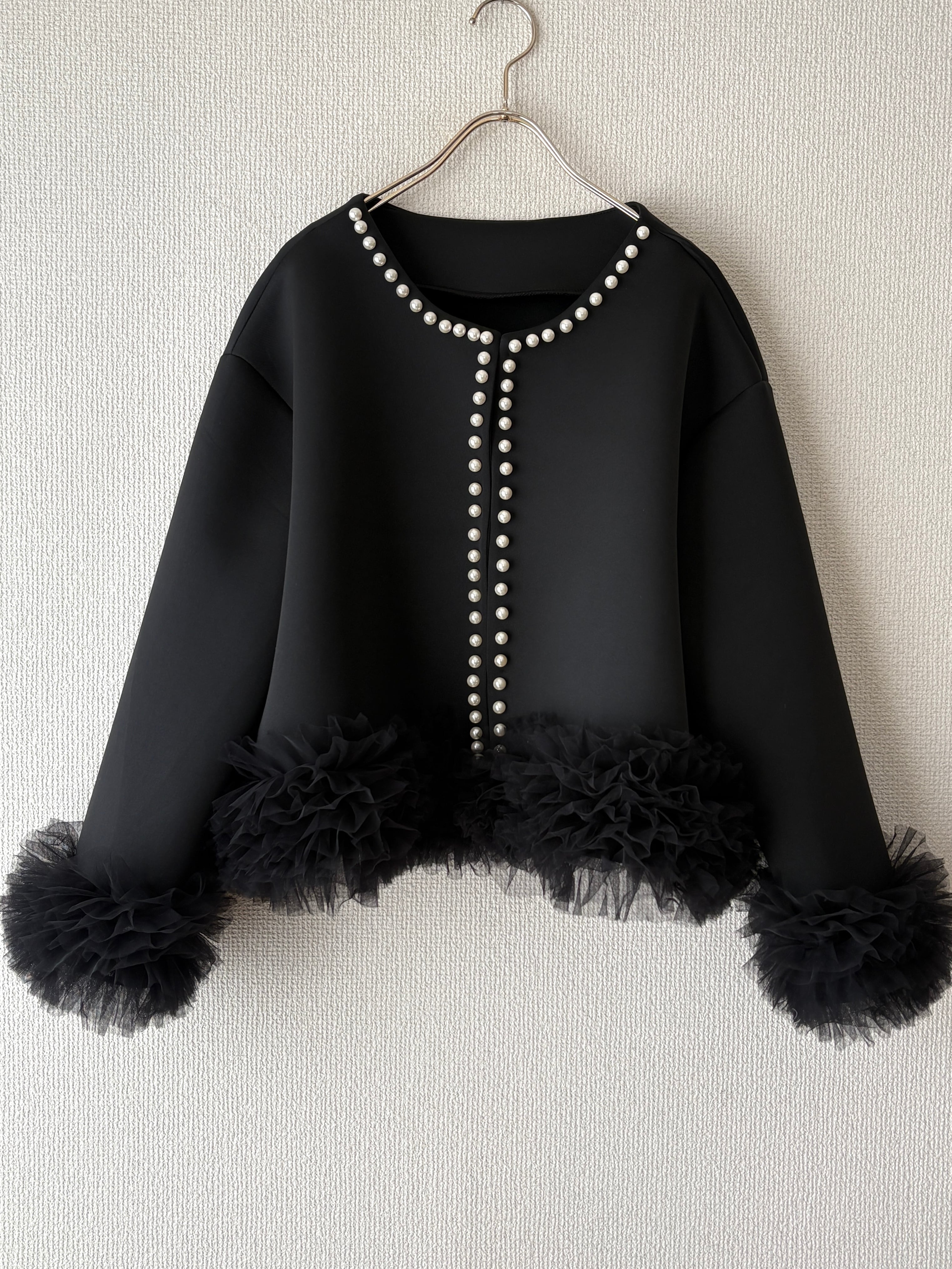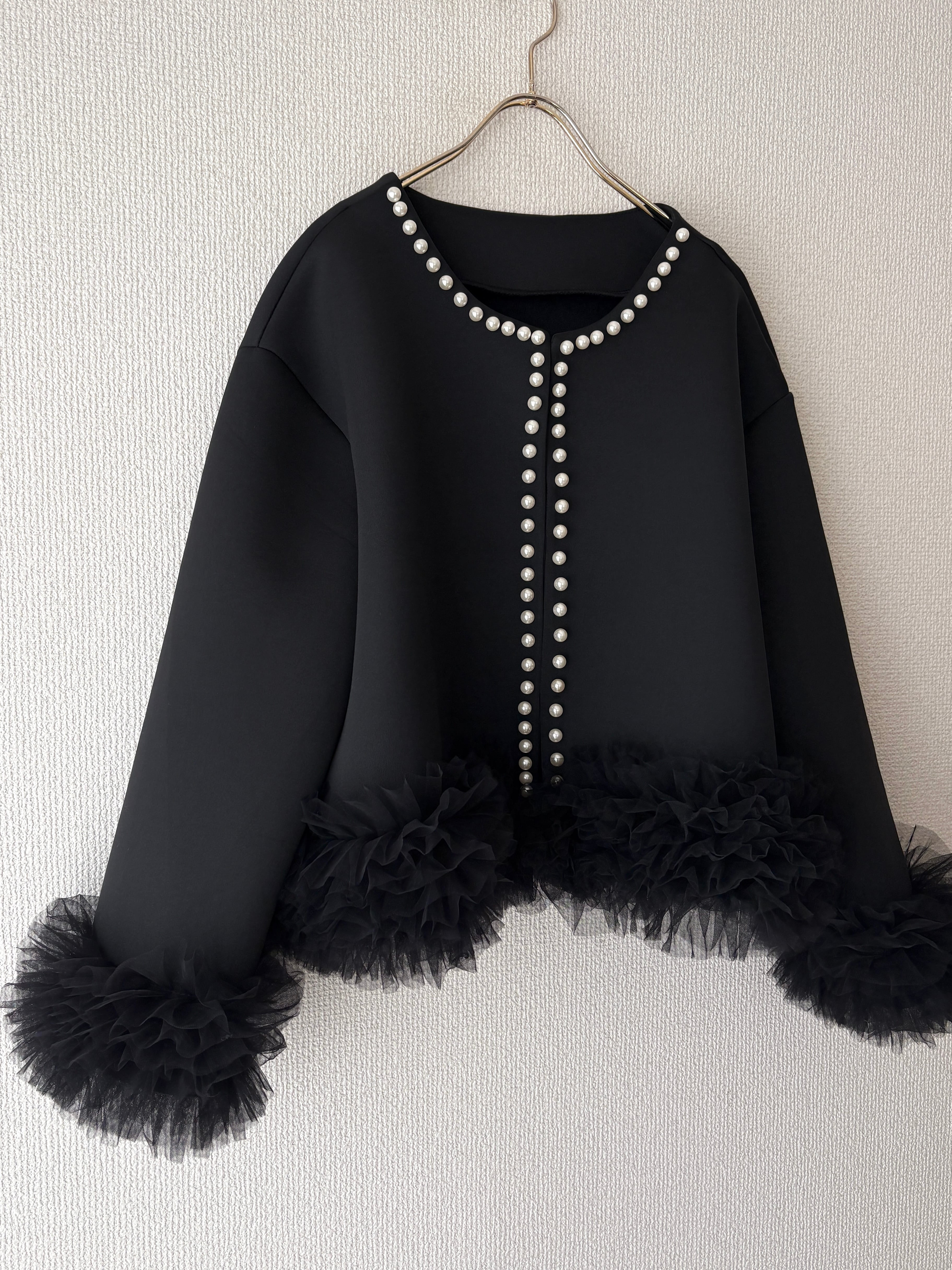 一瞬で華やかになる主役ジャケットです。