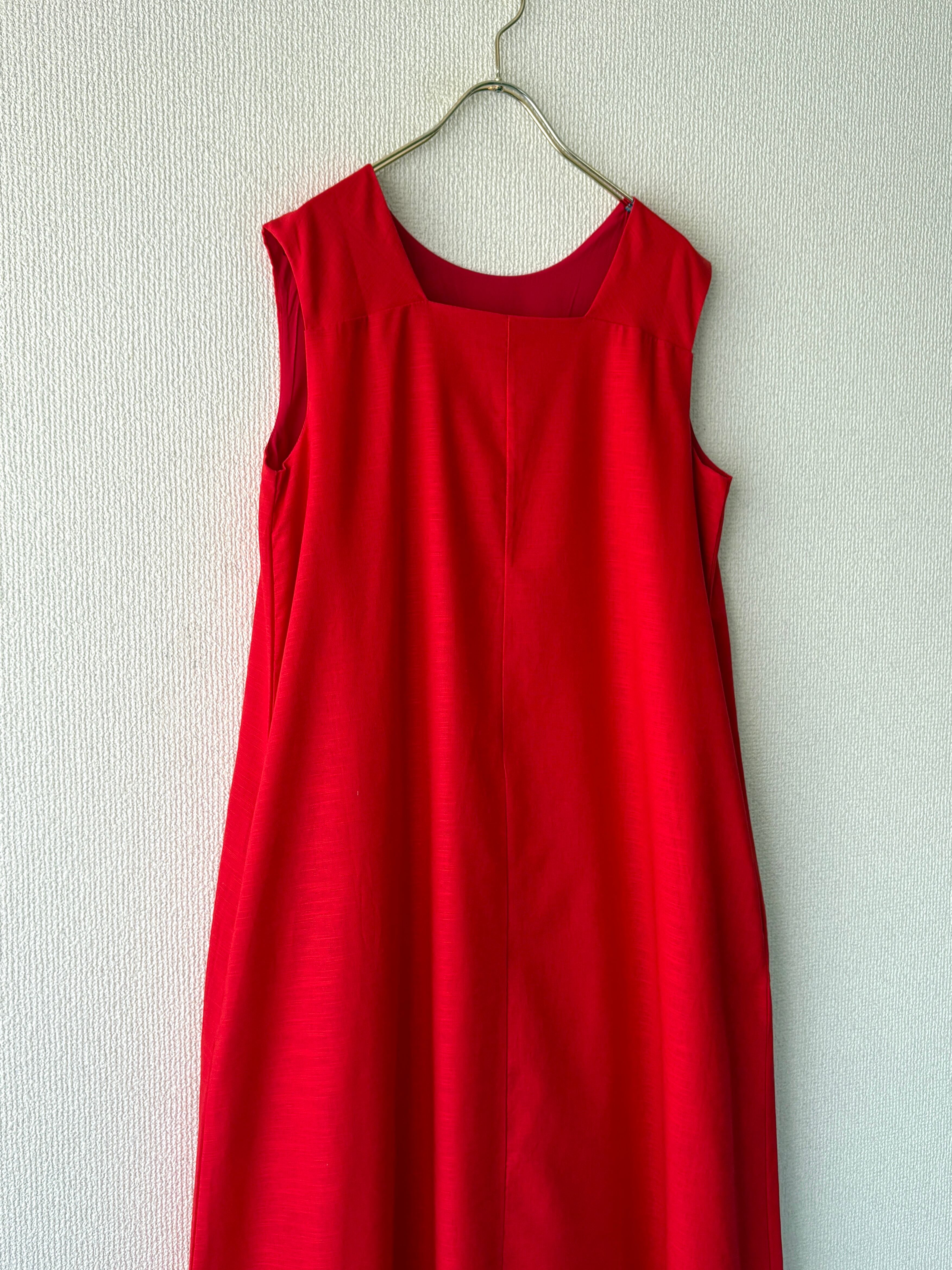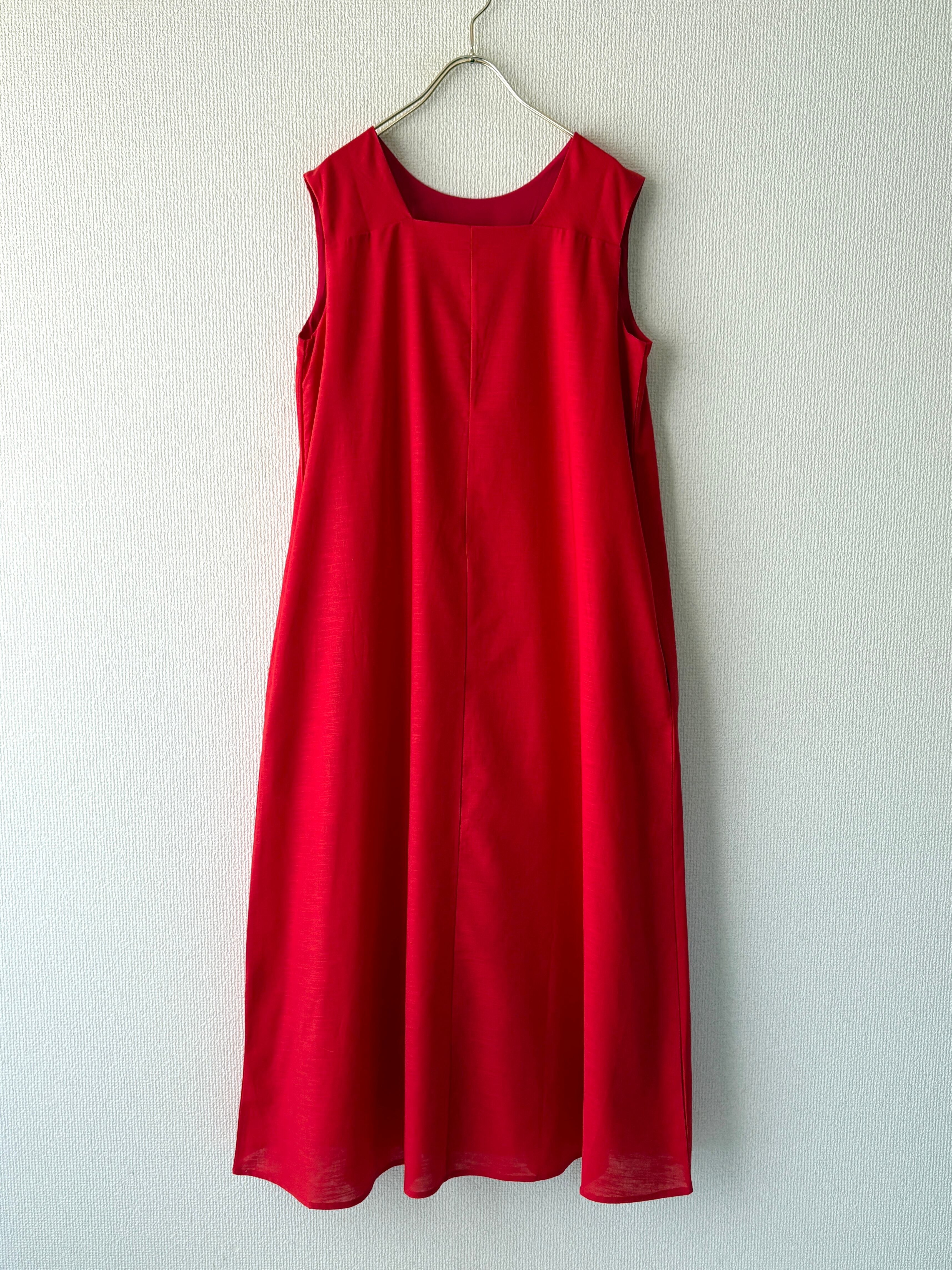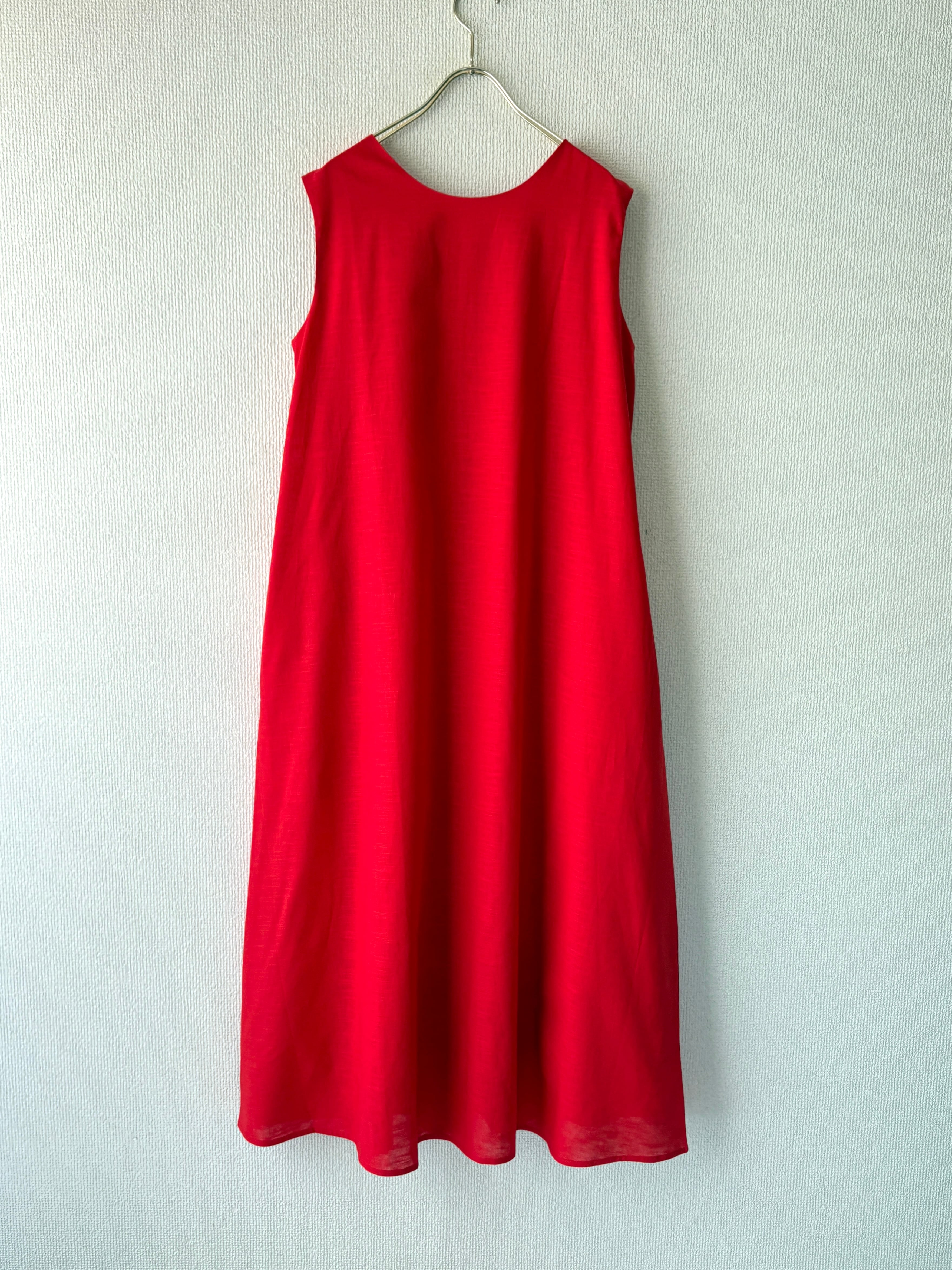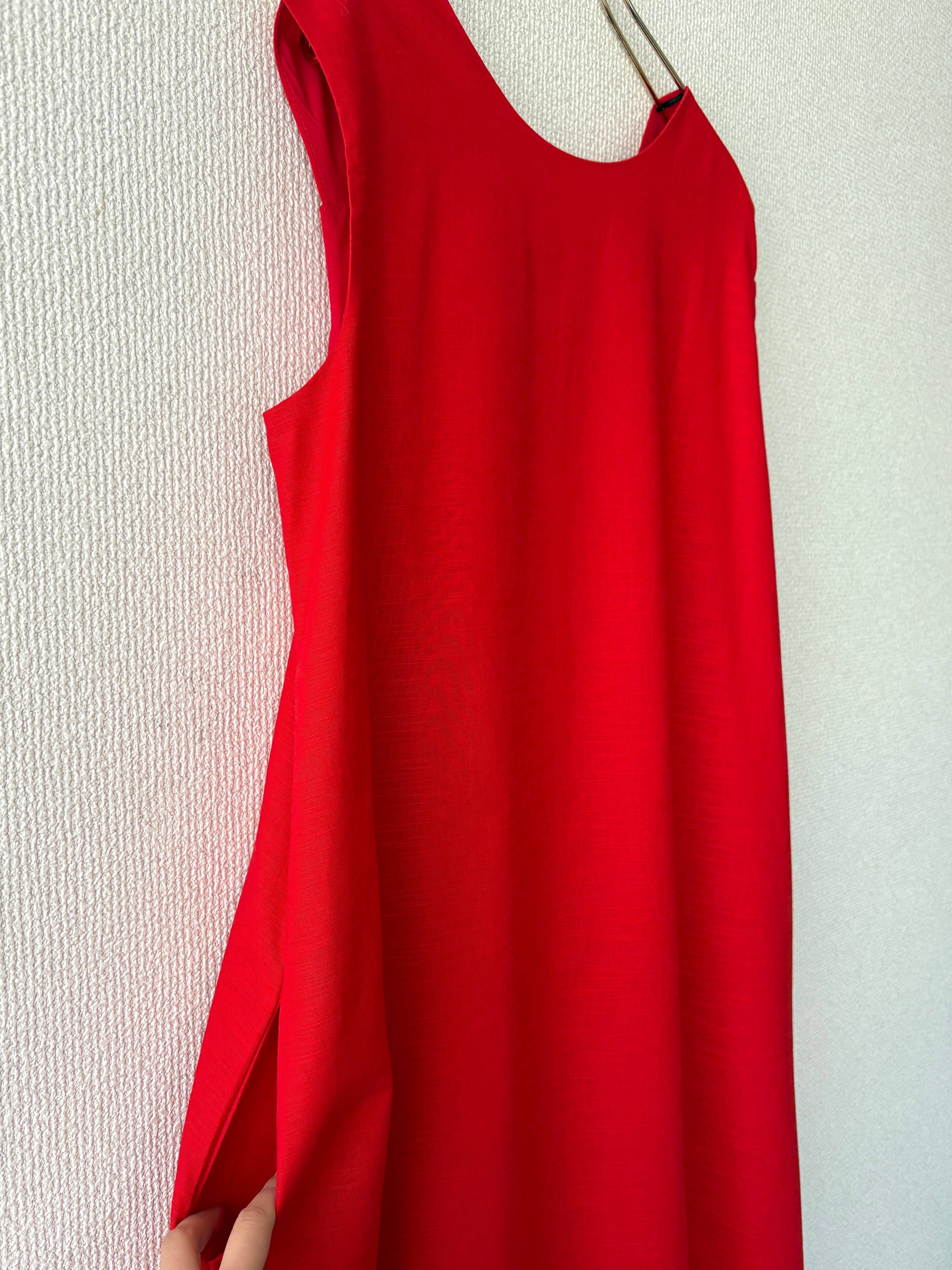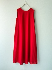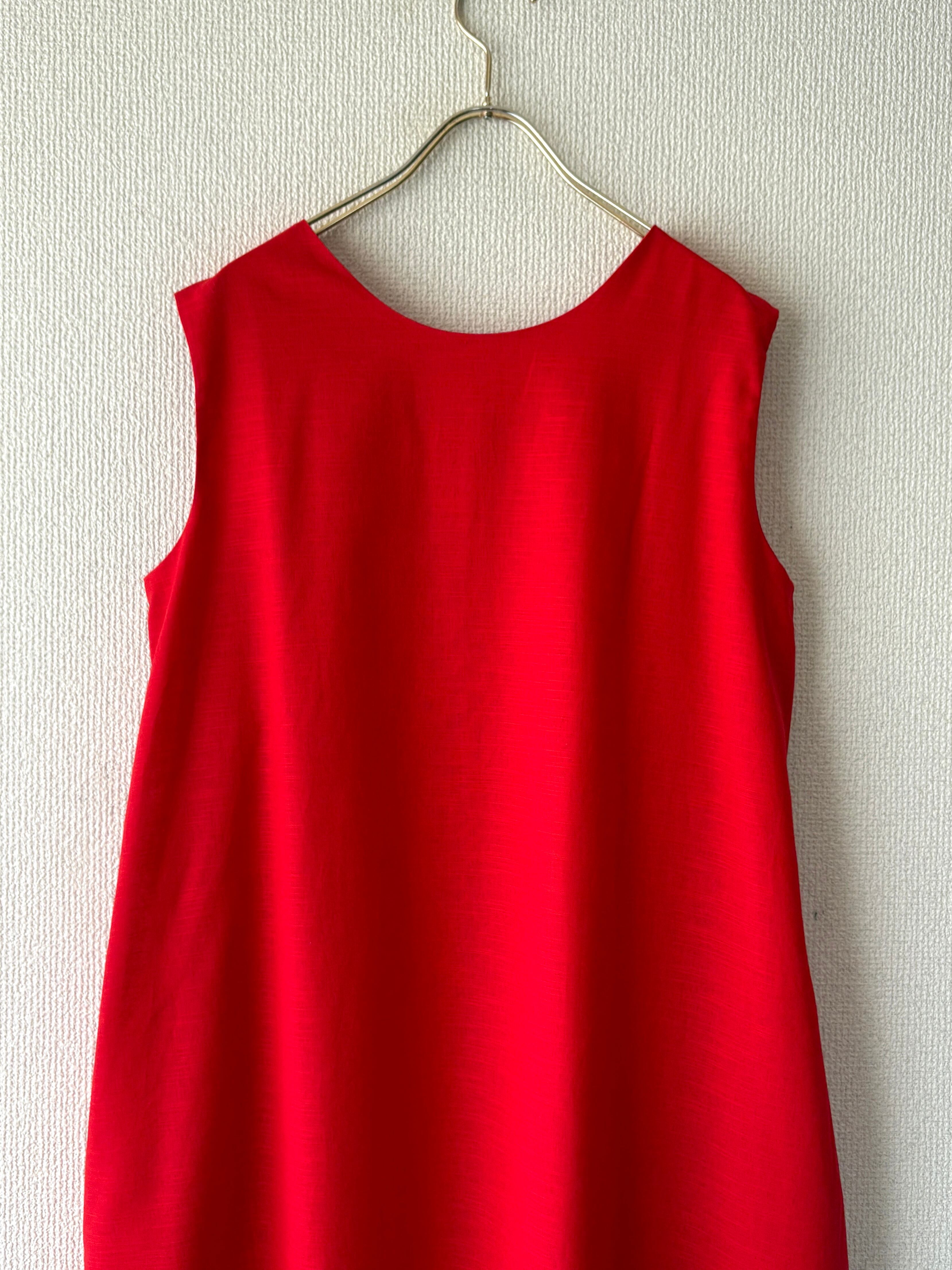 鮮やかな赤色がコーデの主役になる、ノースリーブワンピースです。