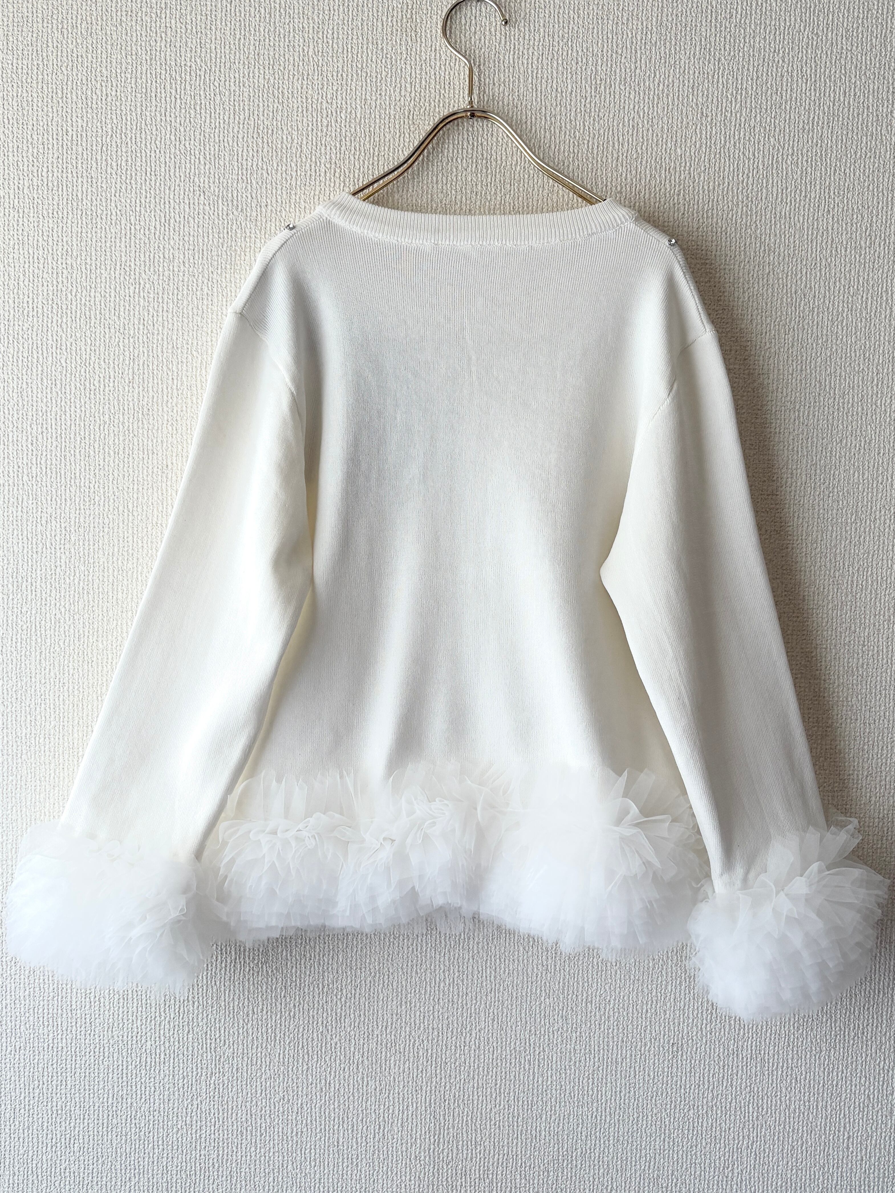 繊細なチュール素材とフリルがフェミニンな印象に。