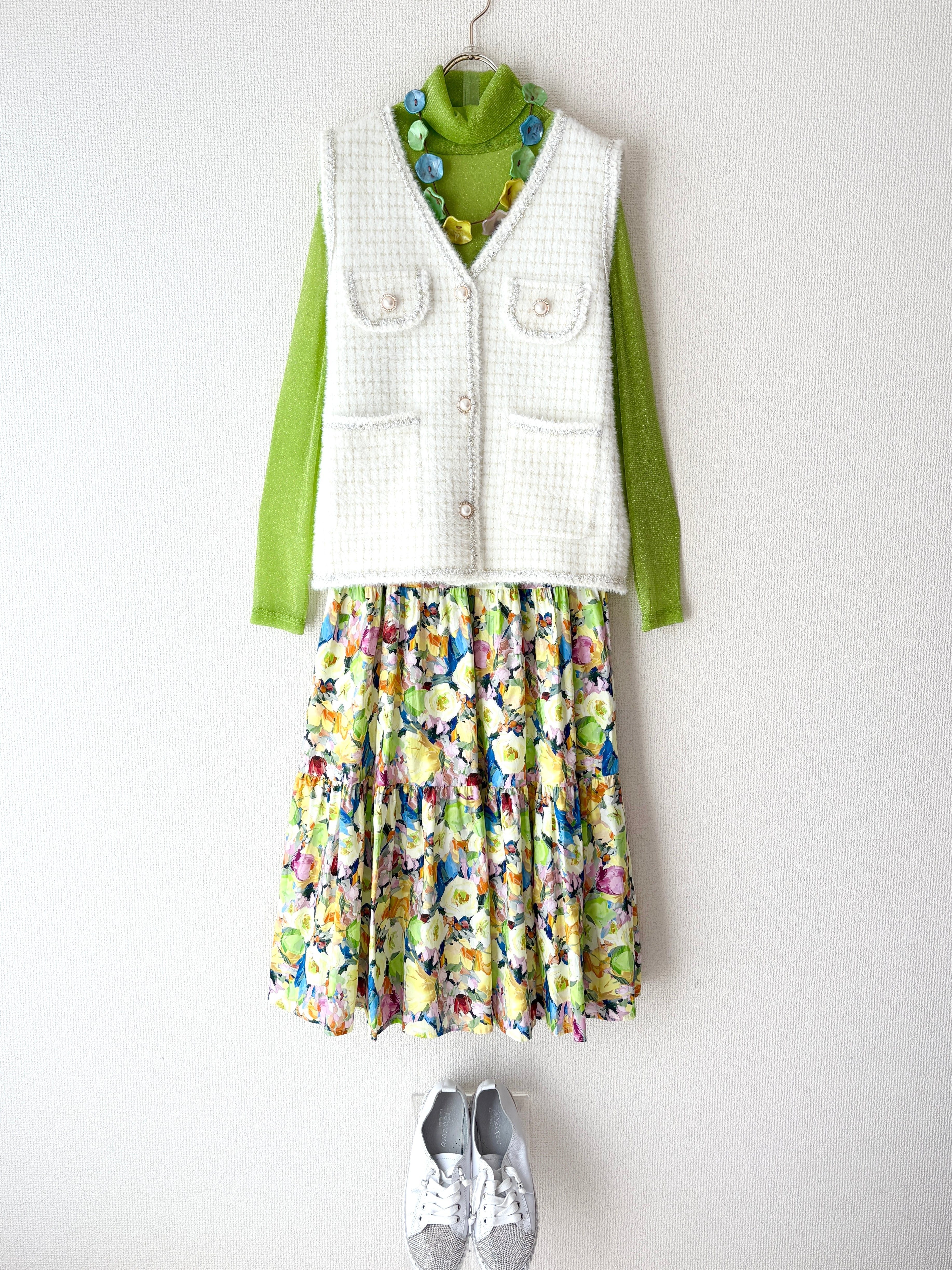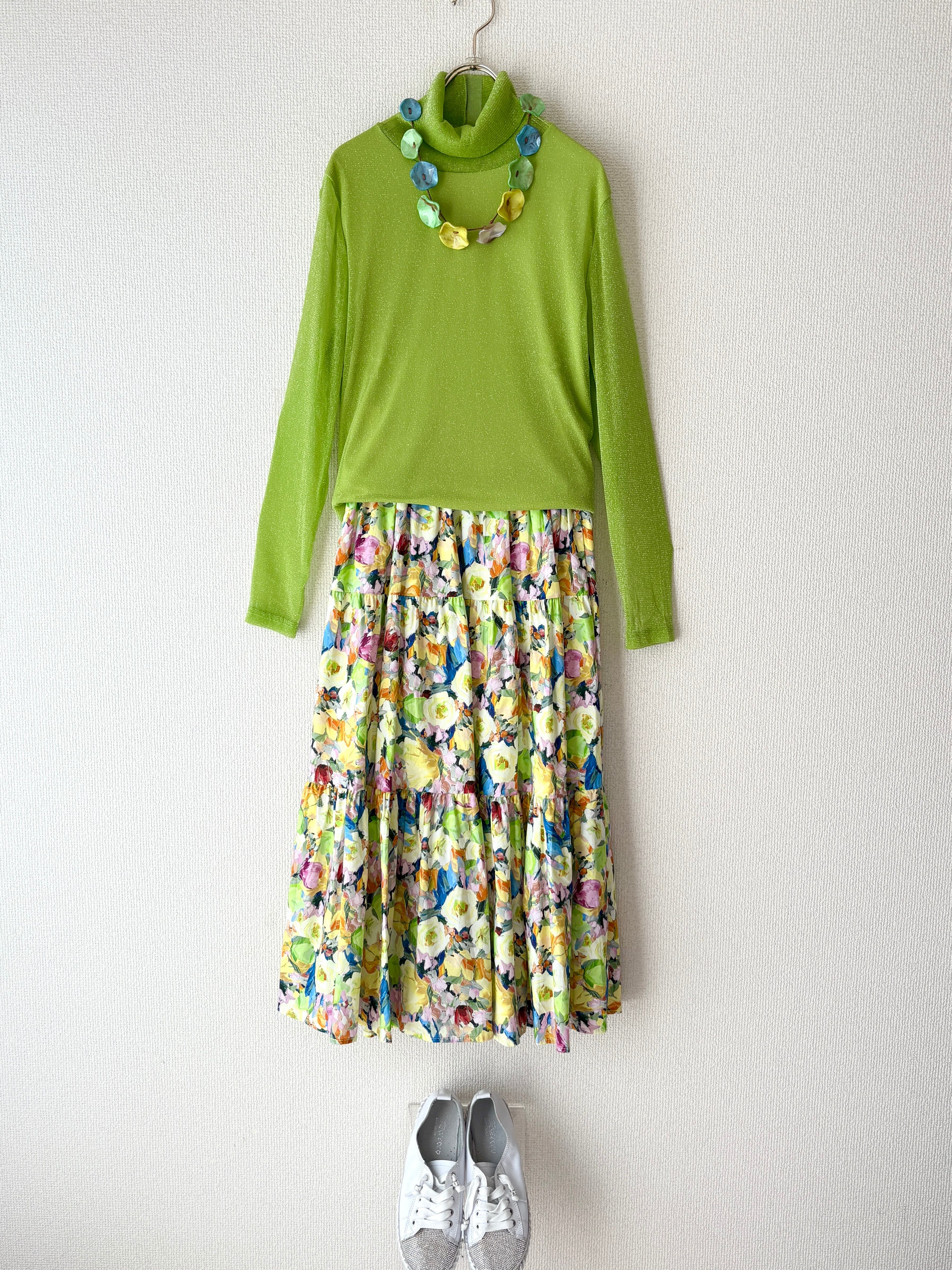 体のラインを拾わず、動くたびに女性らしい印象にしてくれます。