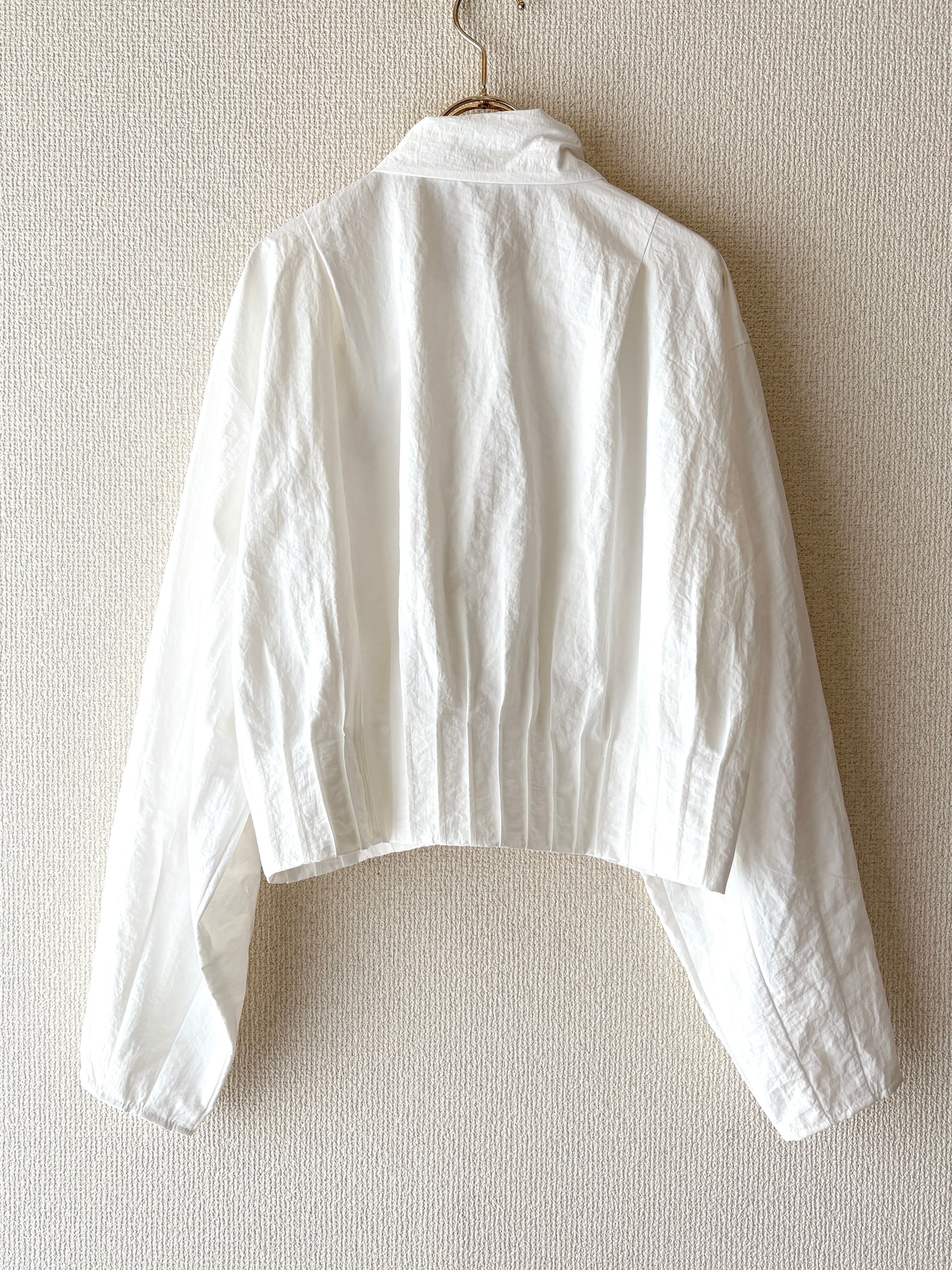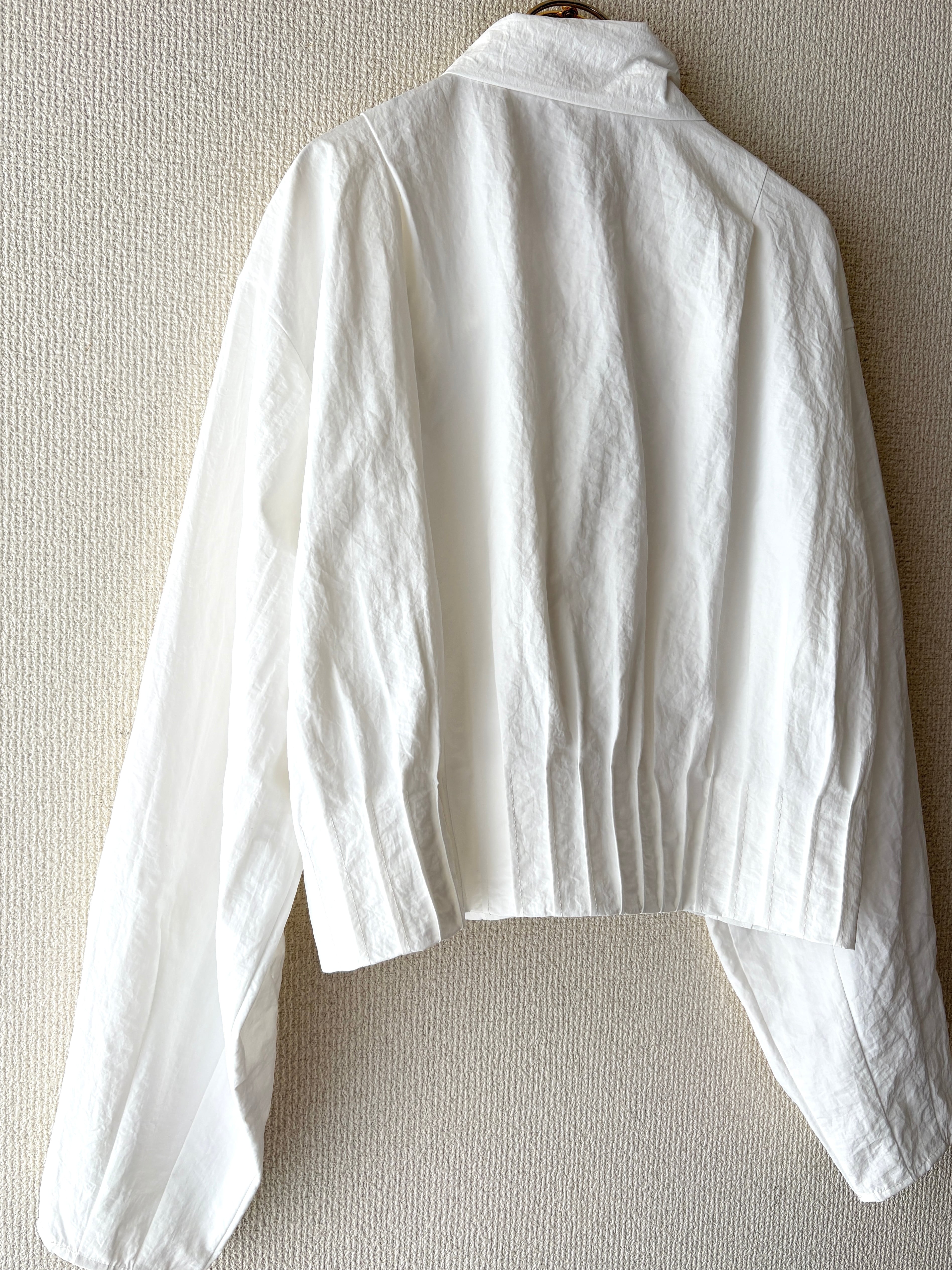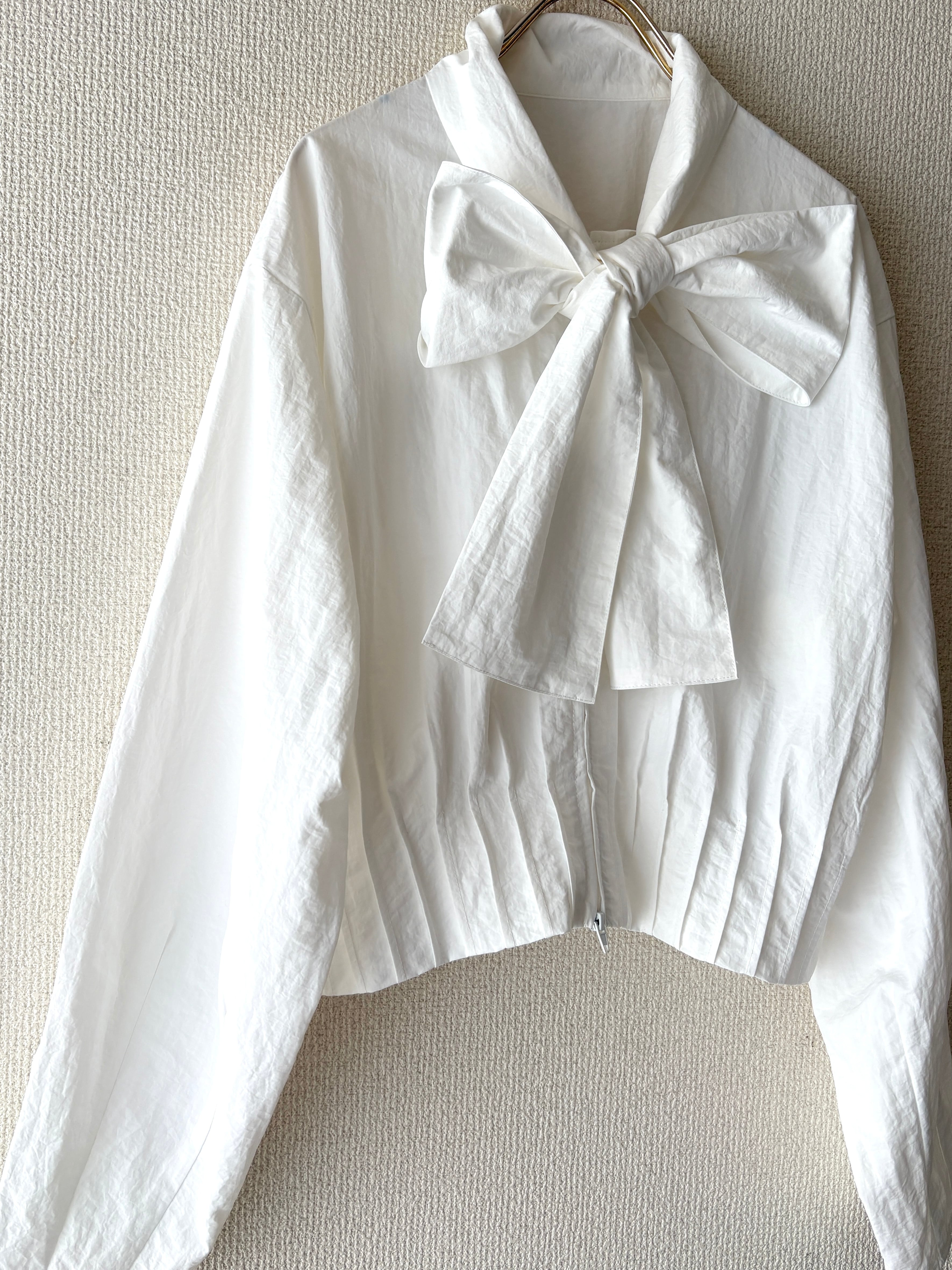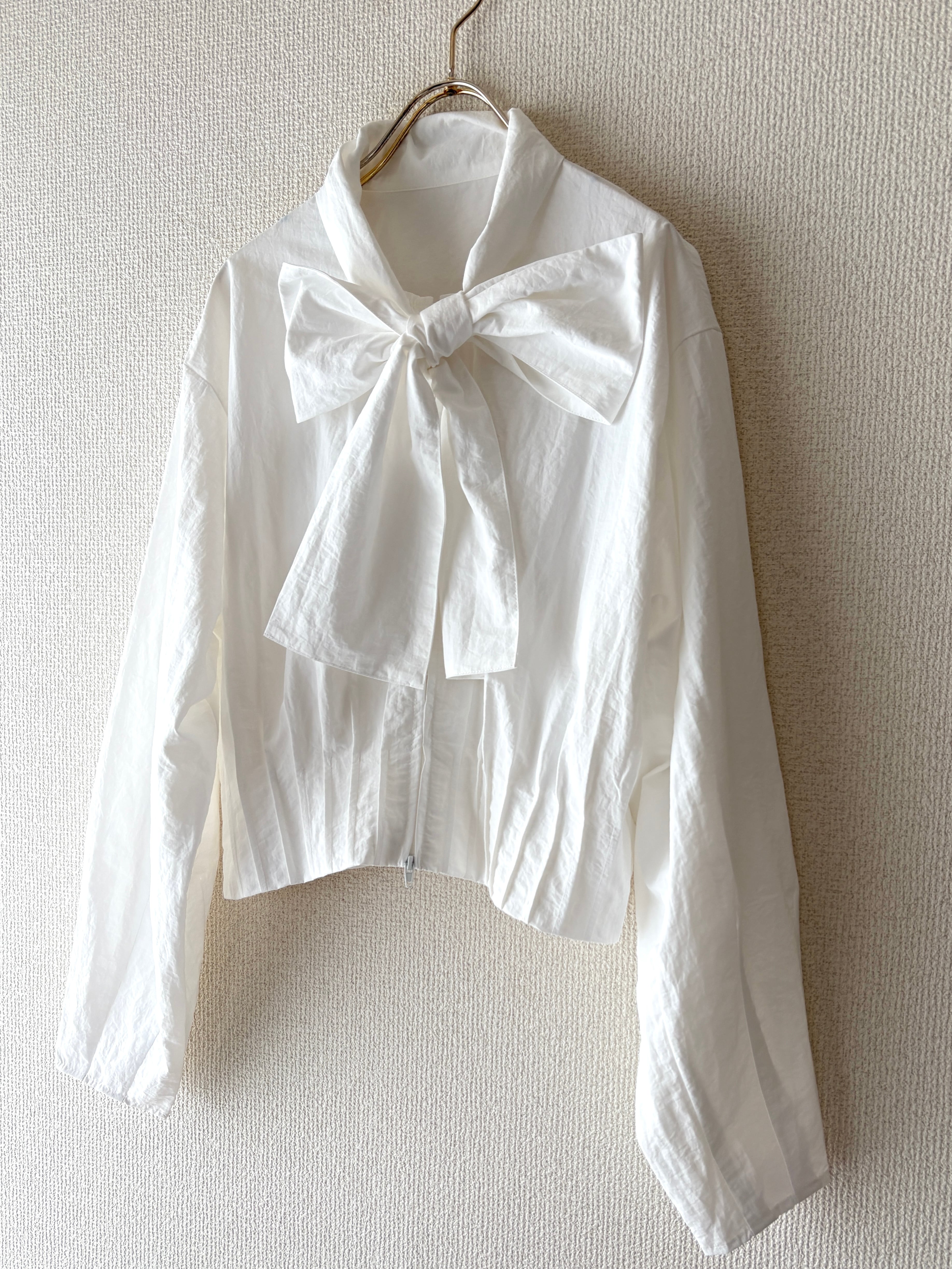 立体感のあるタックデザインとボウタイが目を惹くブラウス。すっきりとしたショート丈シルエットに、フロントのボウタイが上品なアクセントをプラスします。