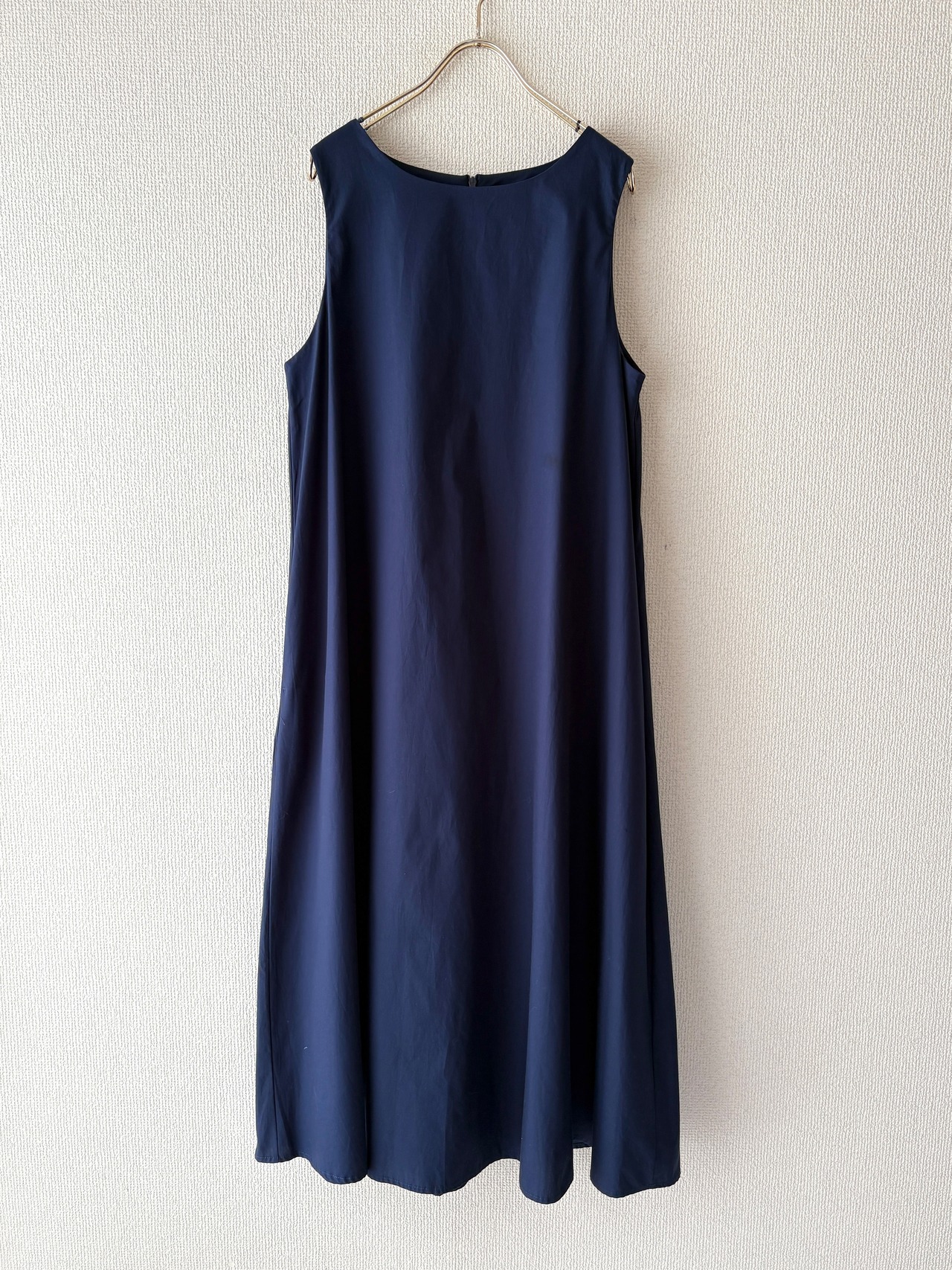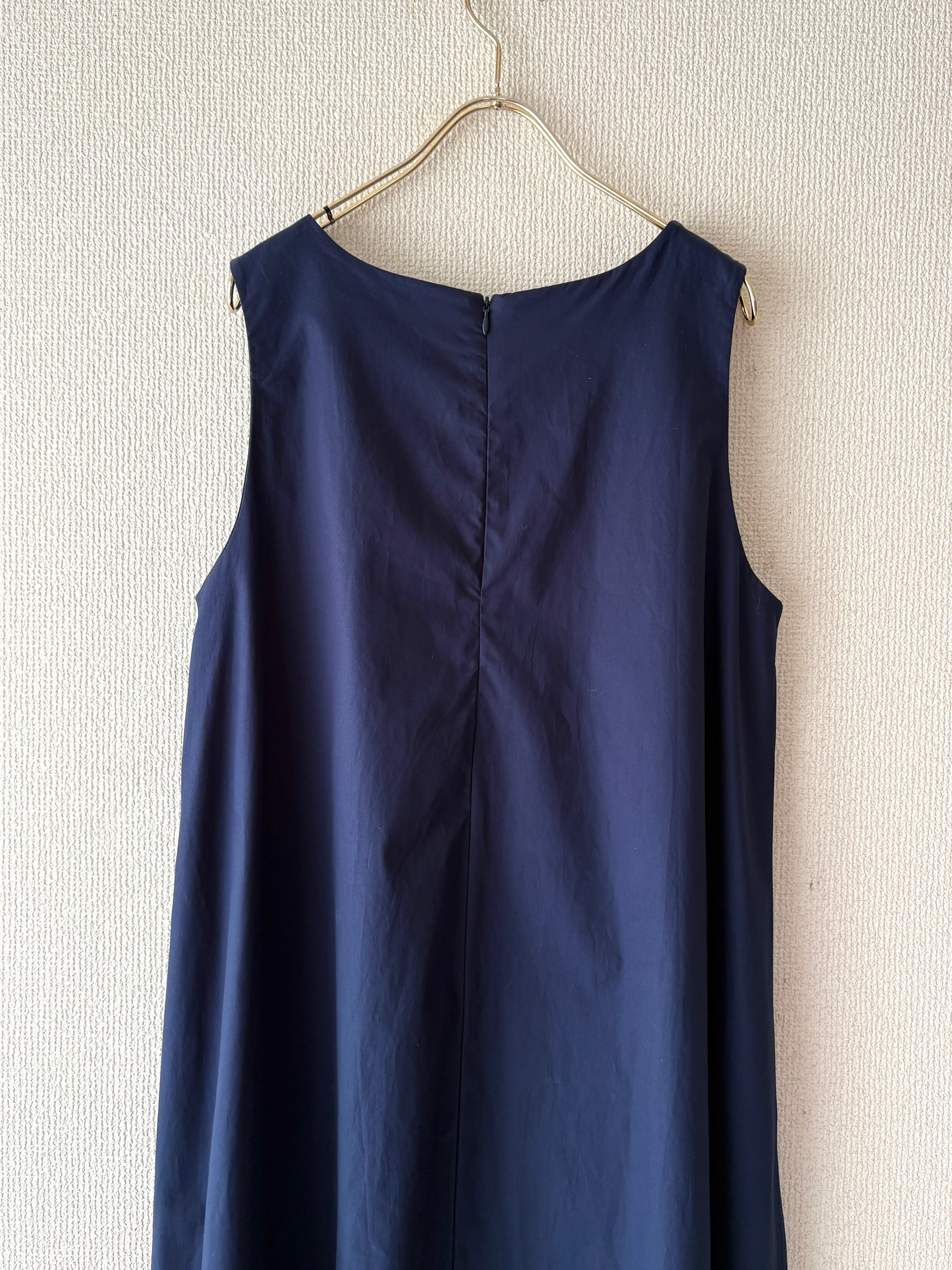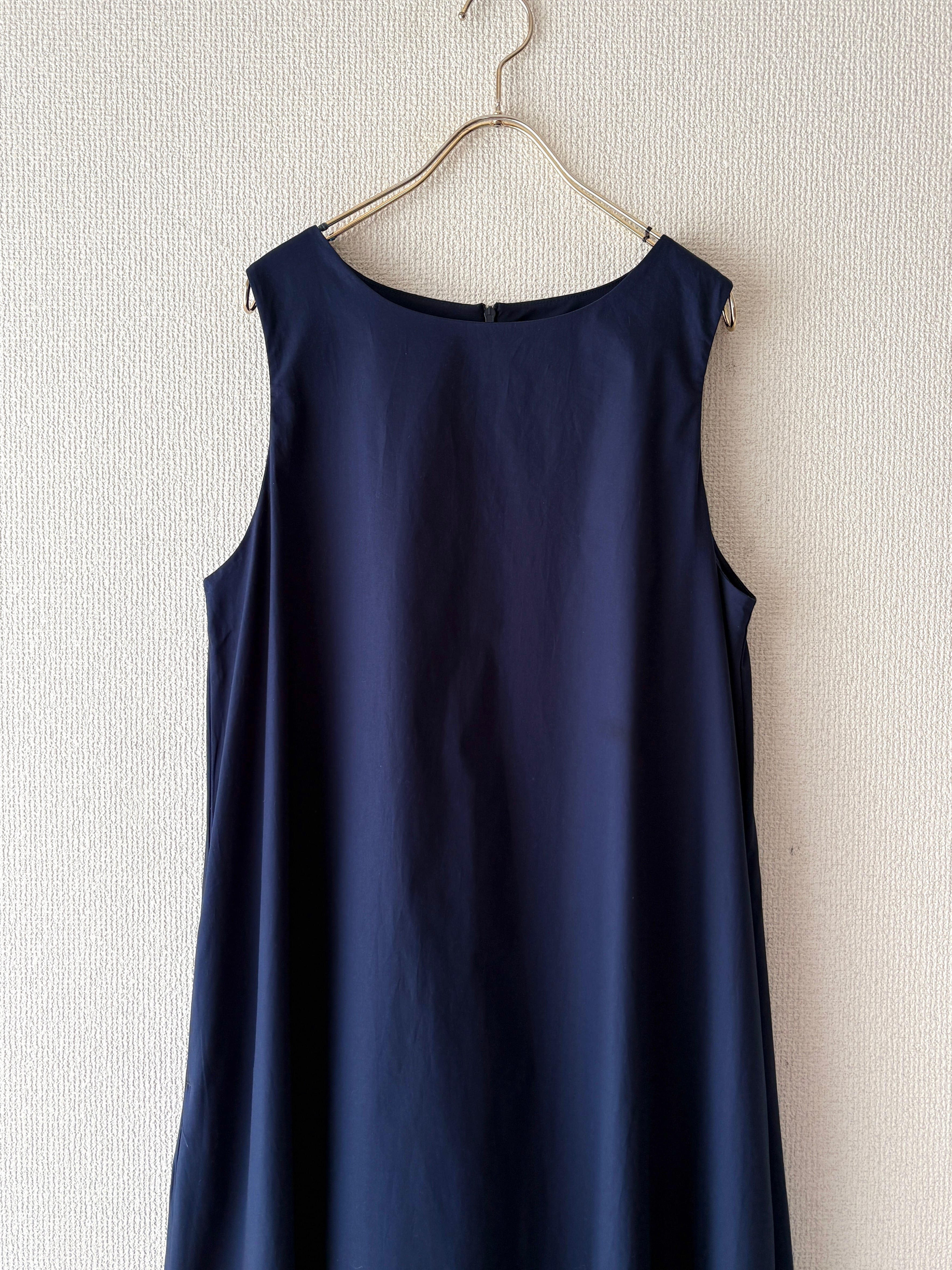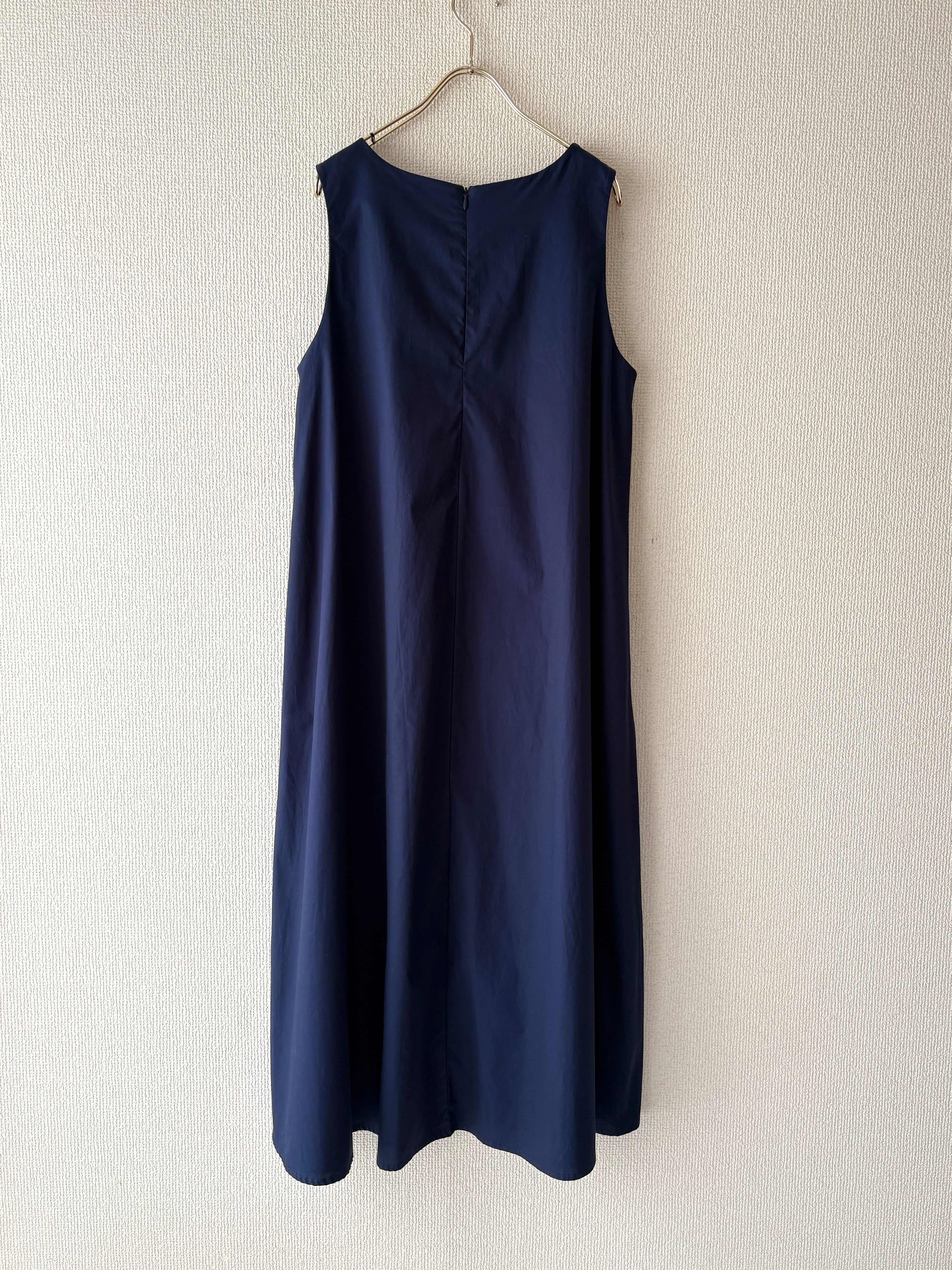 暑い夏にも重宝する袖なしのワンピース。シャツやカーディガンも羽織りやすいです。両サイドポケット付き。