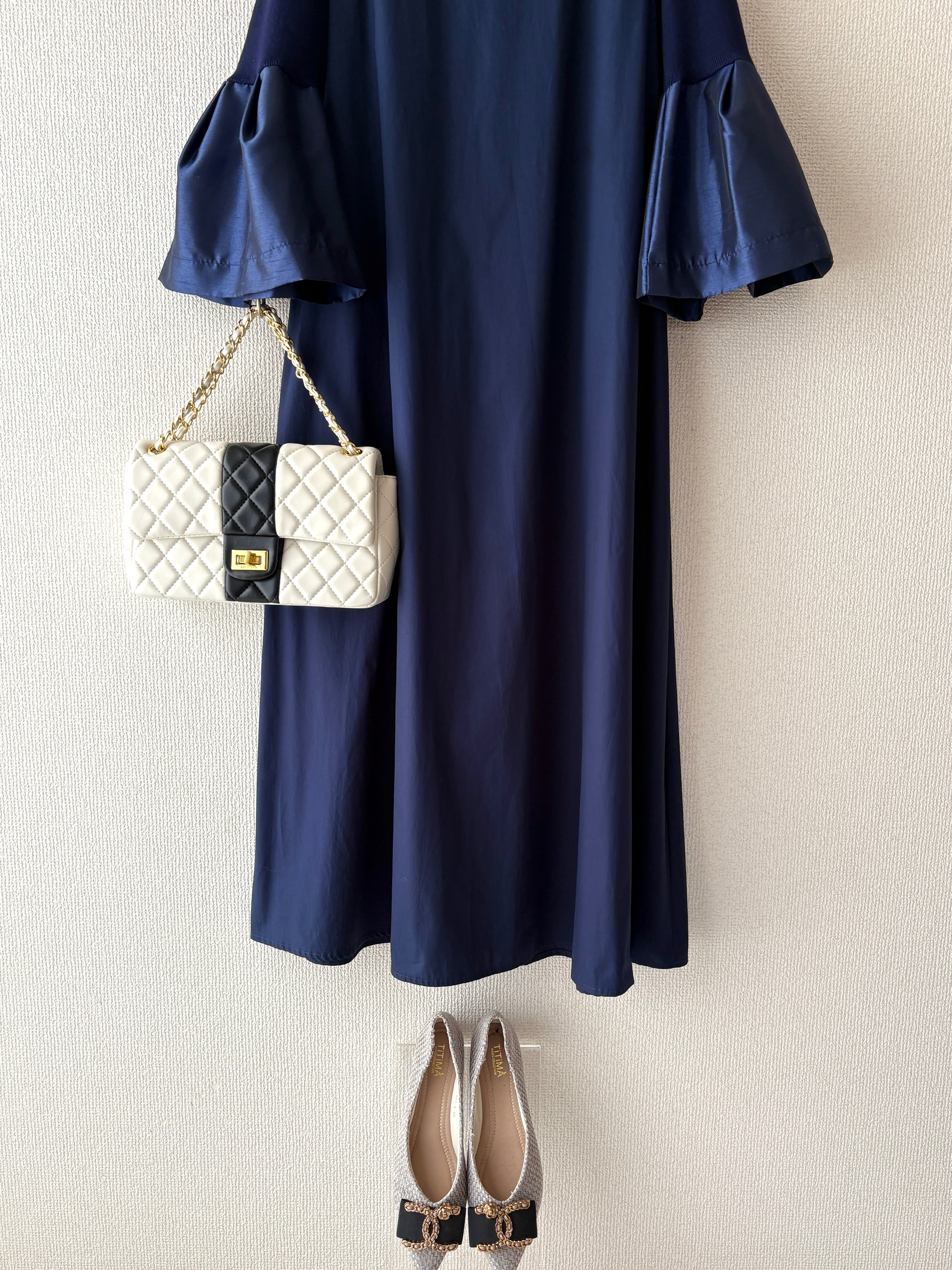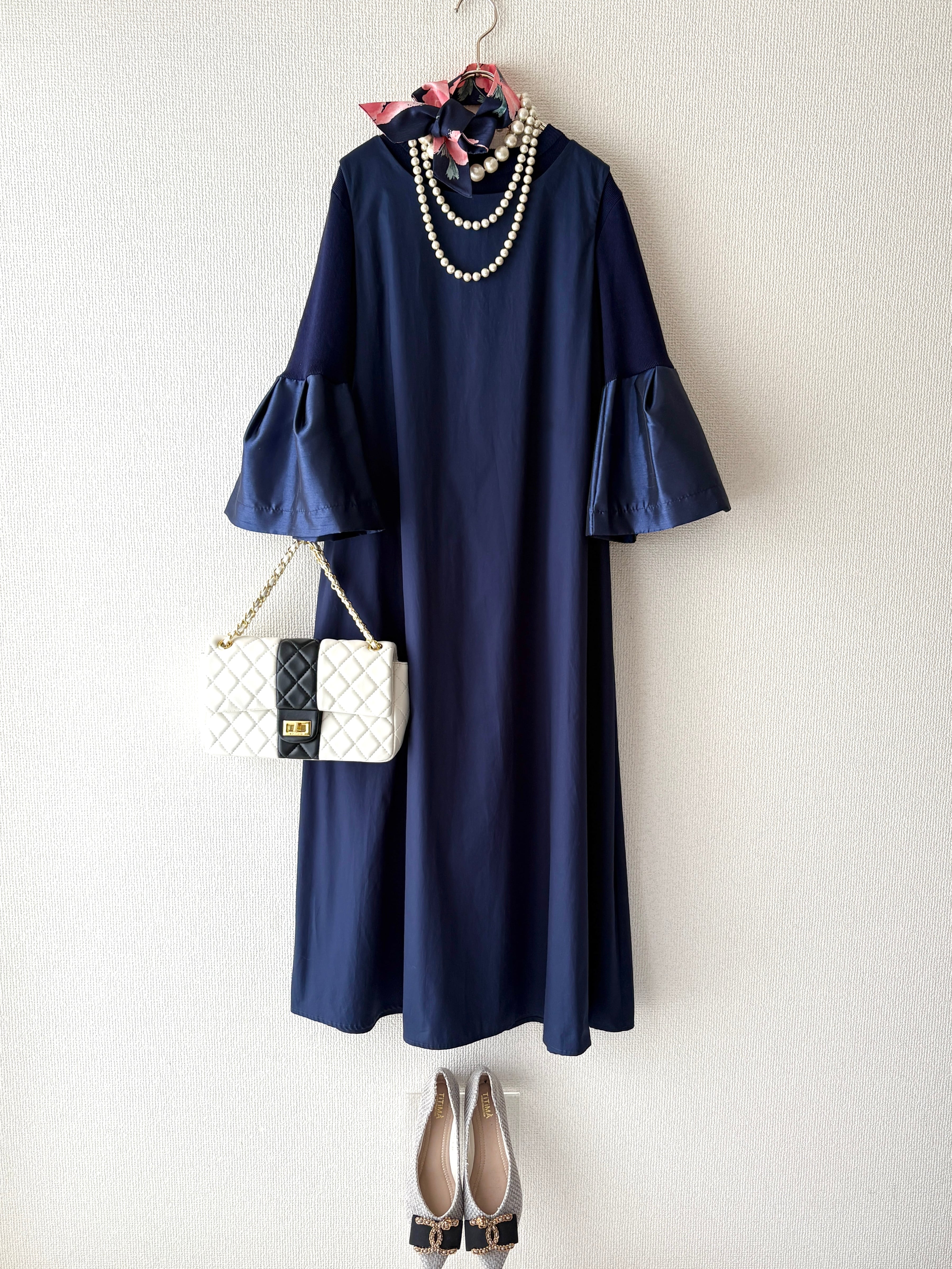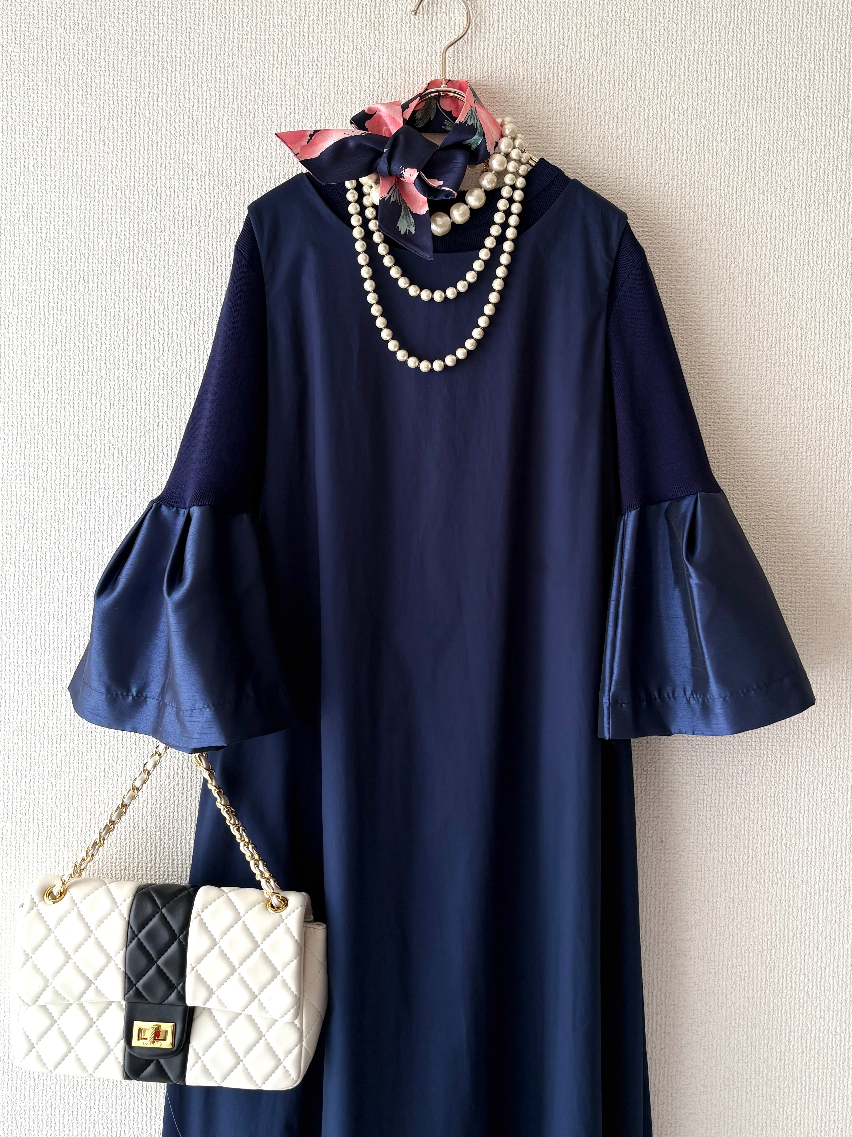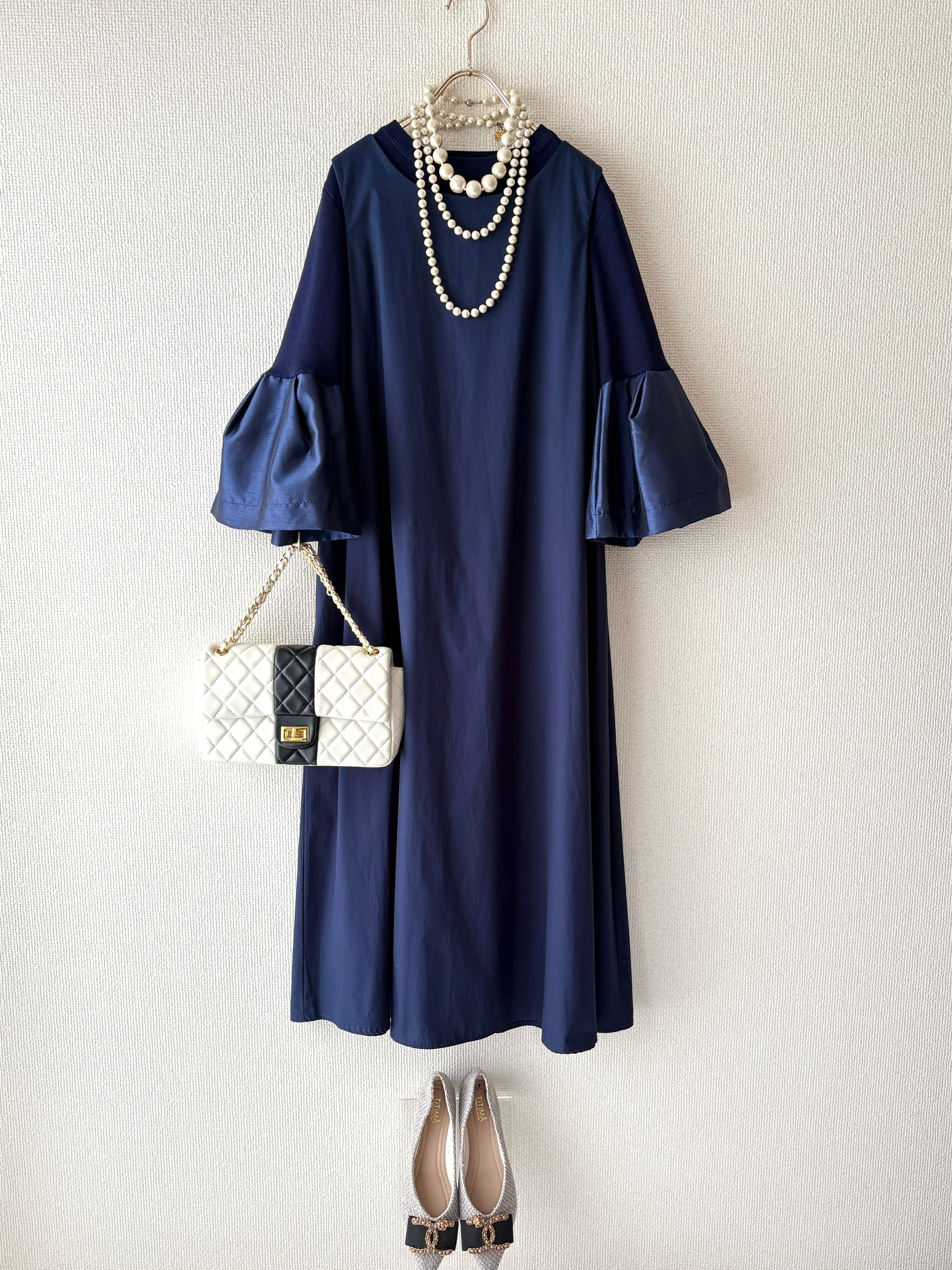 【洗練された光沢ネイビーコーデ】