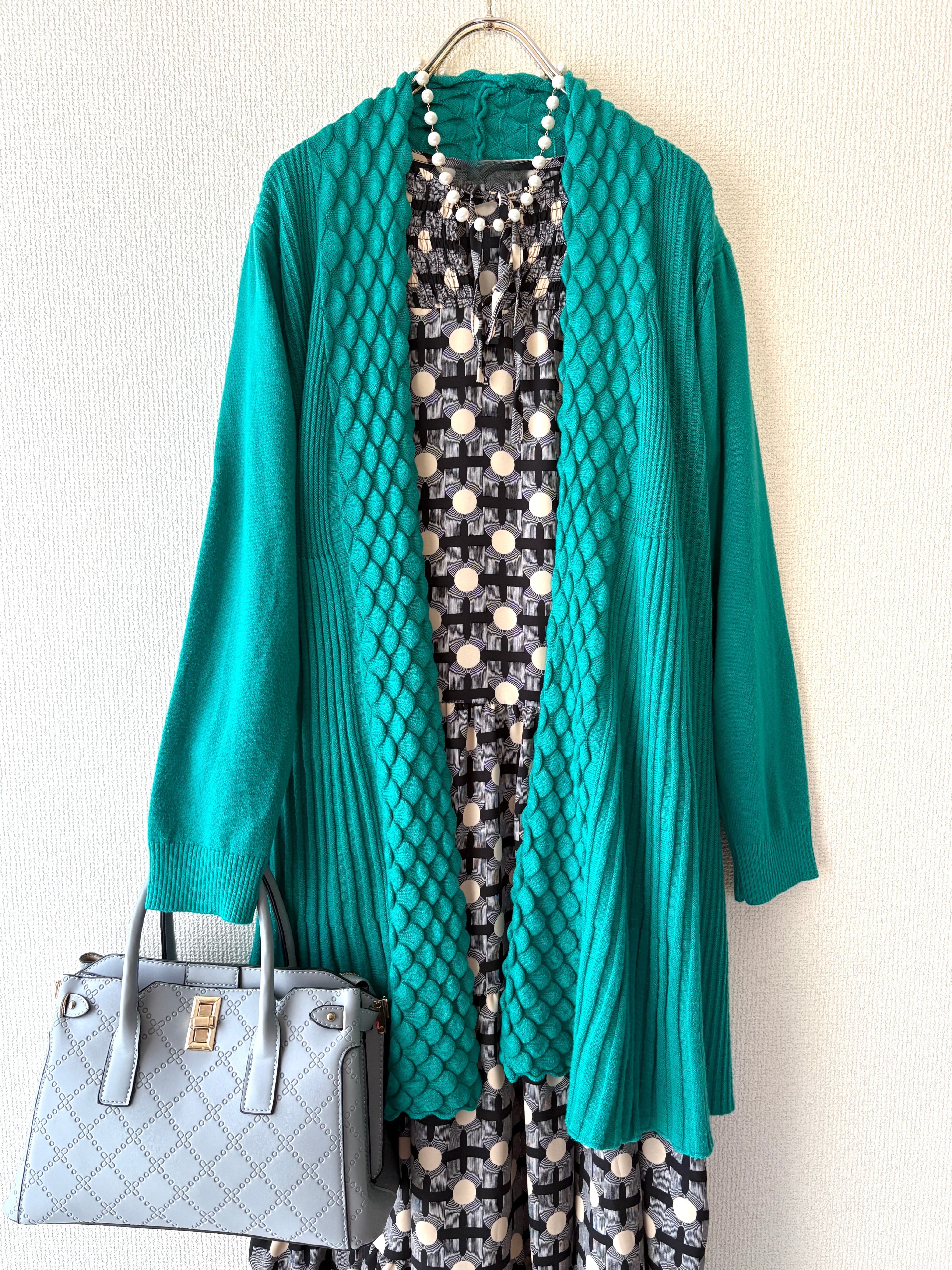 ヒップまで隠れる丈感で、着るだけで体型カバーしてくれるのも魅力です。