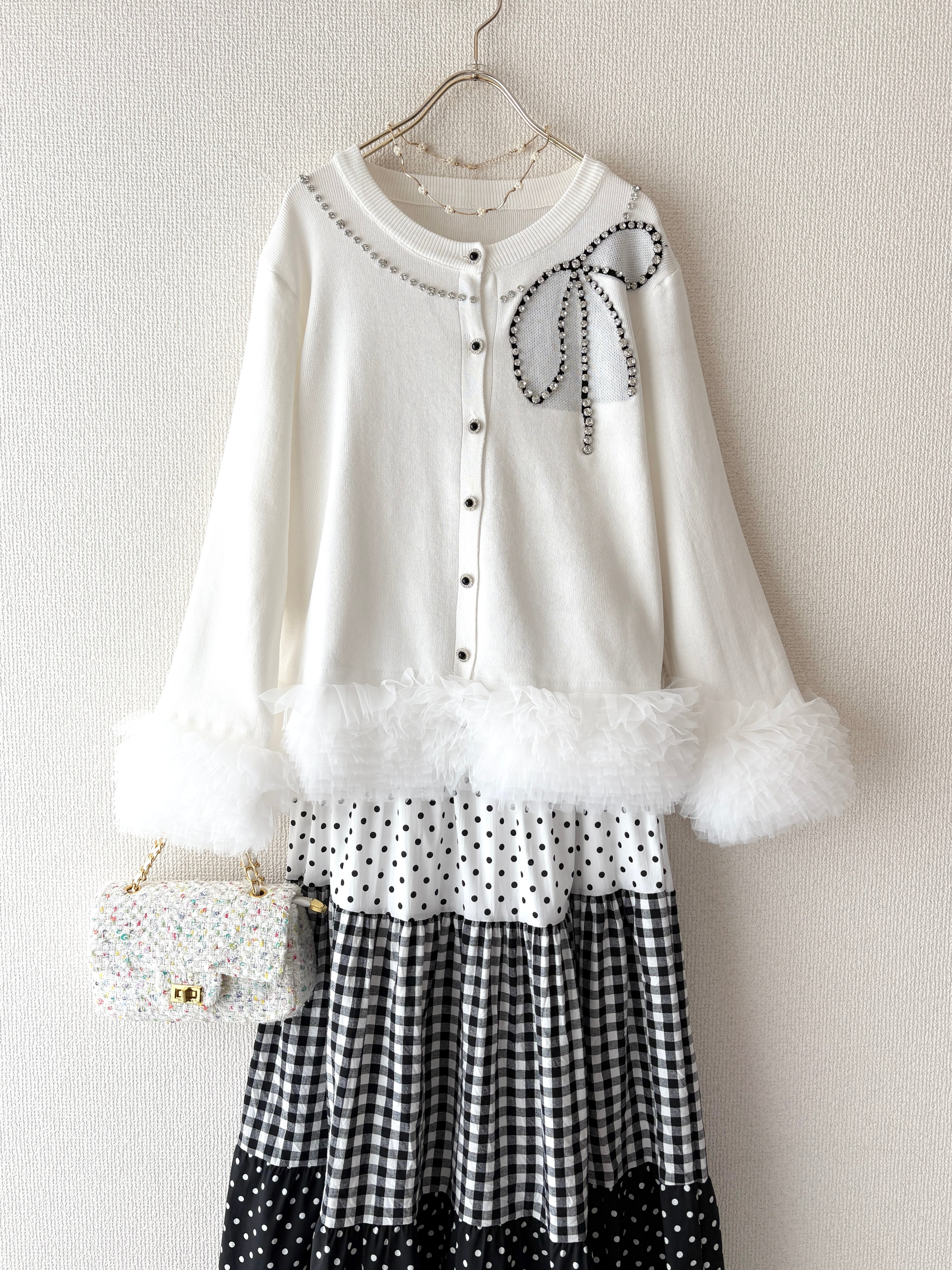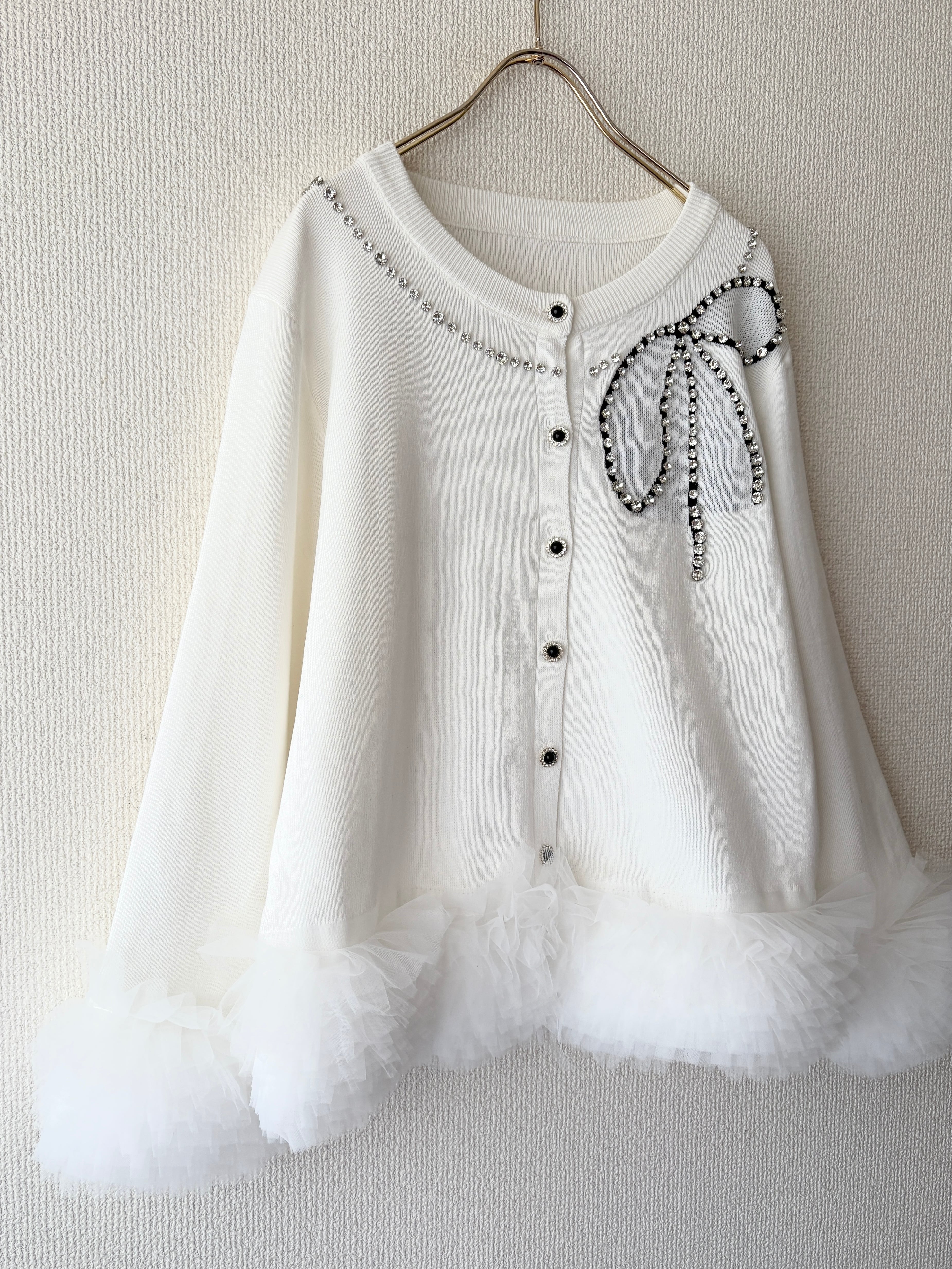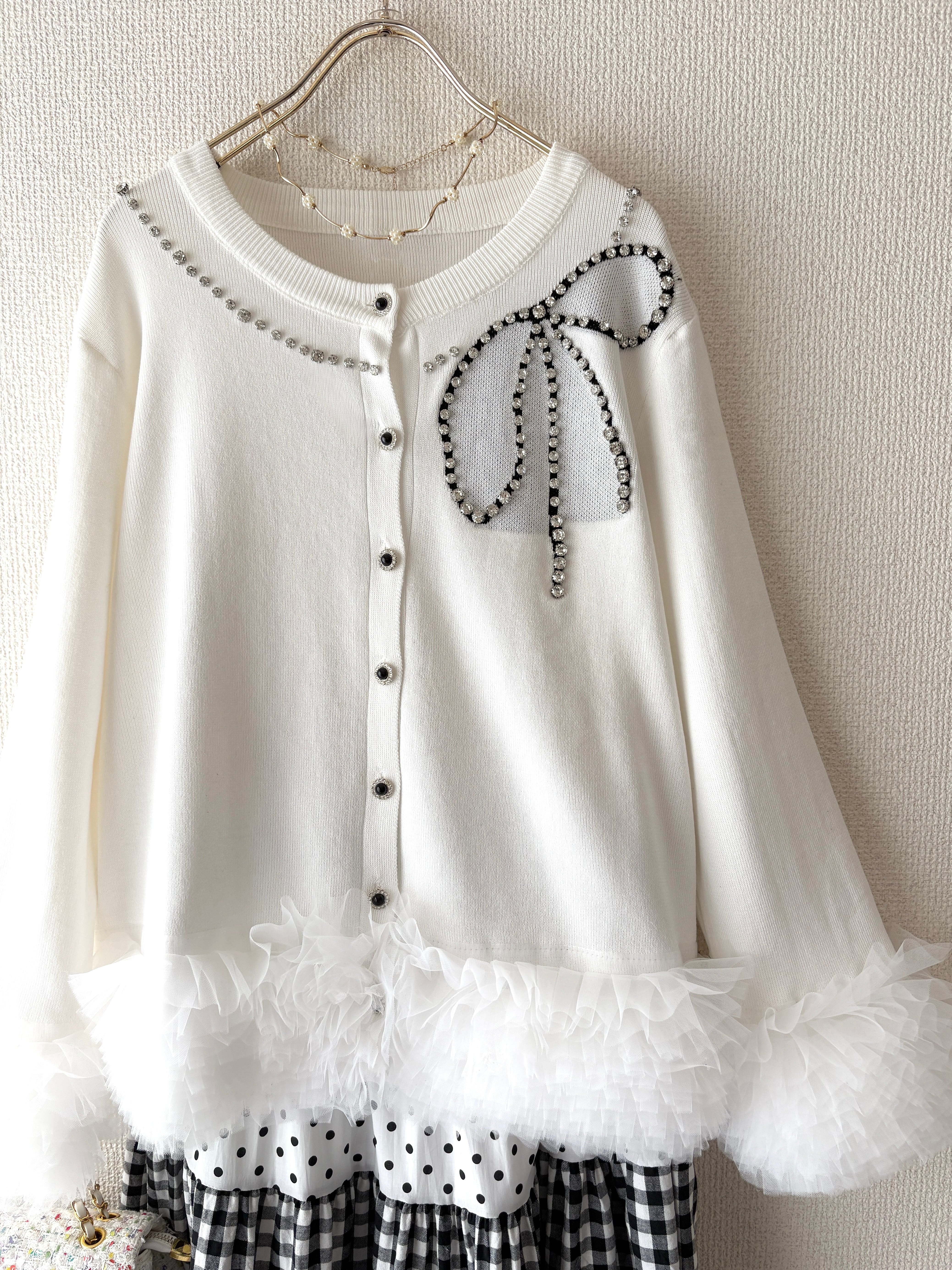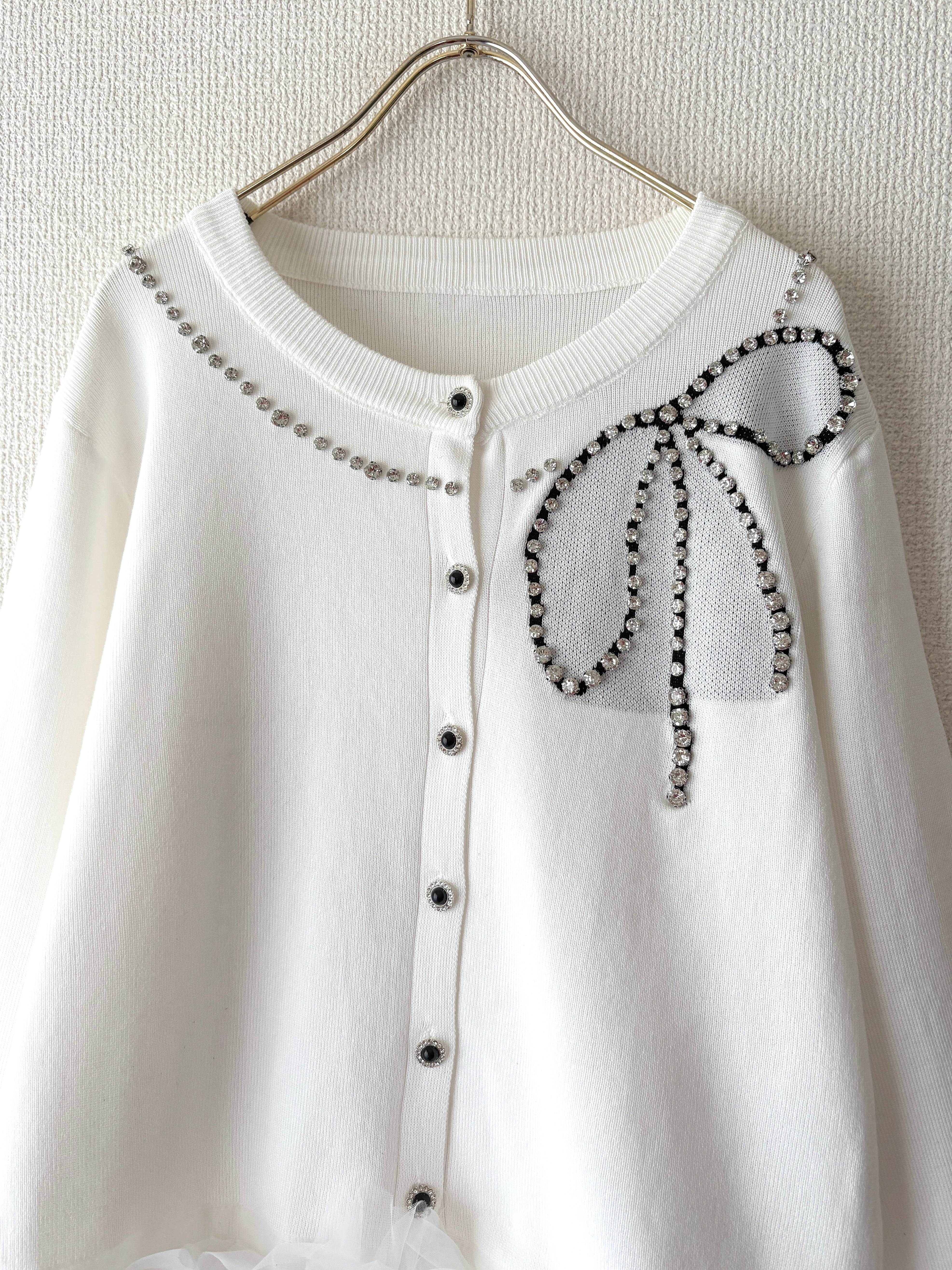リボンとビジューデザインが目を惹く、主役カーディガン。