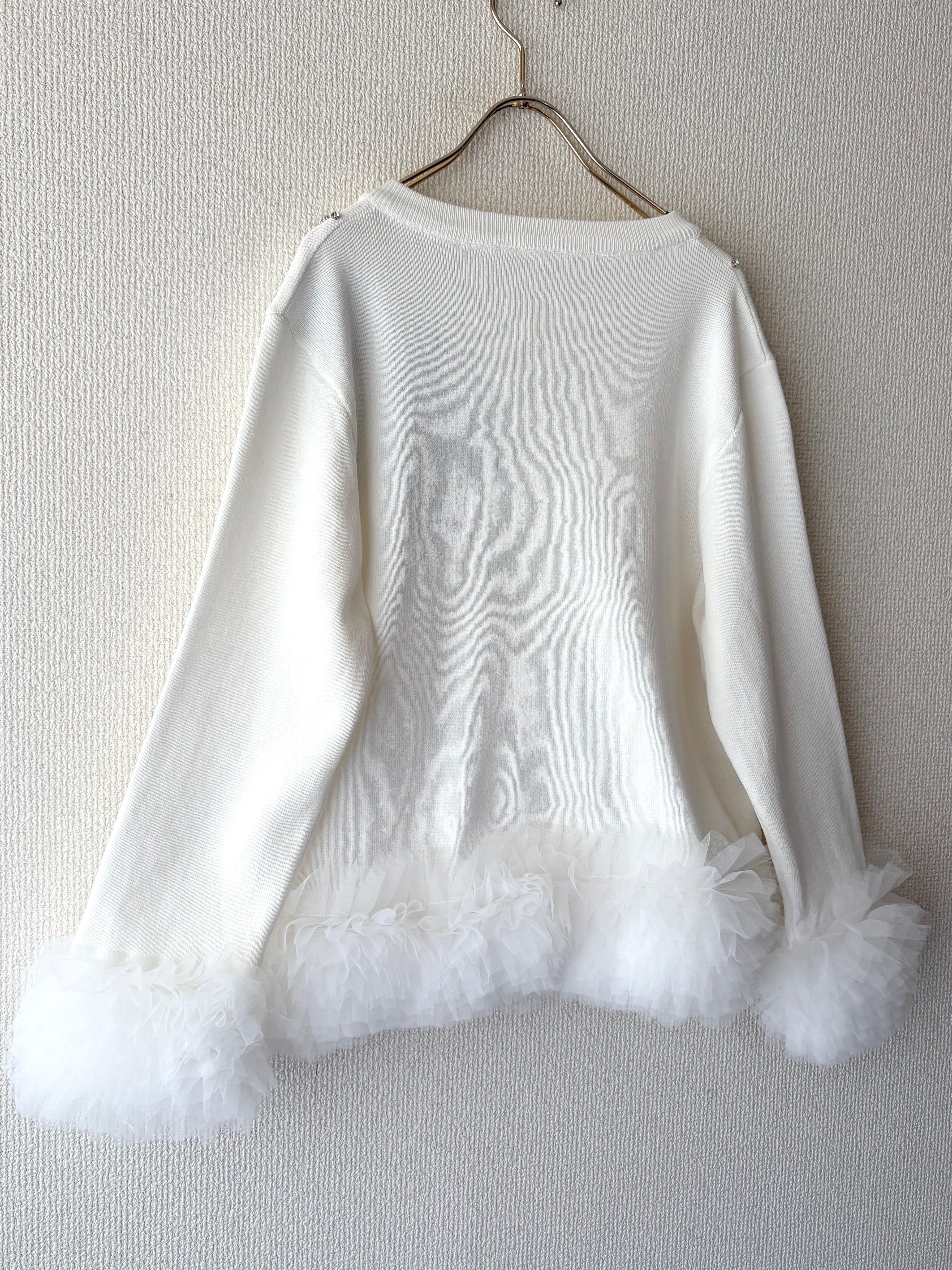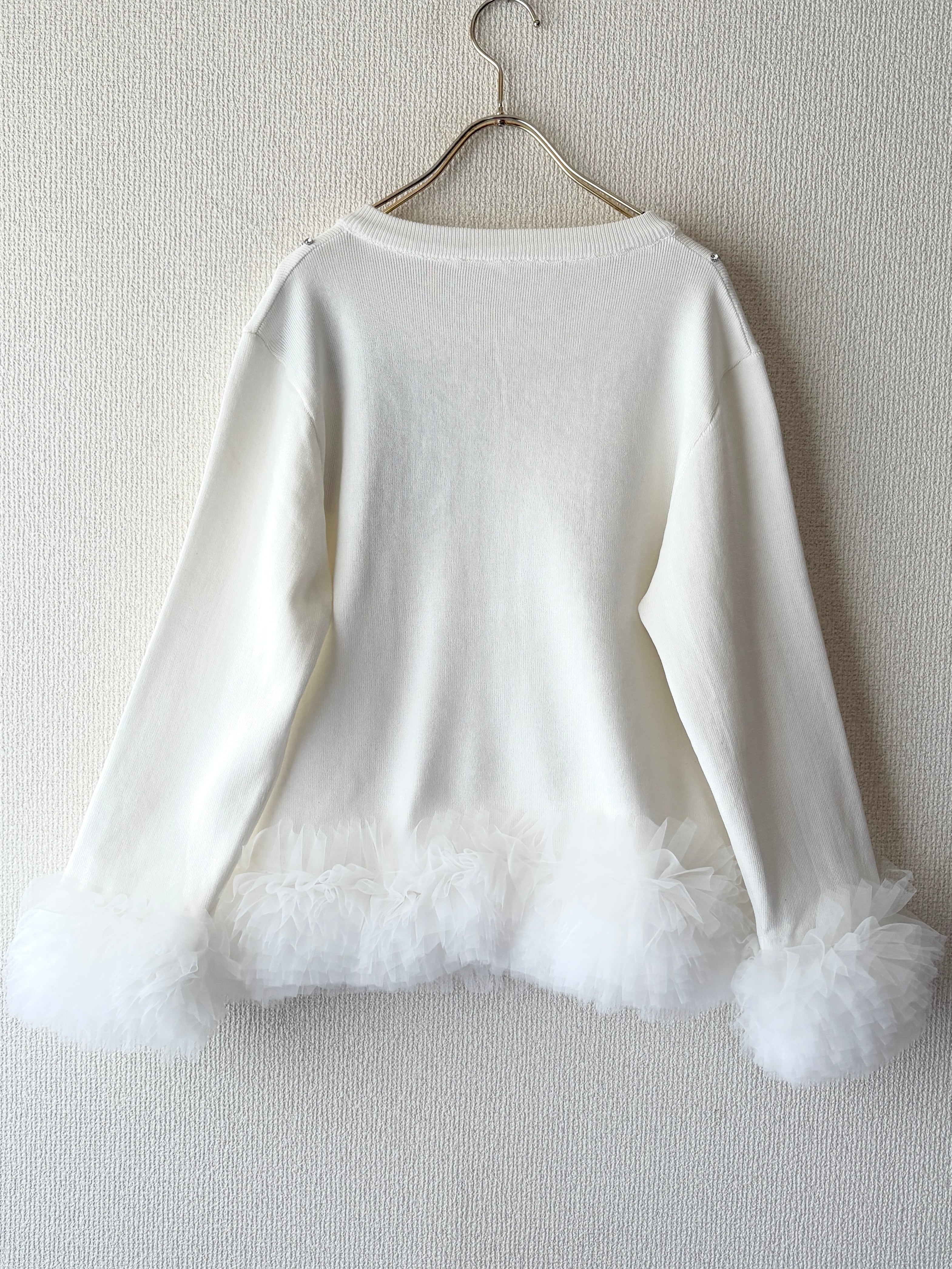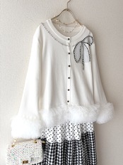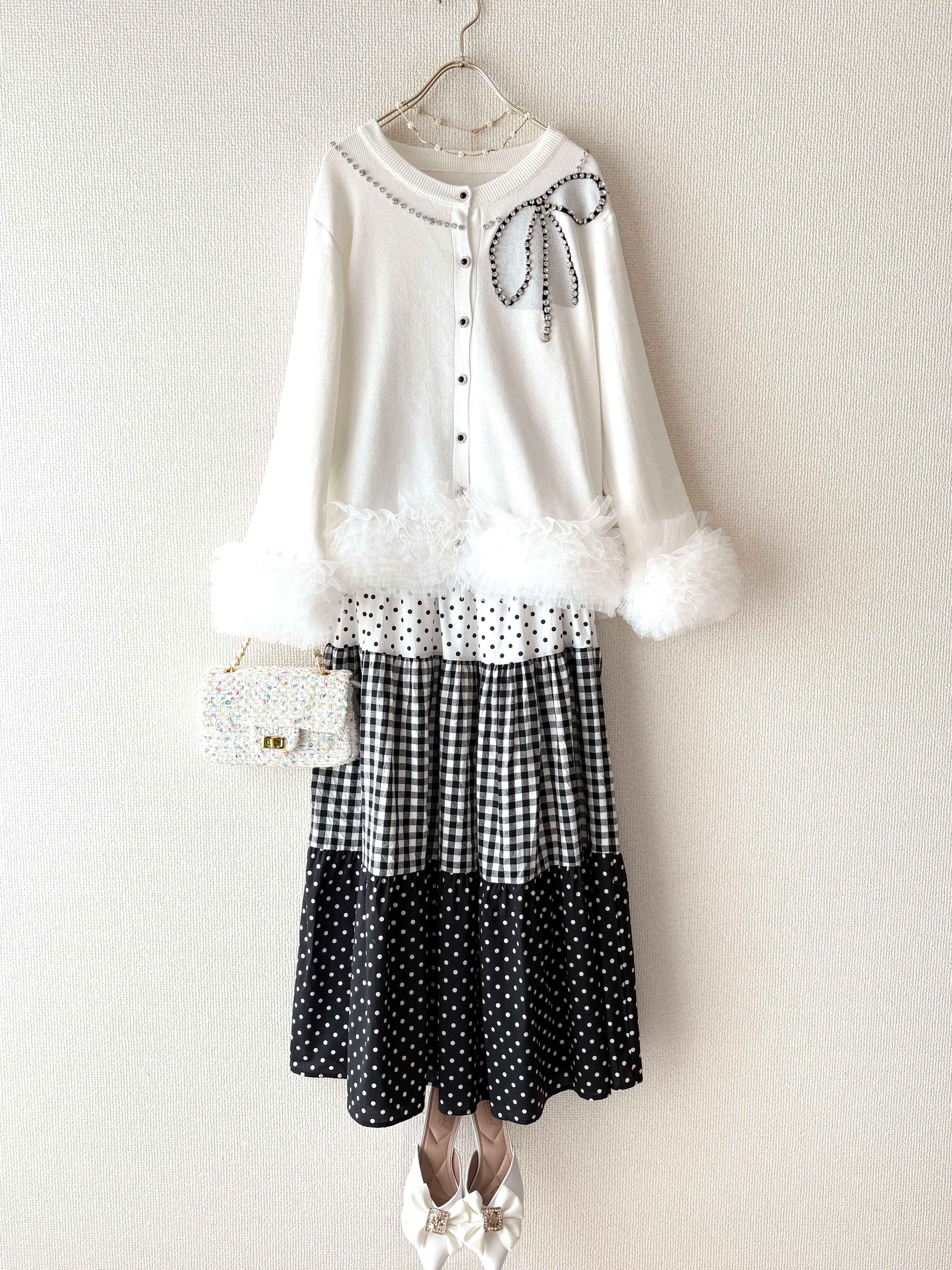 リボンとビジューデザインが目を惹く、主役カーディガン。
