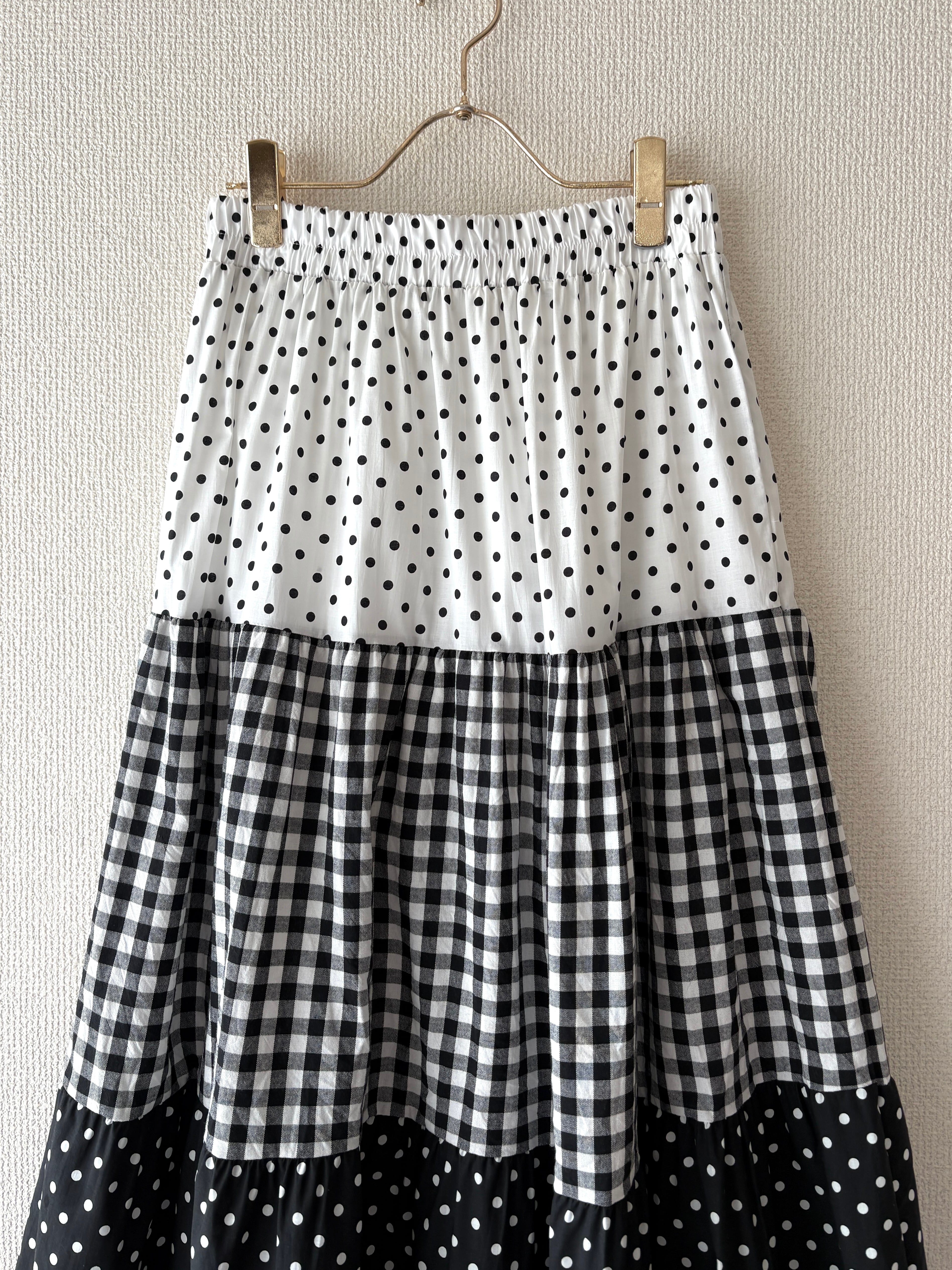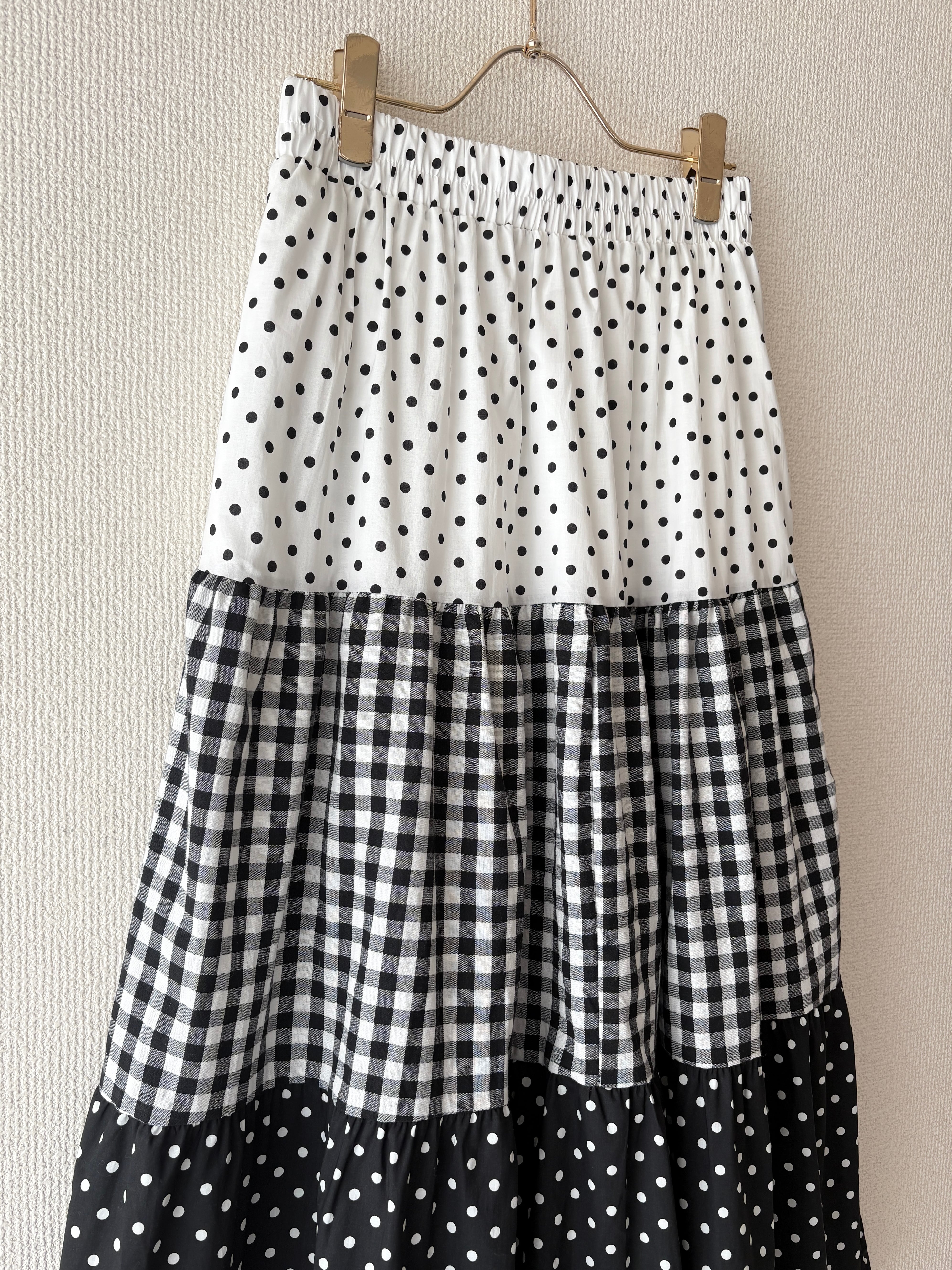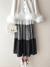 ウエストはすっきりと、裾に向かって広がるシルエットで女性らしいラインを演出します。