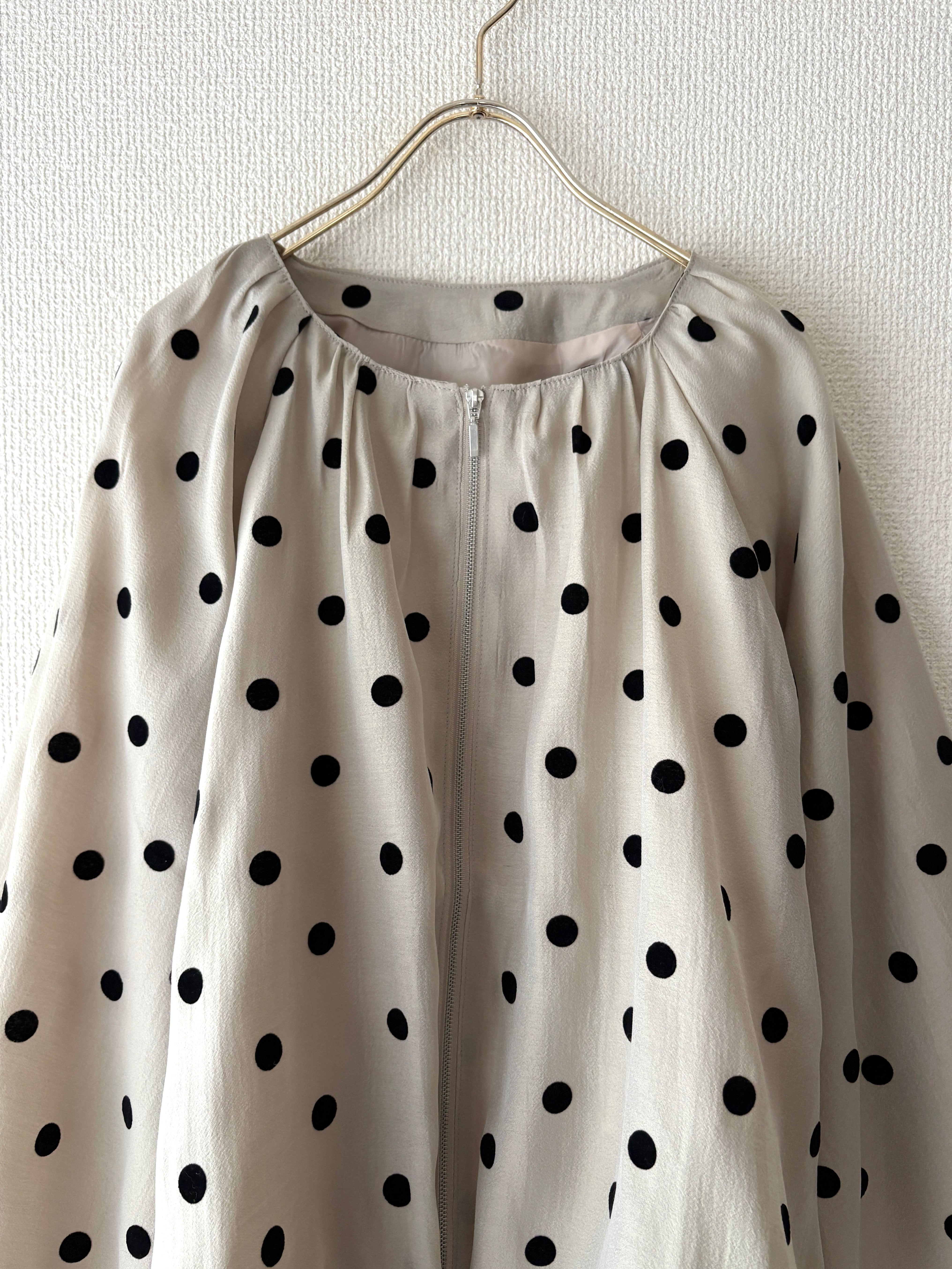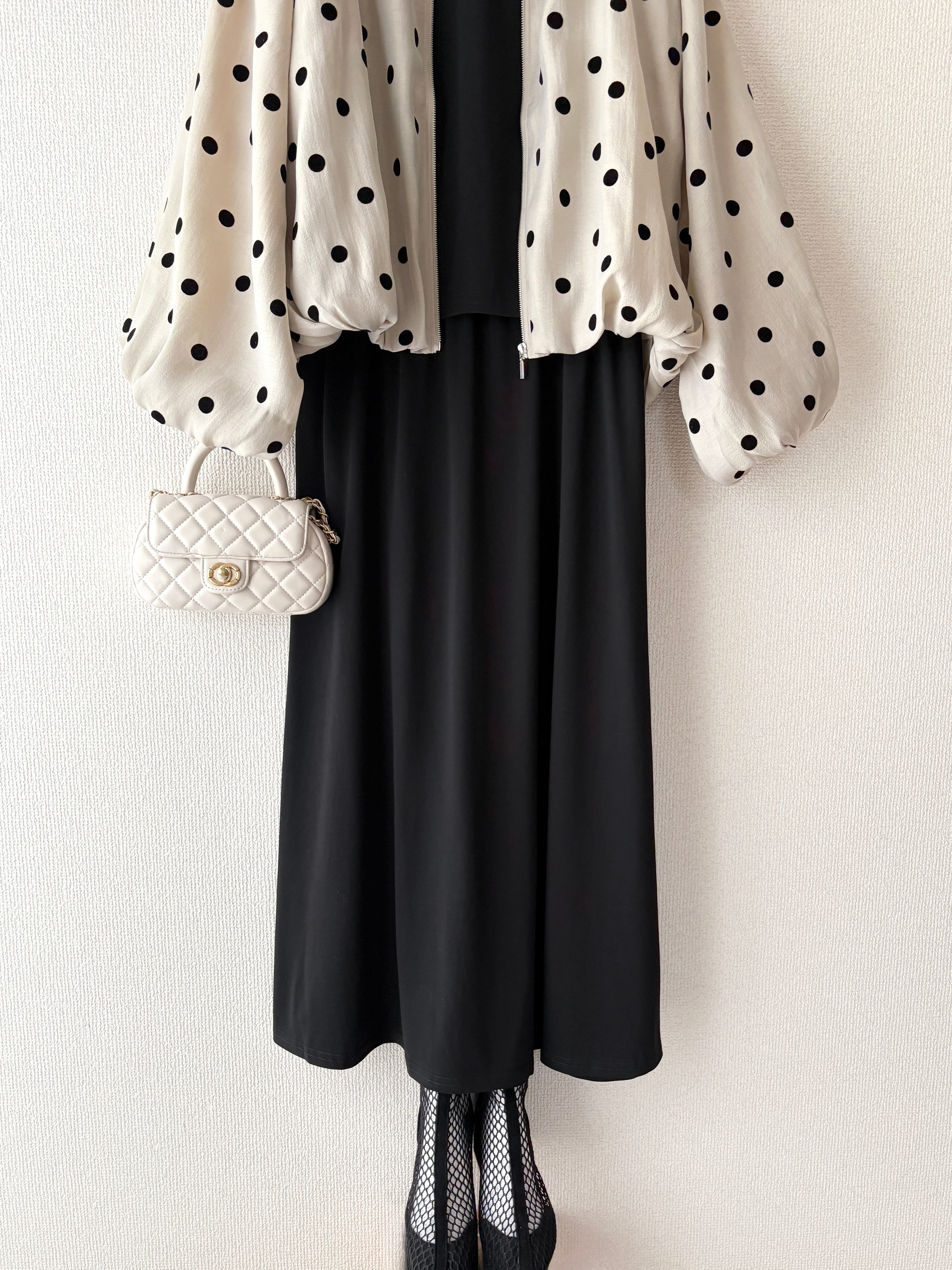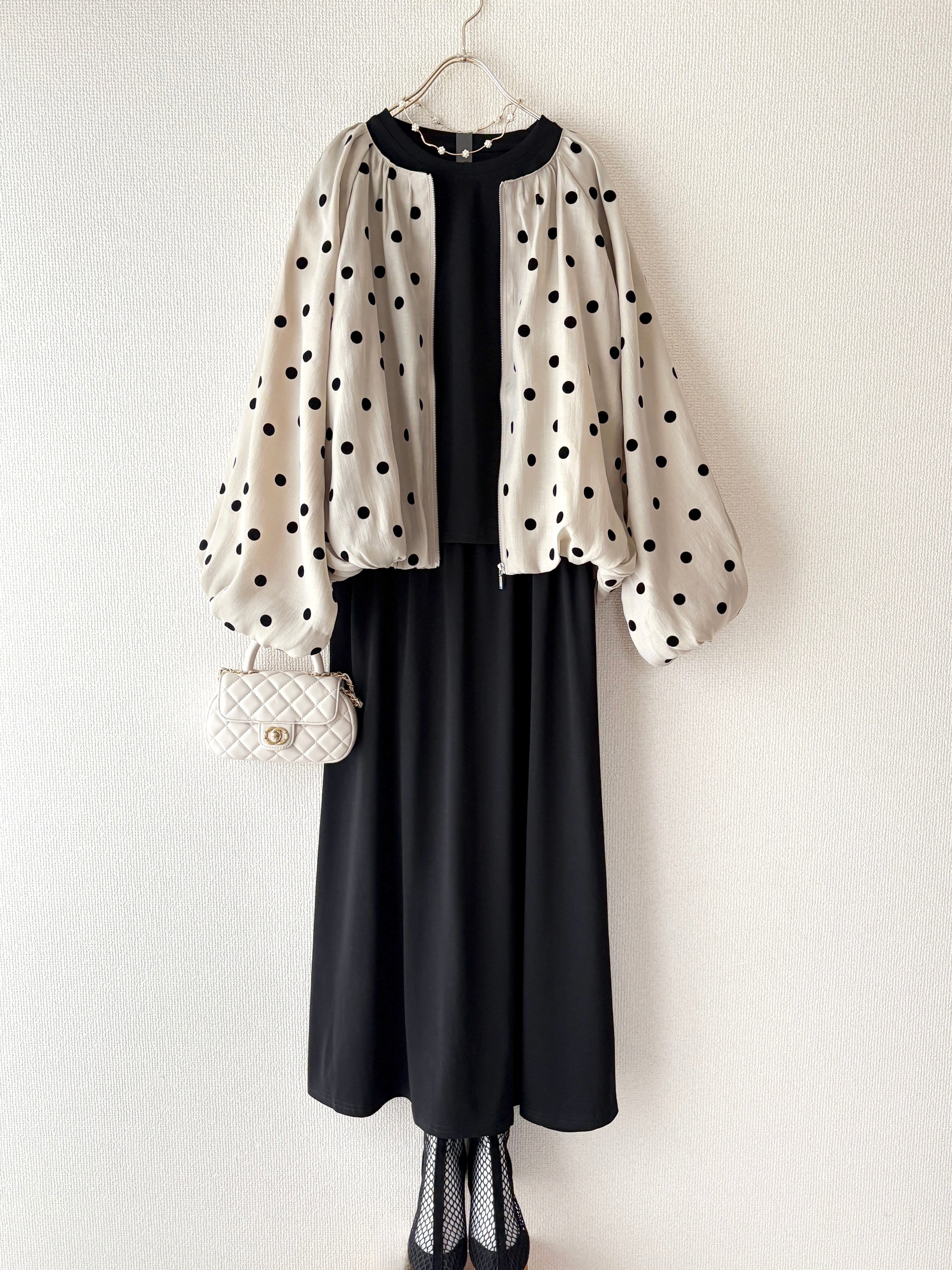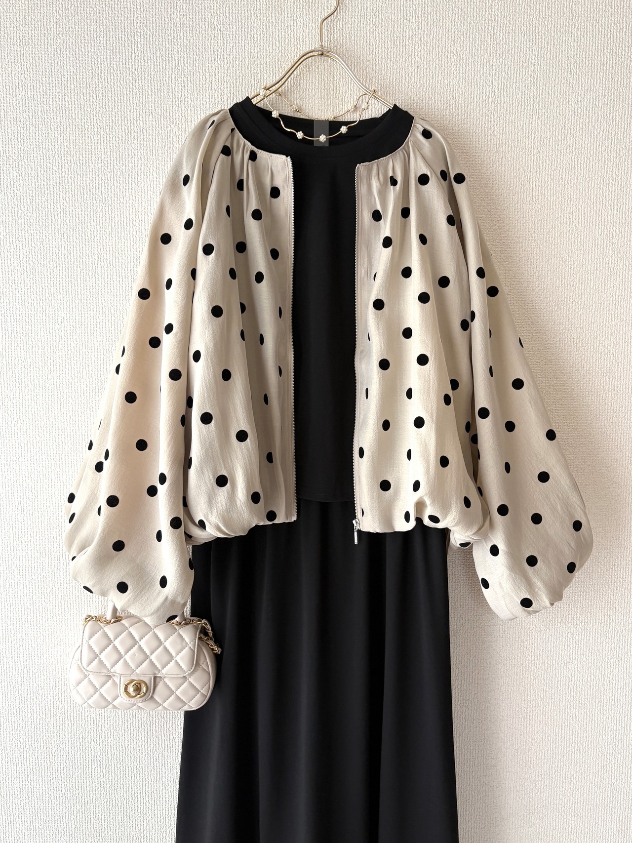 幅広いコーディネートに合わせやすい春アウターです。ドット柄プリントが大人の可愛らしさを演出します。