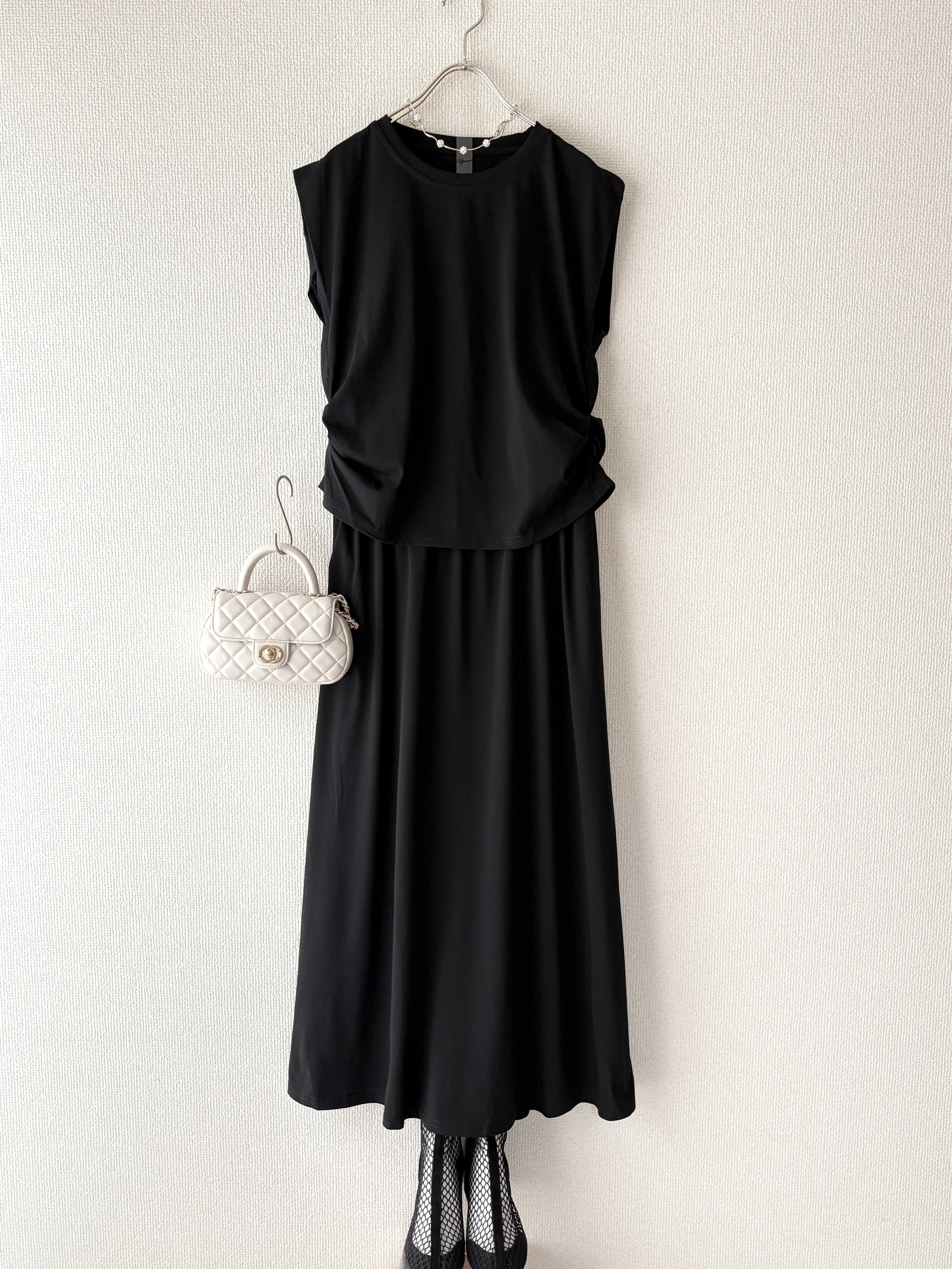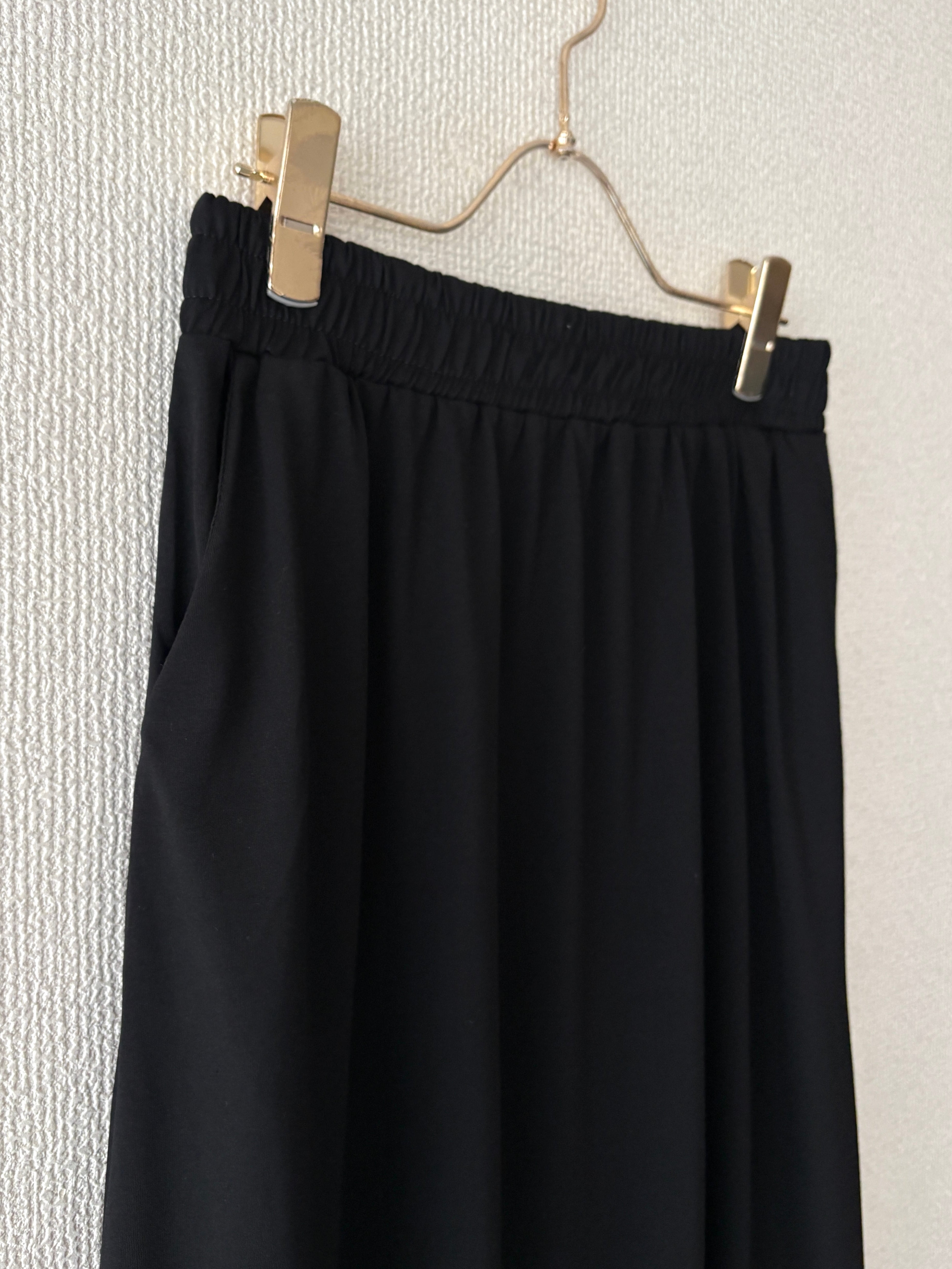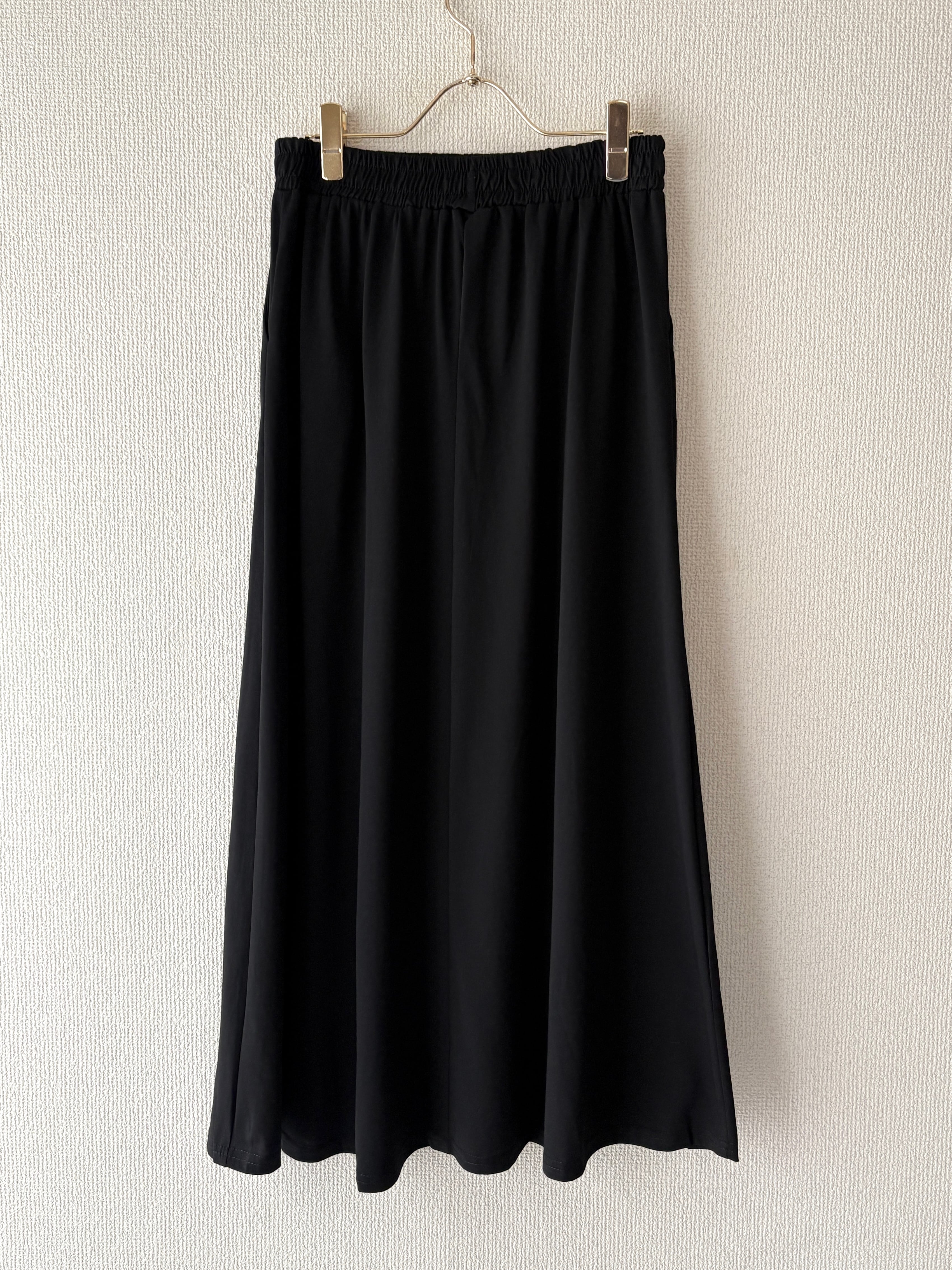 ブラックカラーで、合わせるトップスを選ばない1枚で、オールシーズン様々なシーンに重宝します。